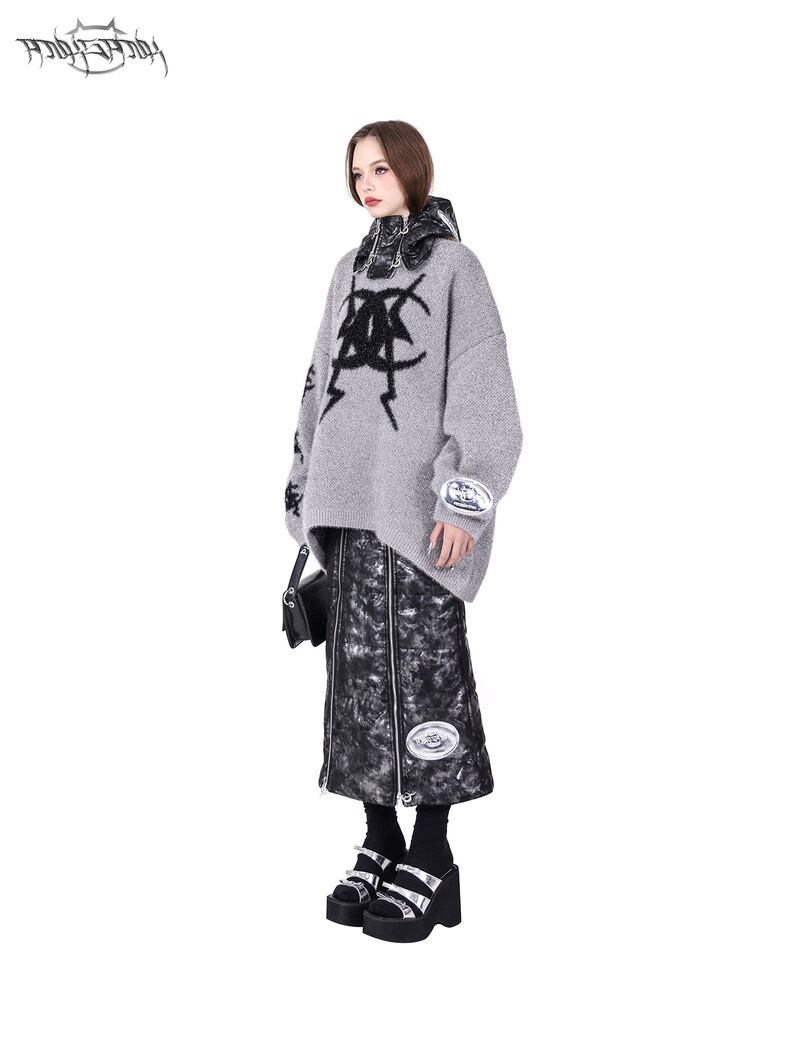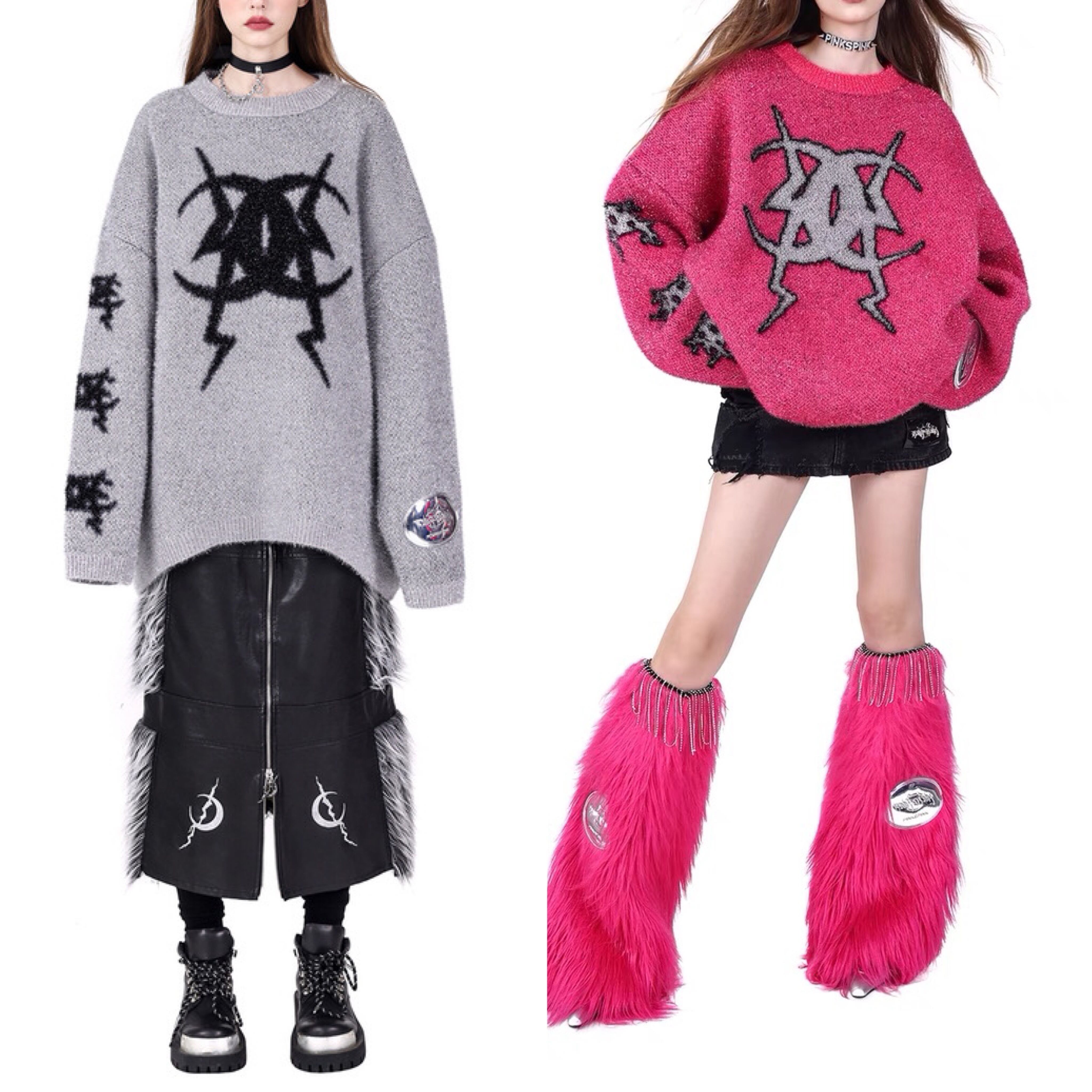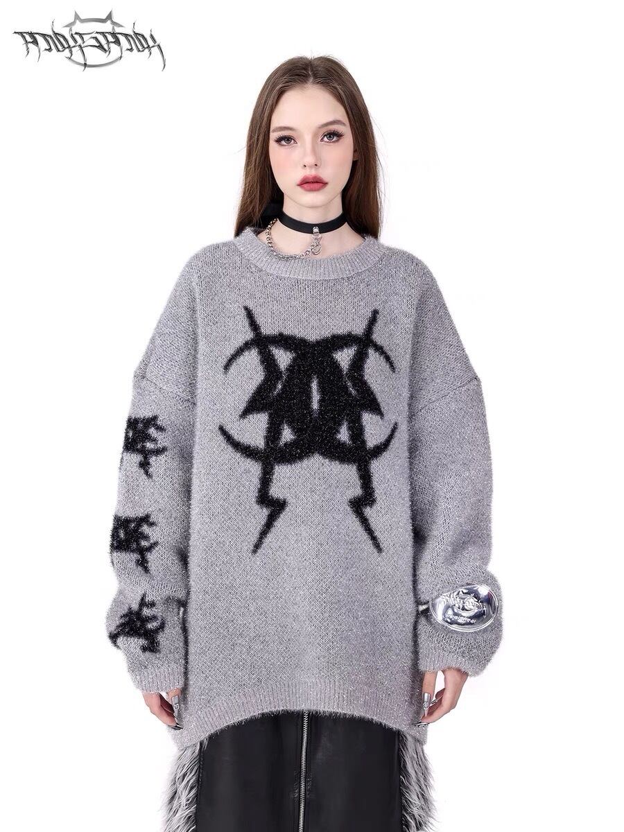 セーター ニット グレー ピンク ゆったり ダメージ