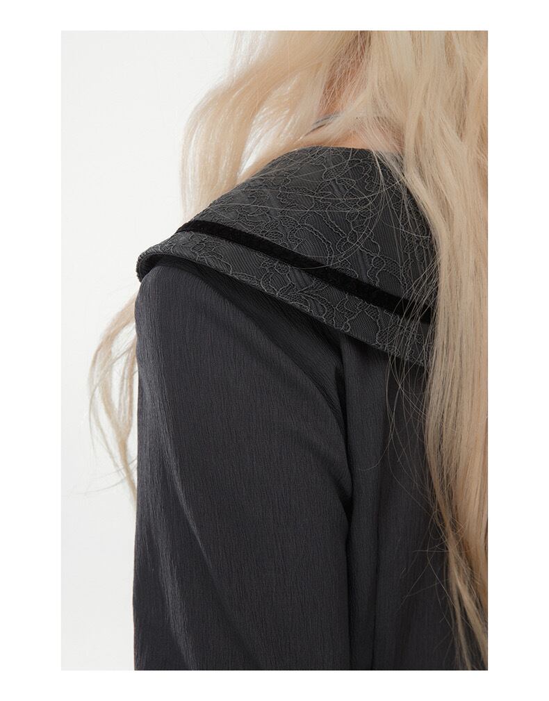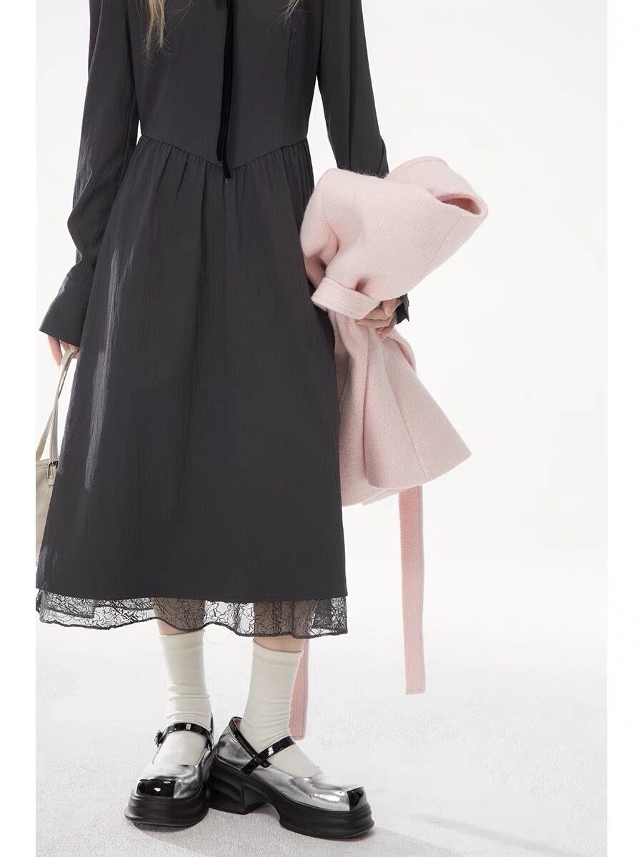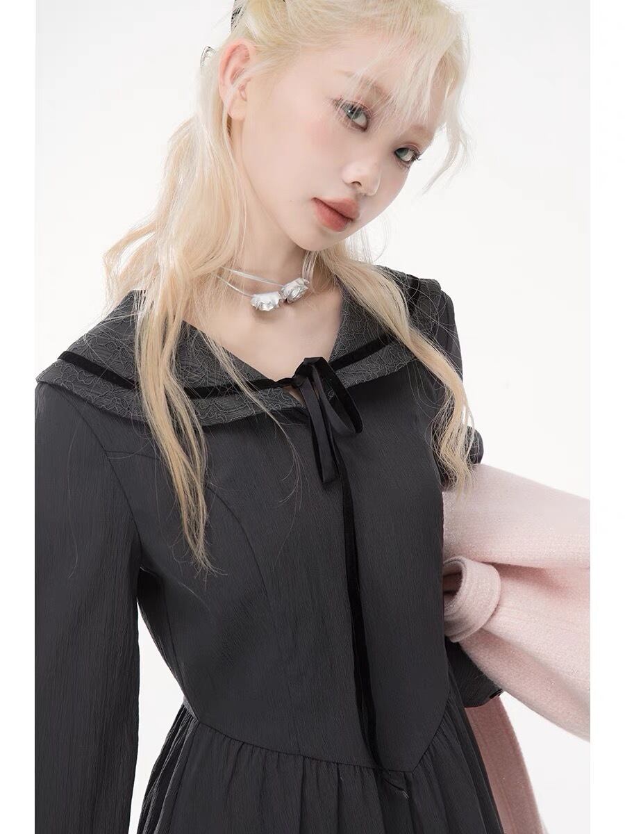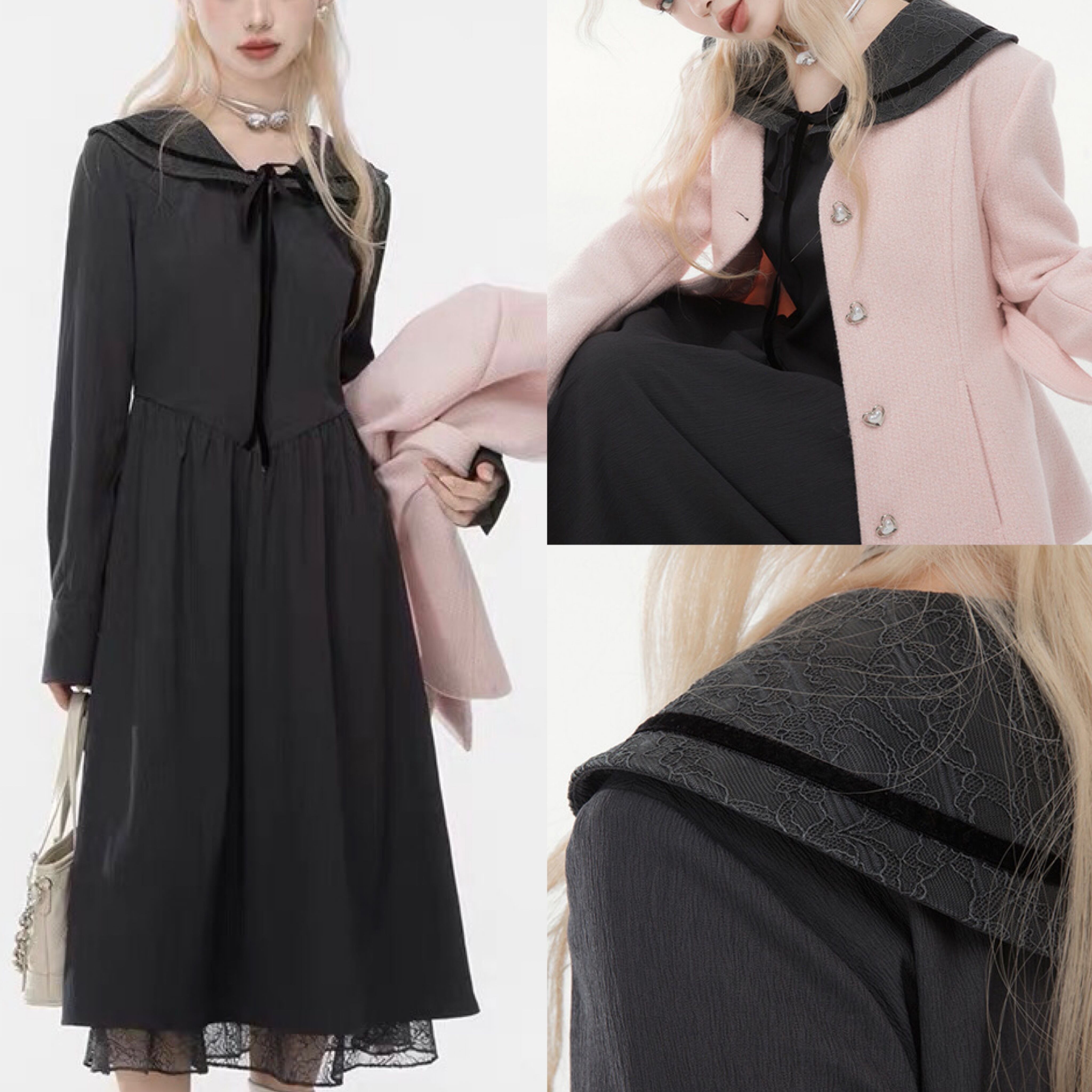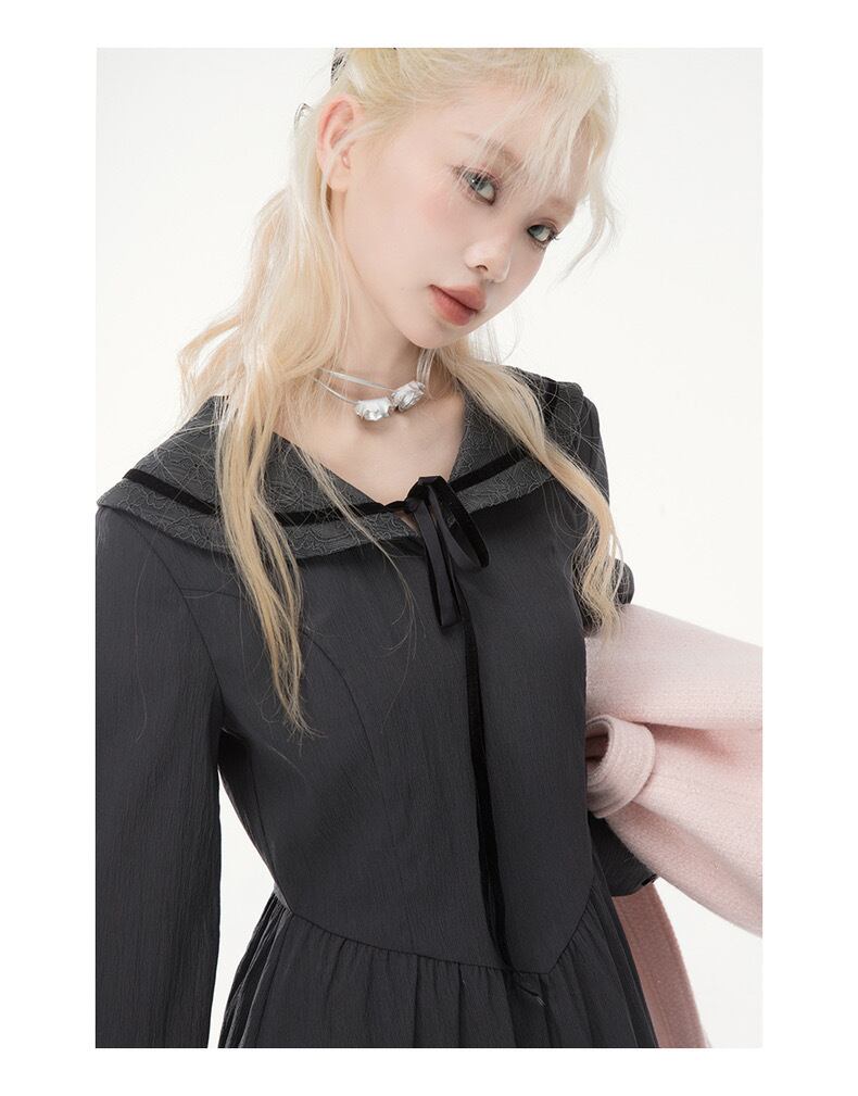 ワンピース 黒 セーラー リボン ガーリー ゆったり マキシ