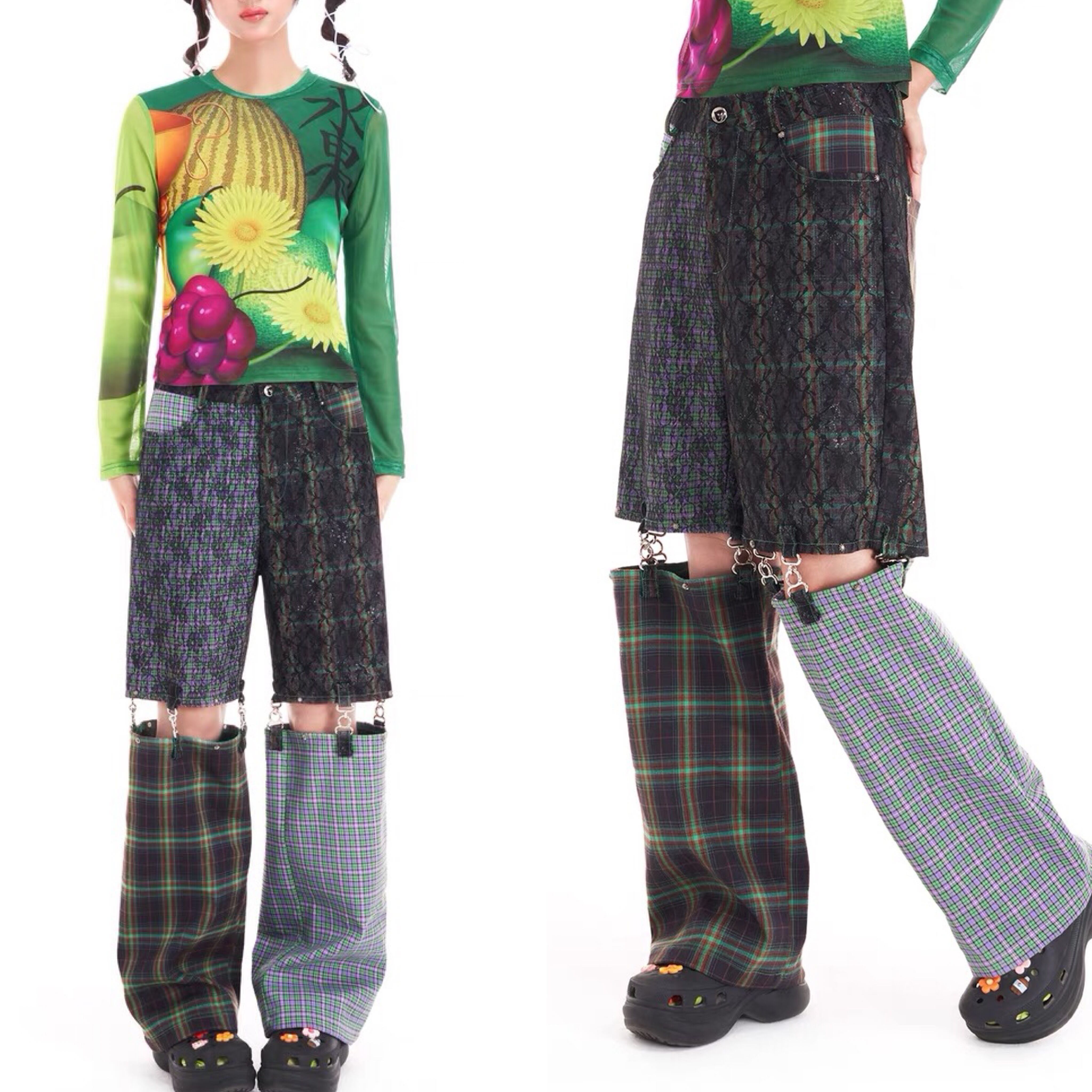パンツ ズボン ボトムス チェック 緑 グリーン カジュア
