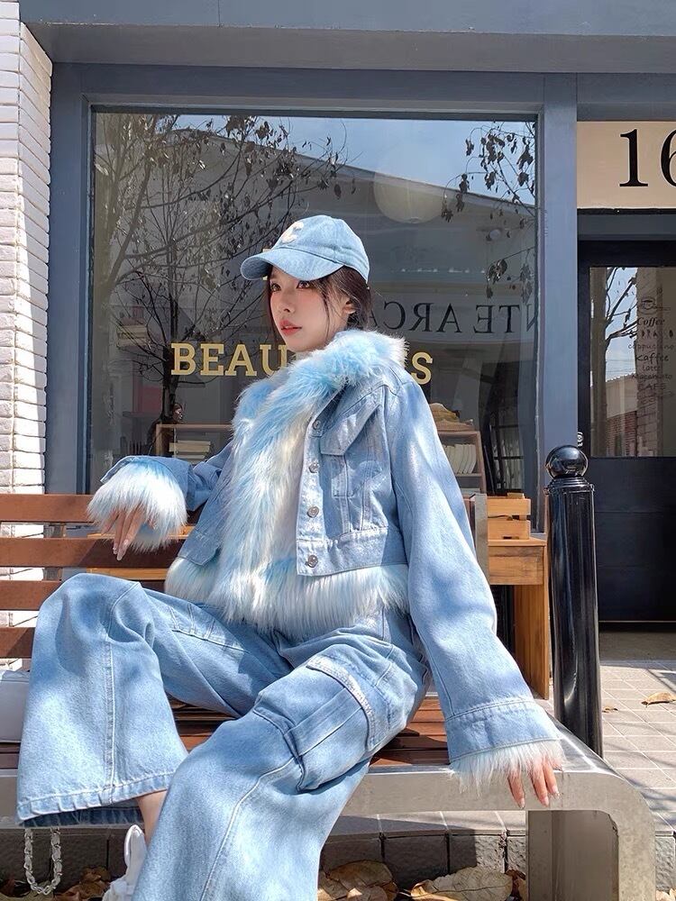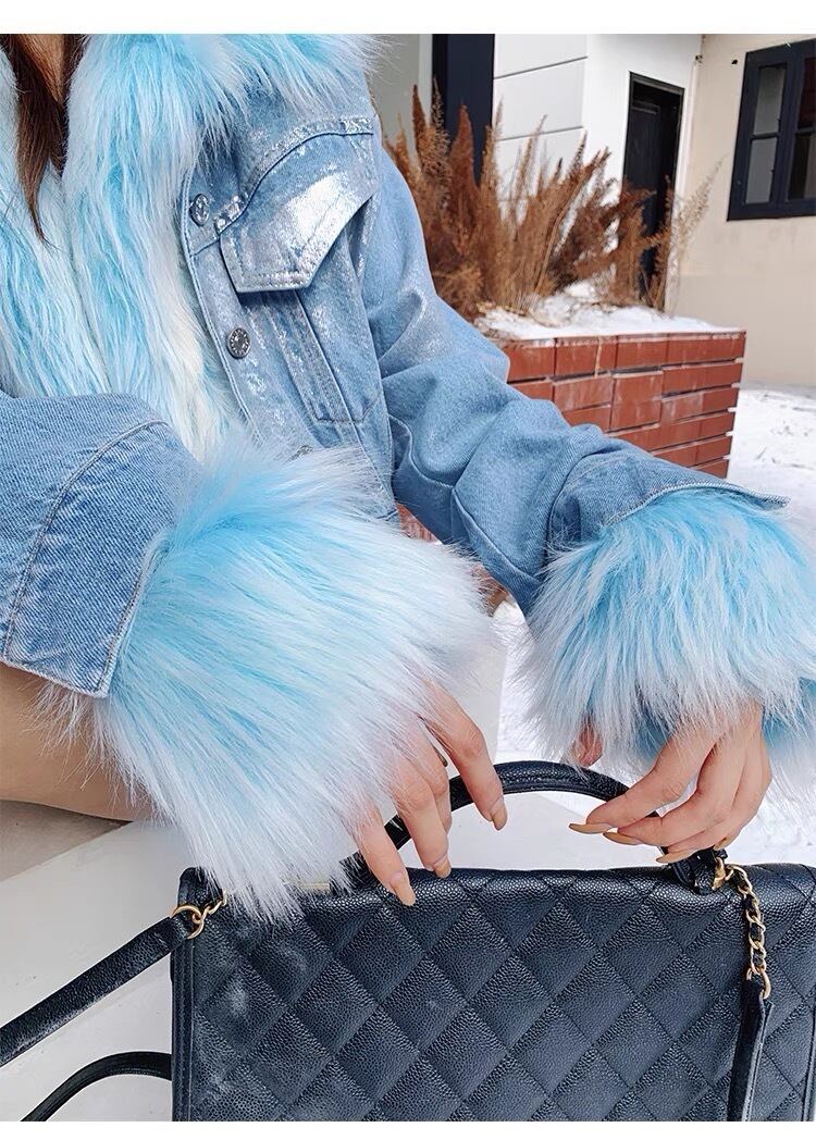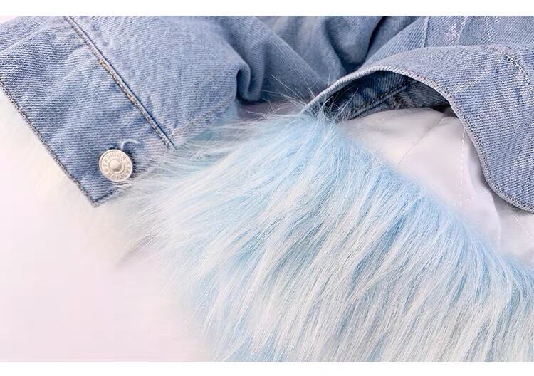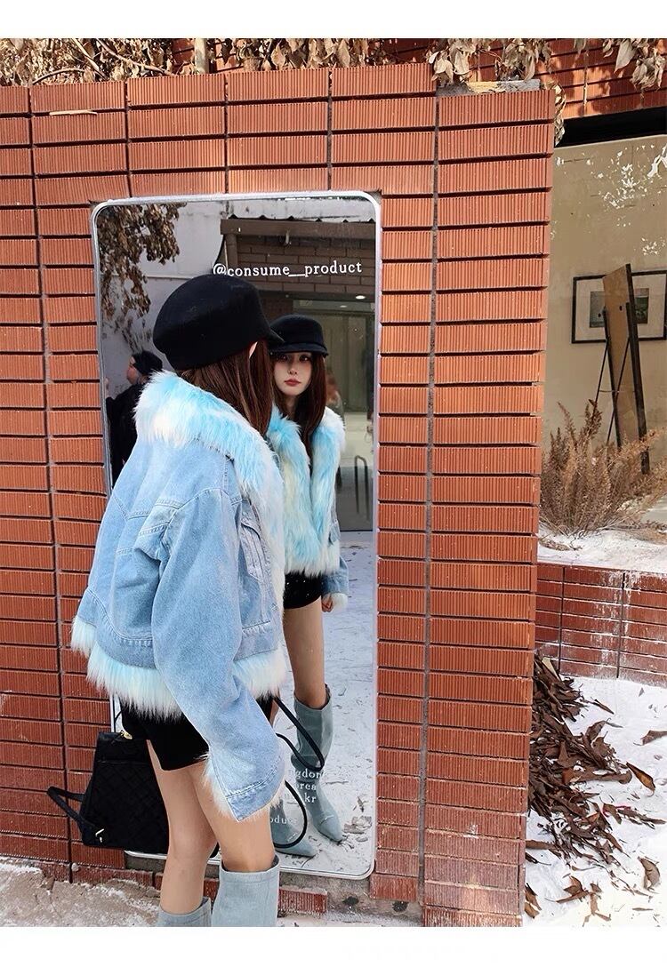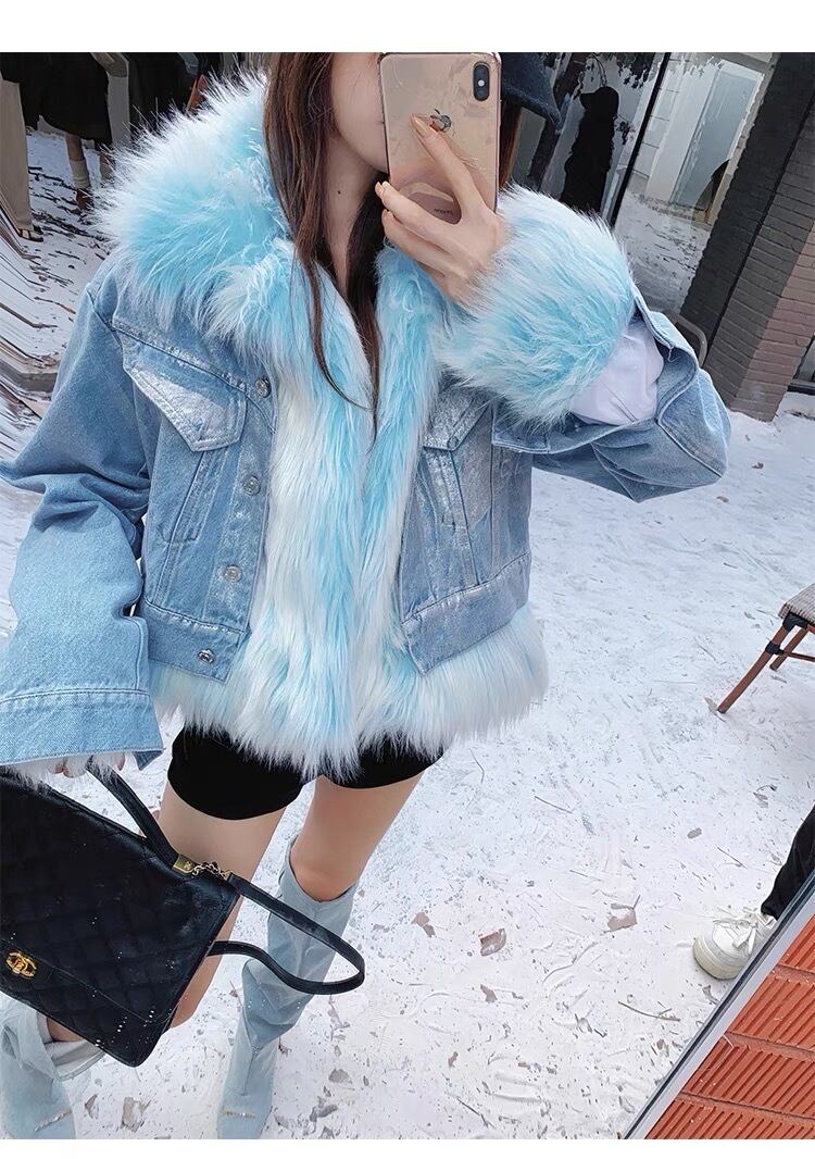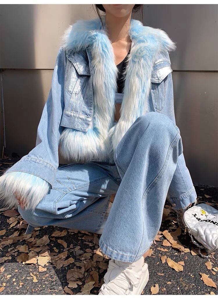 水色 ファー ジャケット コート アウター デニム