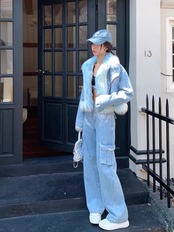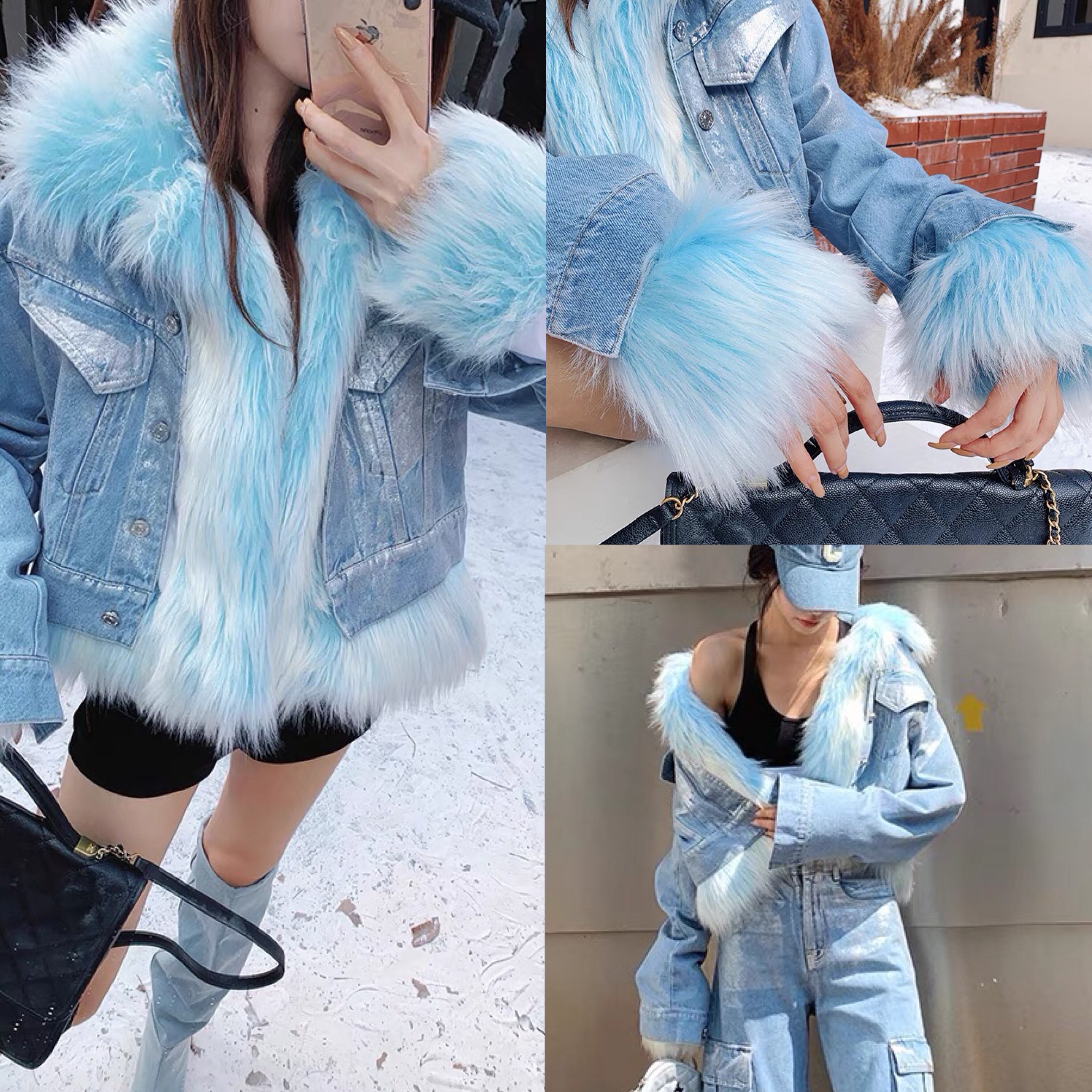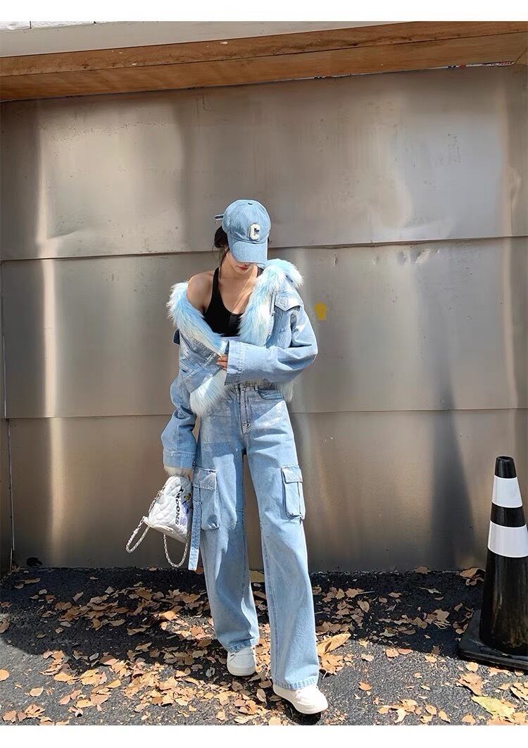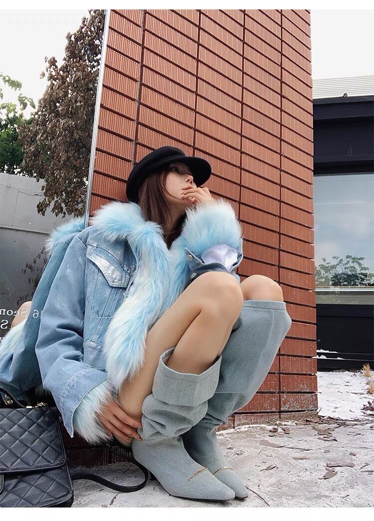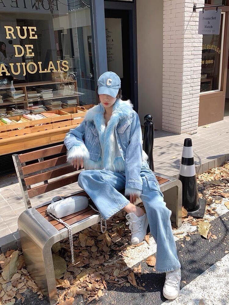 水色 ファー ジャケット コート アウター デニム