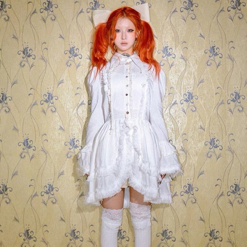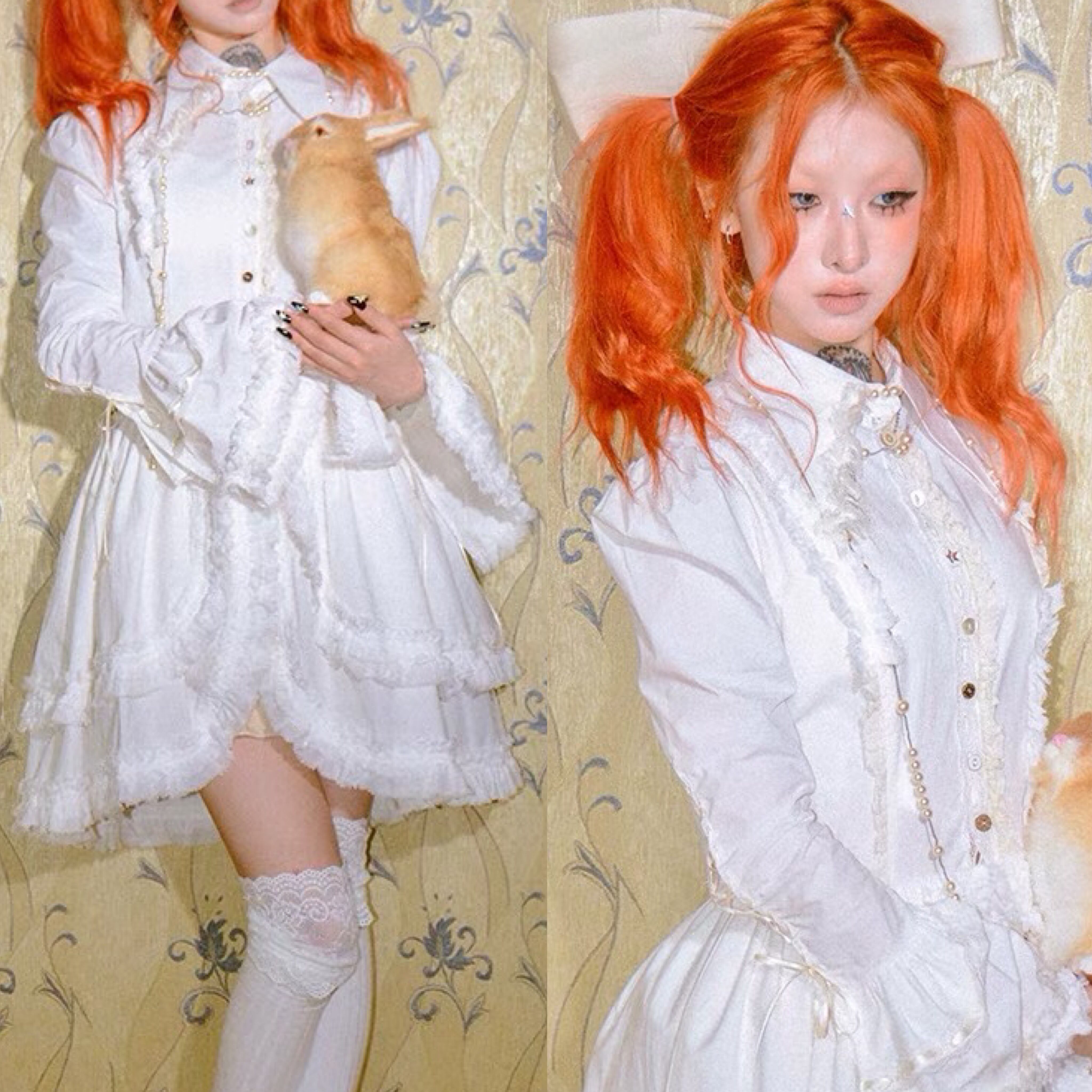 ジャケット ワンピース 白 リボン フリル ガーリー