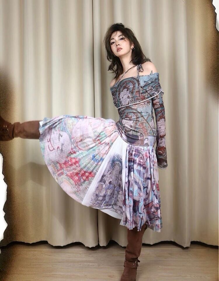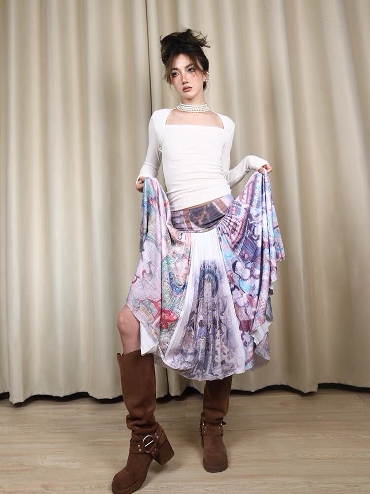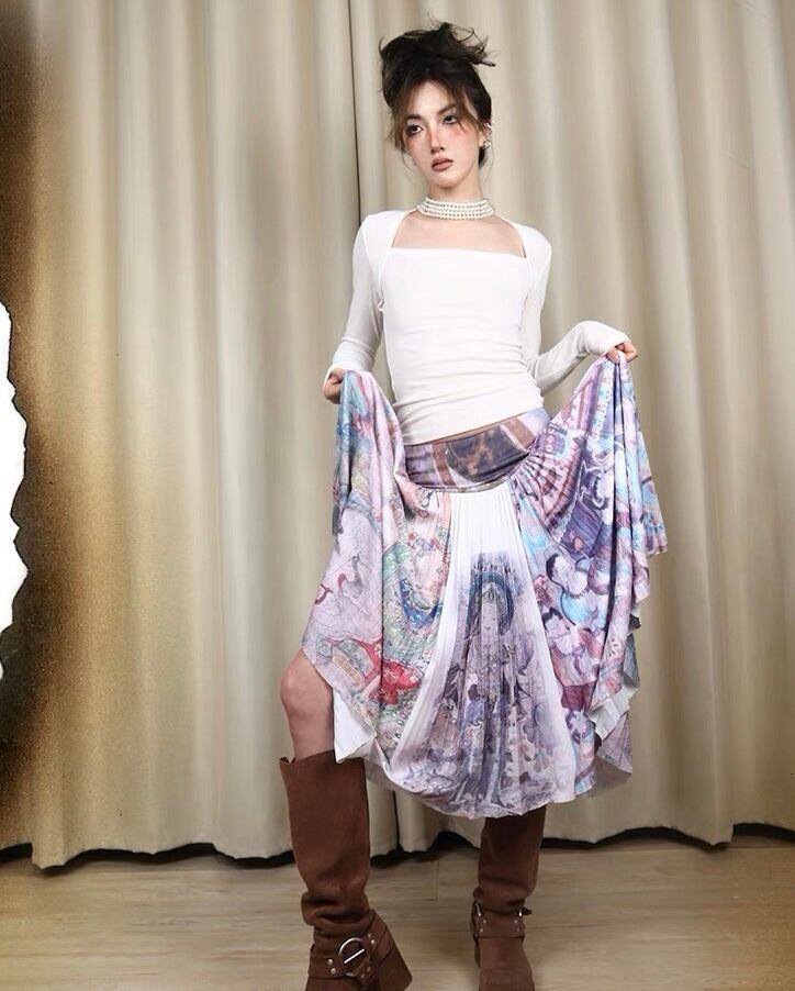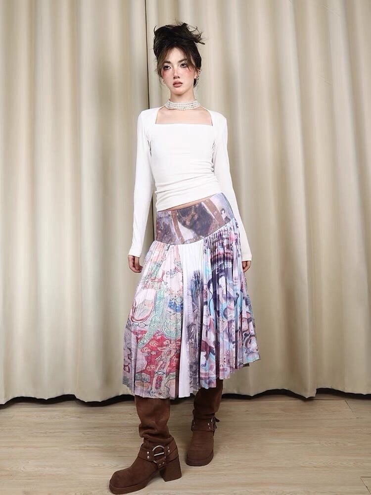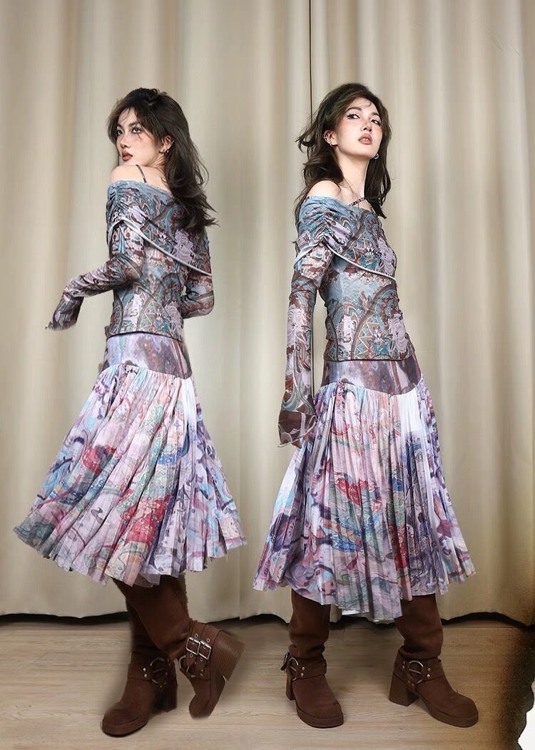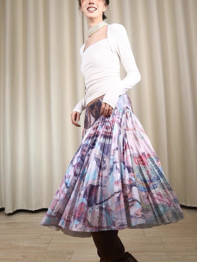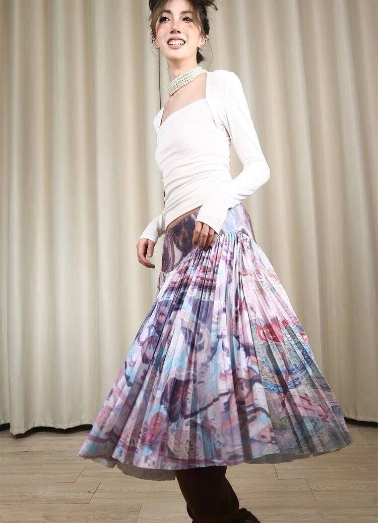 スカート ボトムス プリーツスカート 紫 シルバー グレー