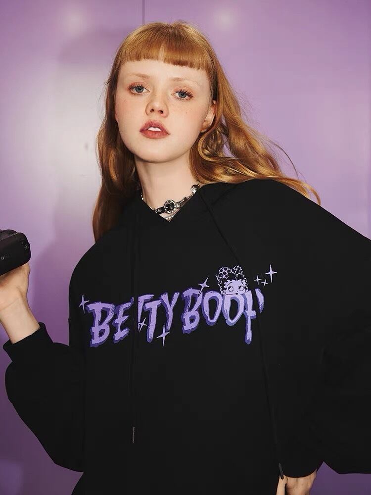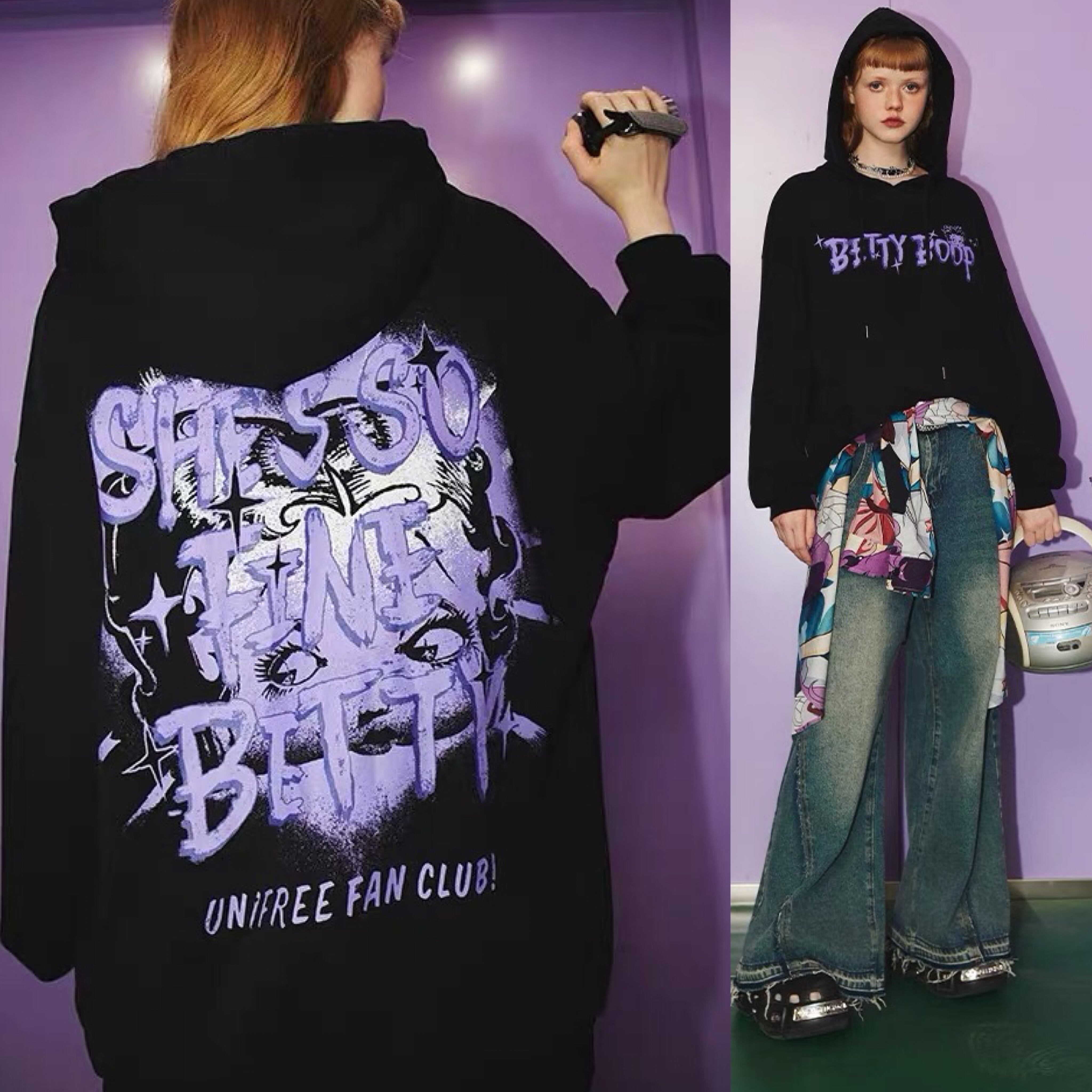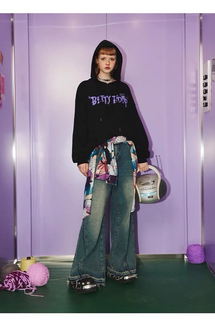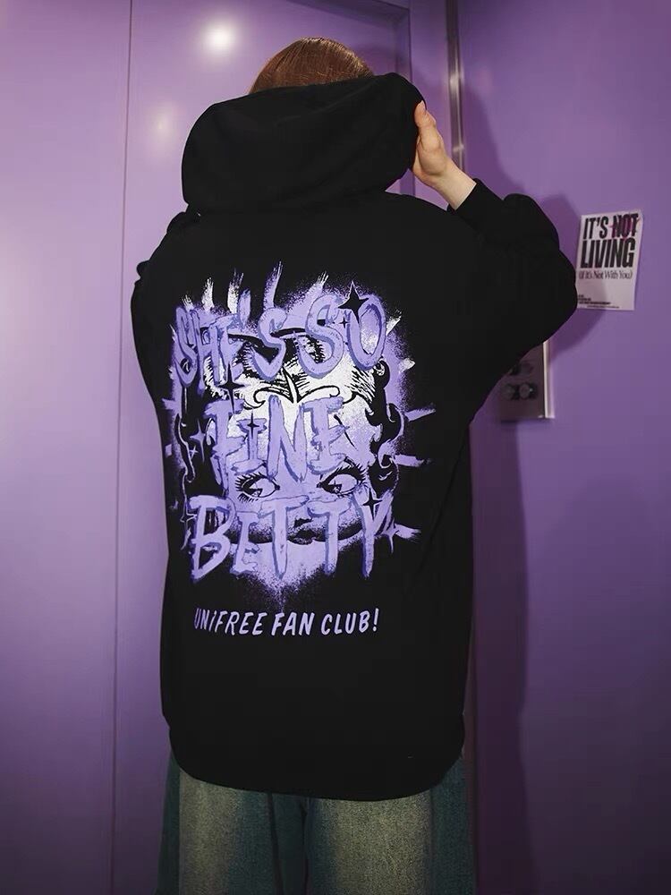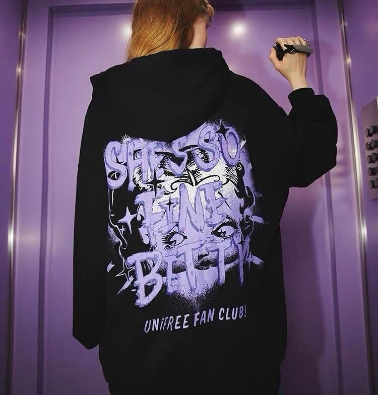 黒 パーカー スウェット 紫 ガーリー カジュアル