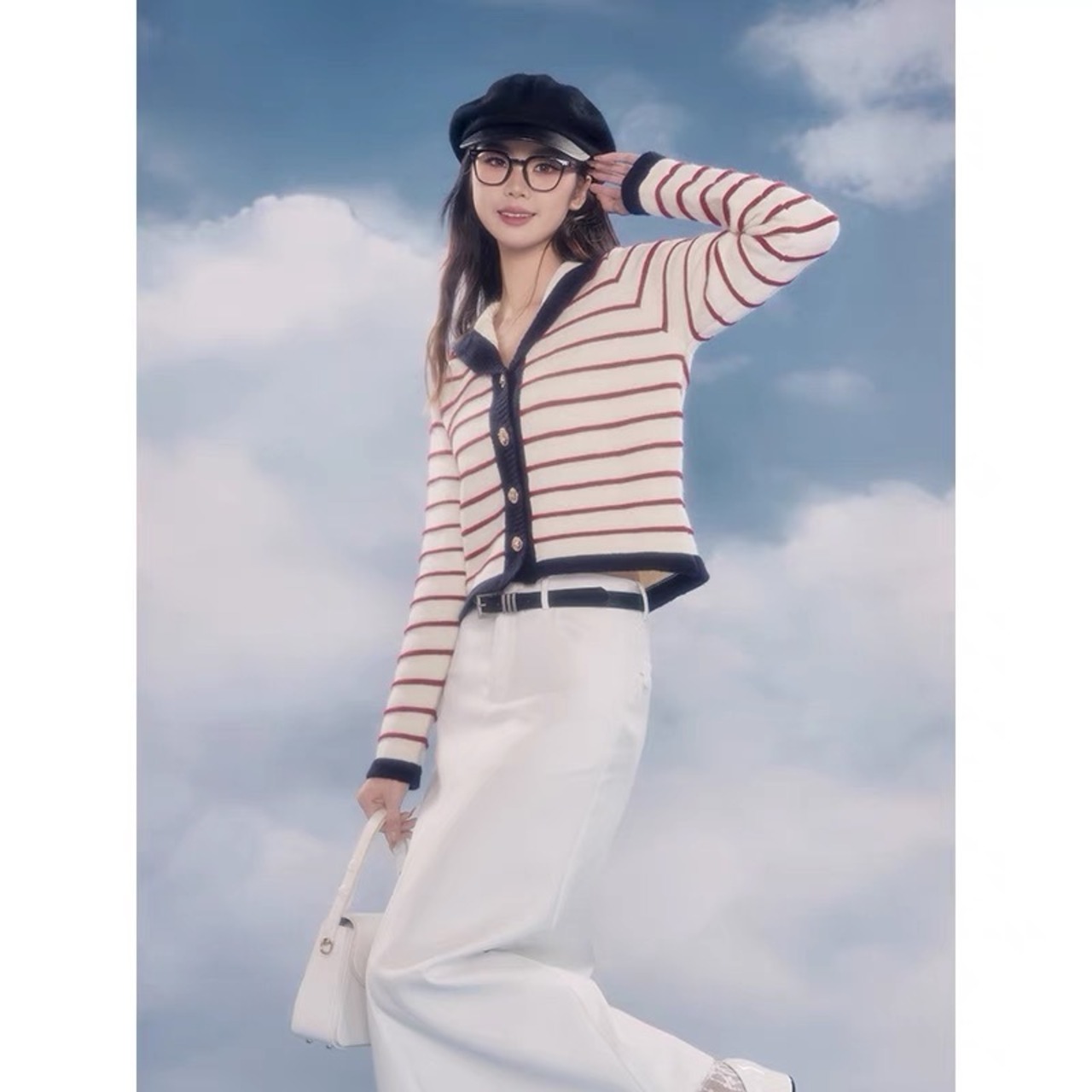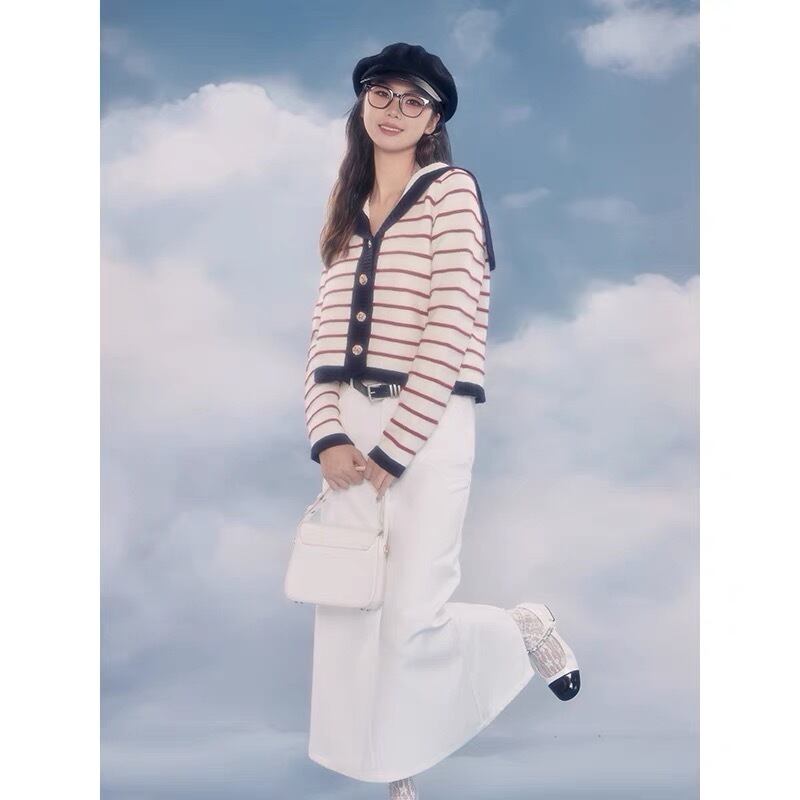カーディガン ピンク チェック マリン 白 ストライプ セーラ
