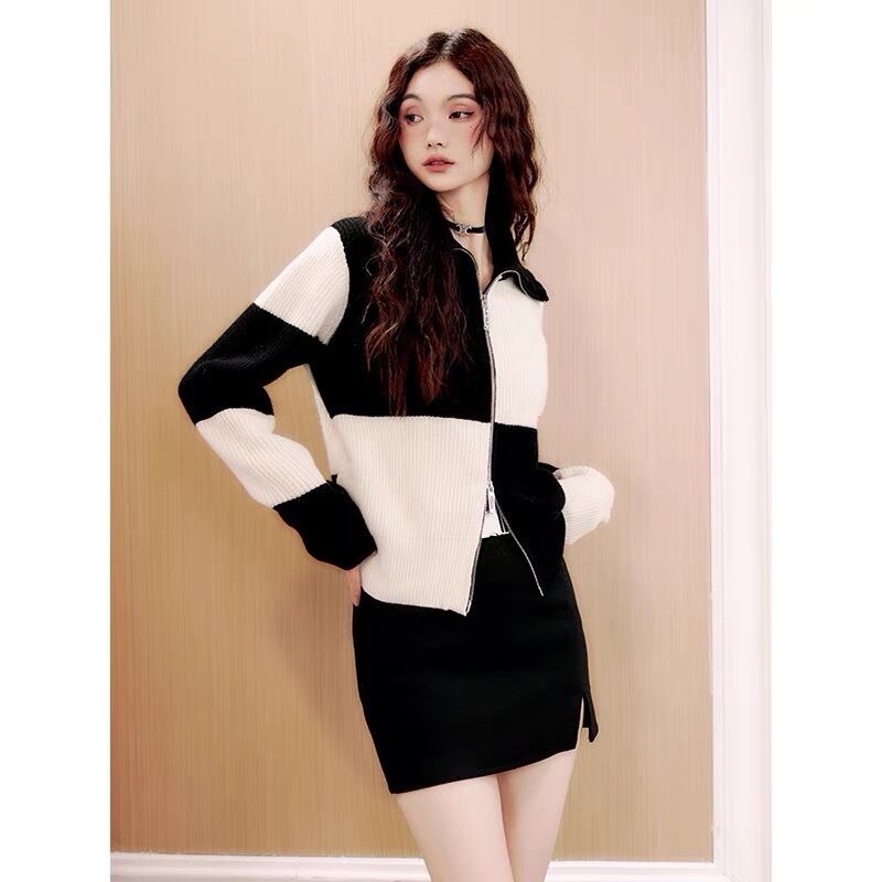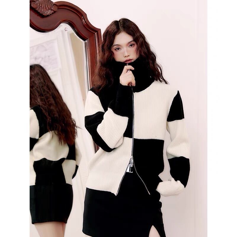 【2way】ハイネック カーディガン ニット セーター チェック
