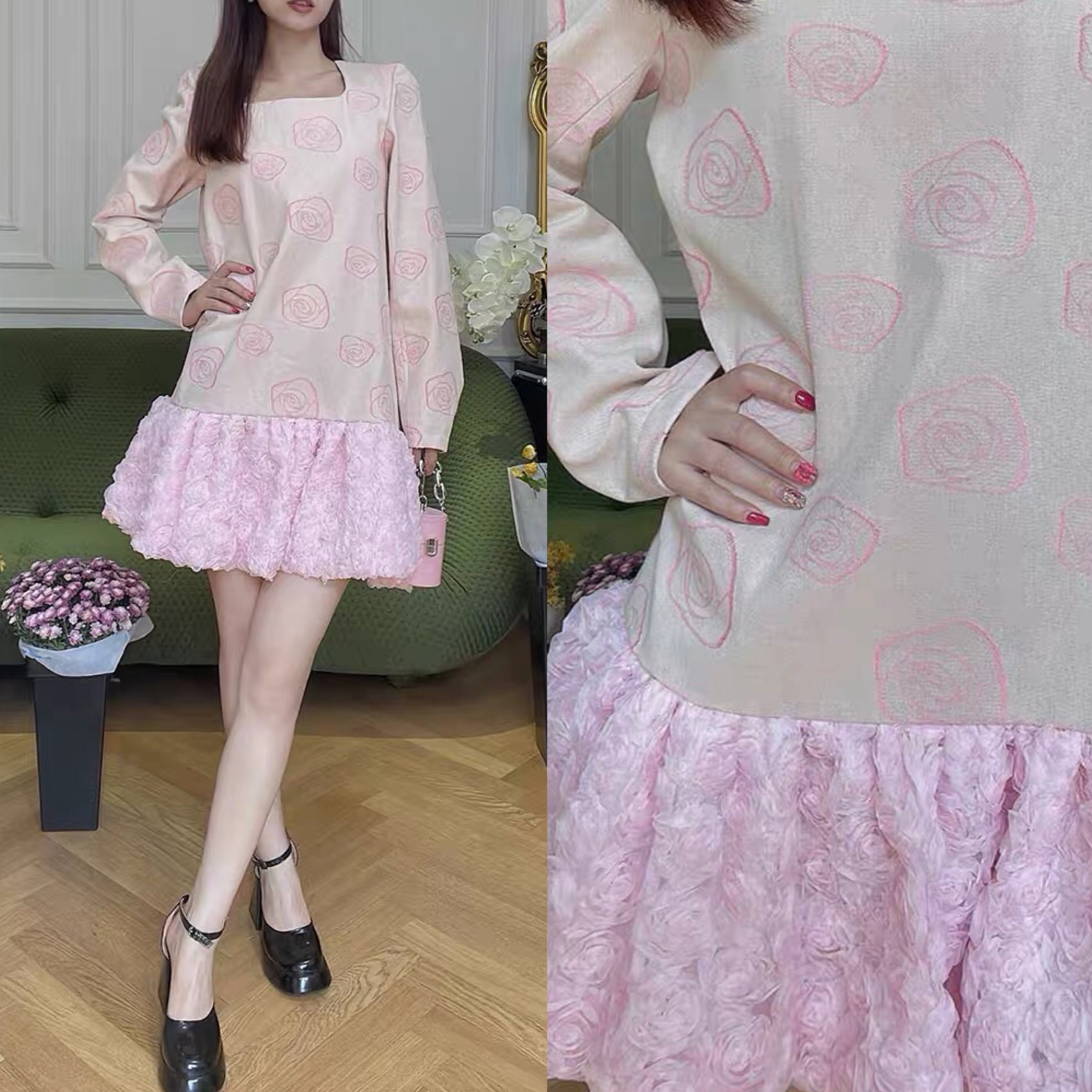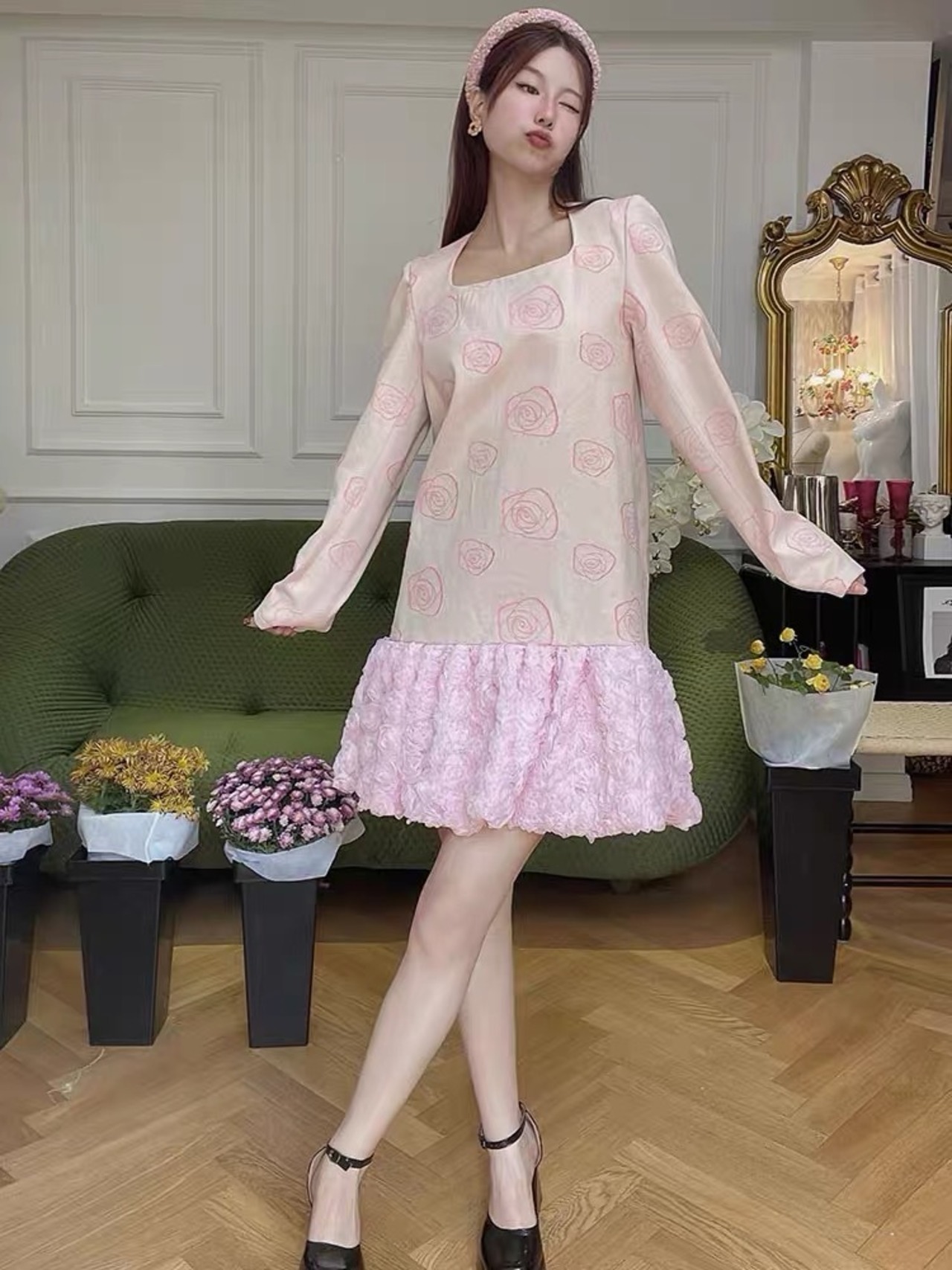 ピンク 薔薇 花柄 ワンピース フラワー ガーリー