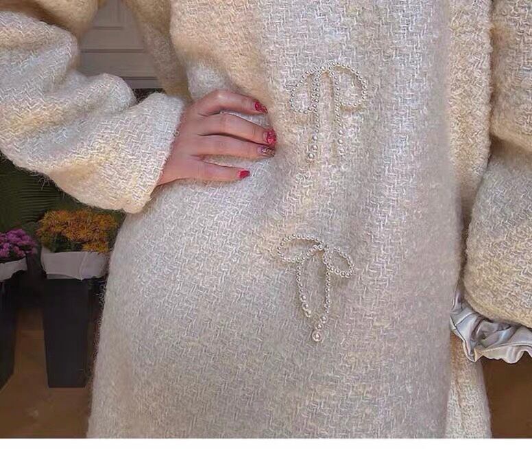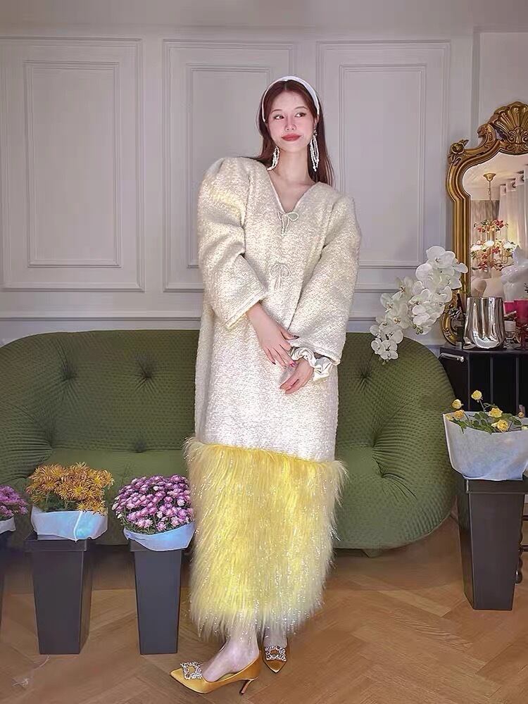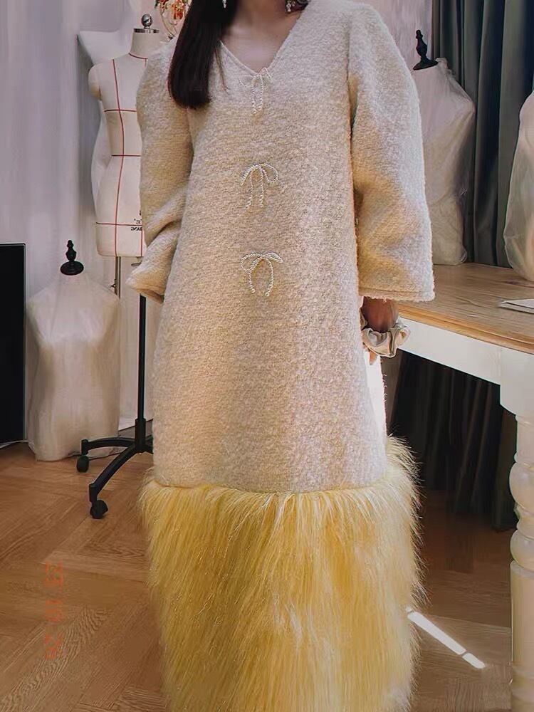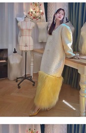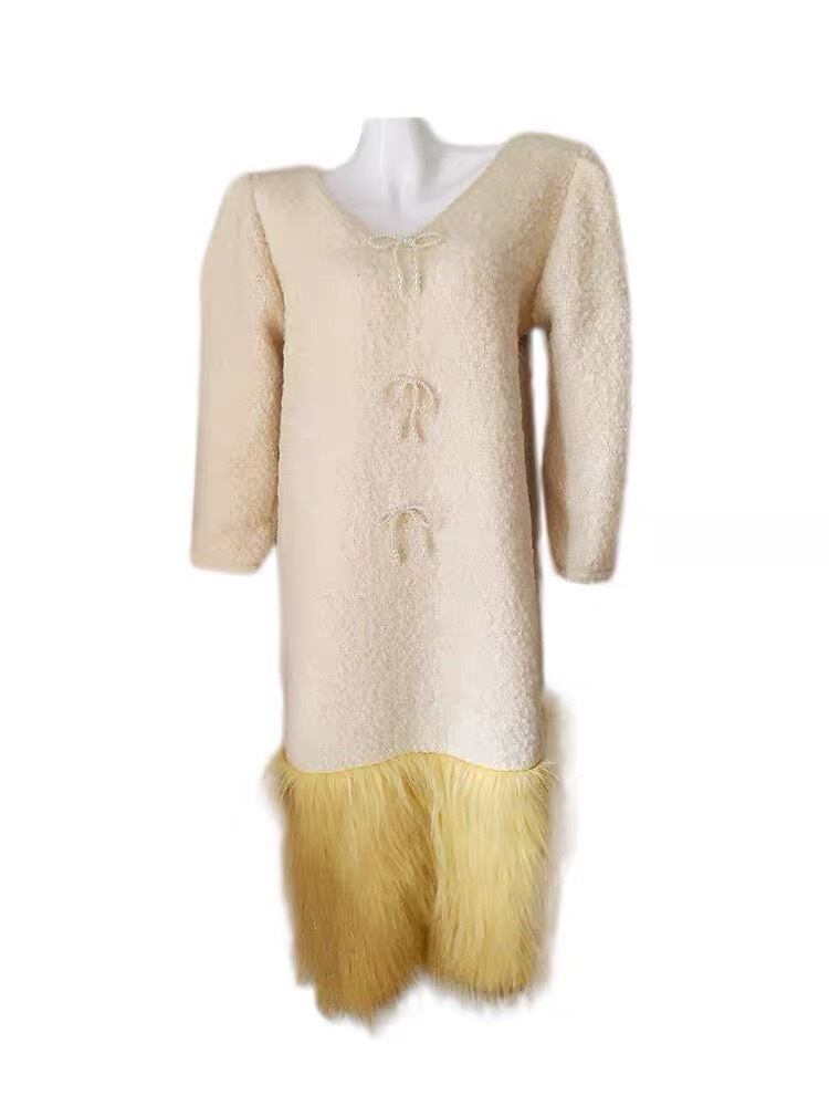 ワンピース ベージュ 黄色 ドレス ツイード ゆったり