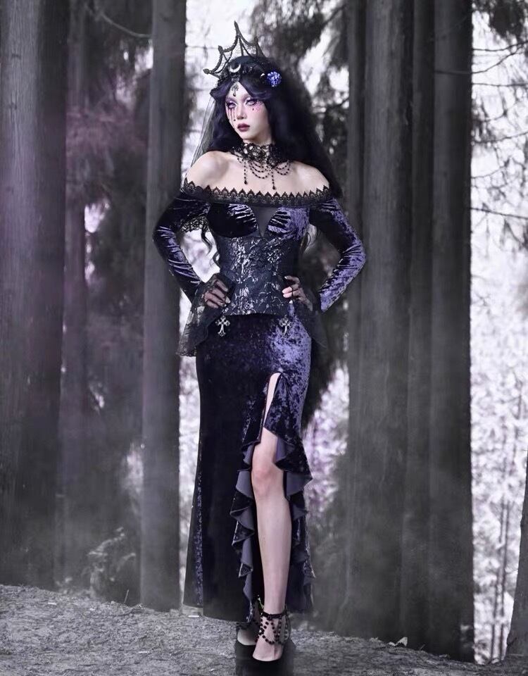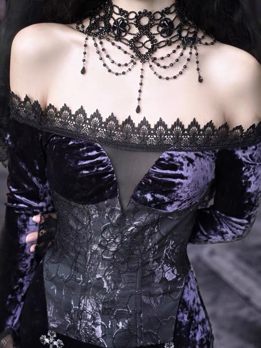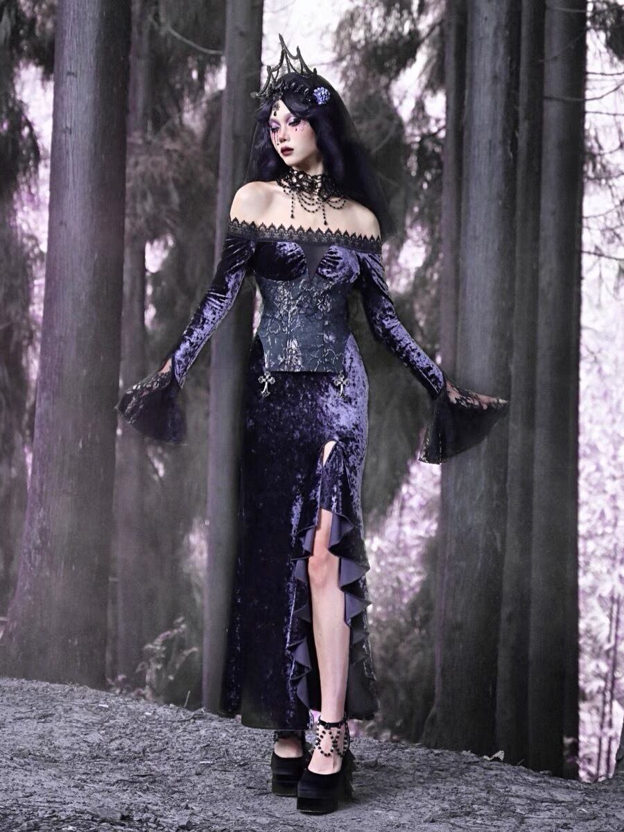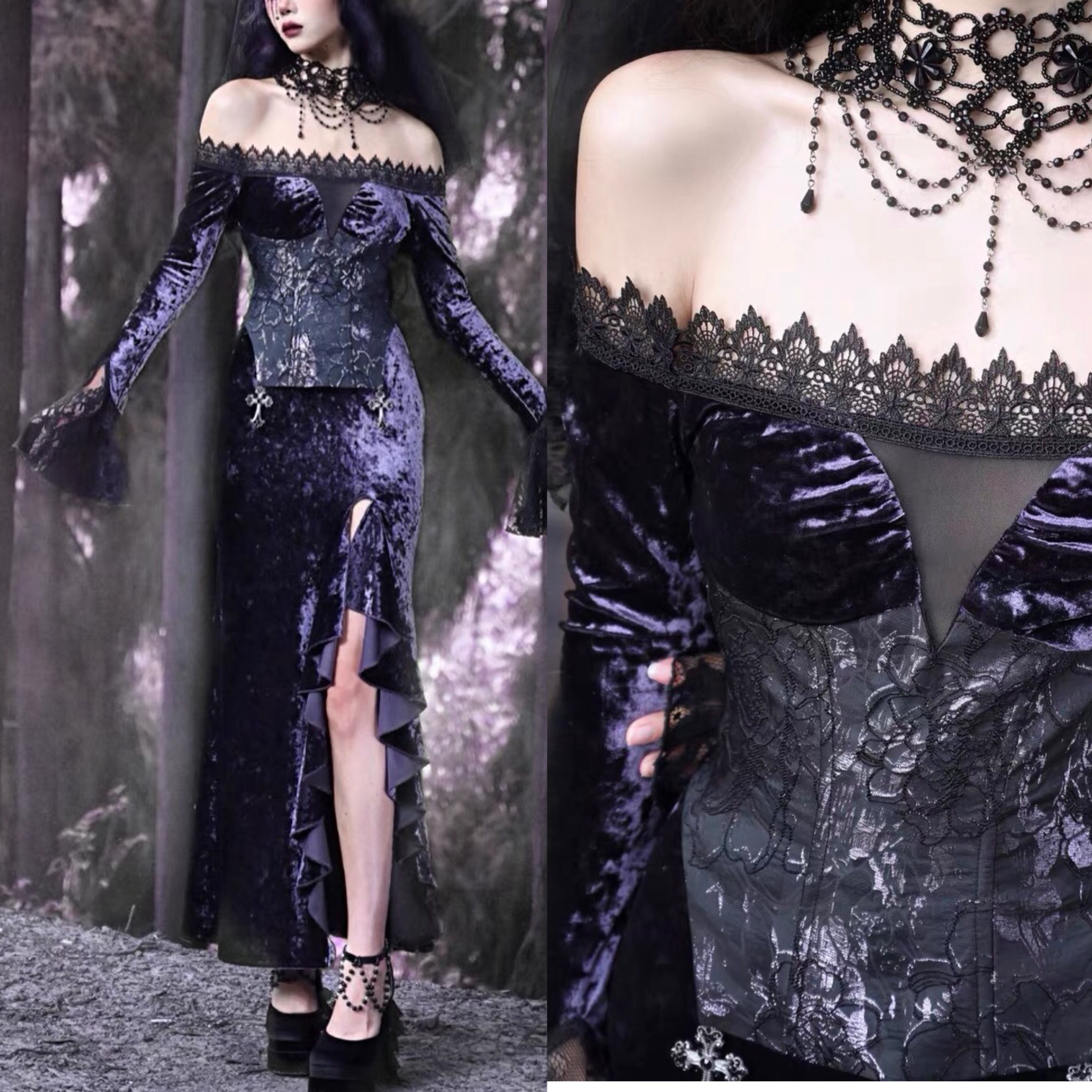 ワンピース オフショルダー セクシー 黒 紫 マキシ