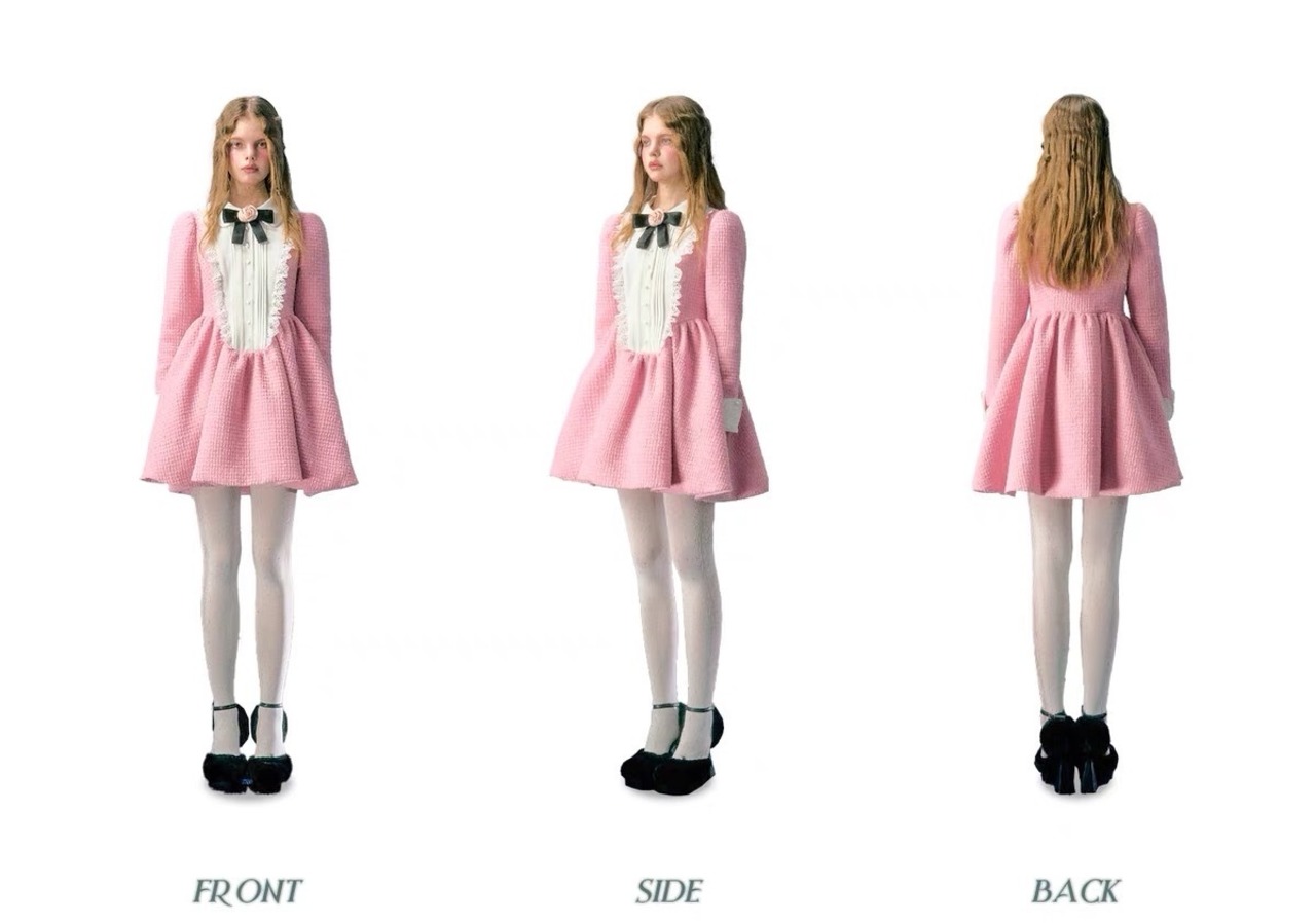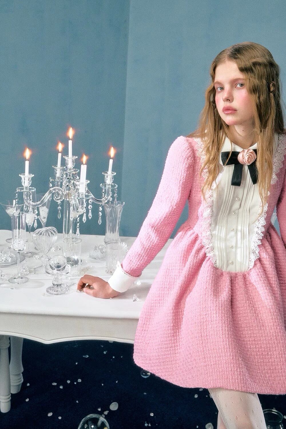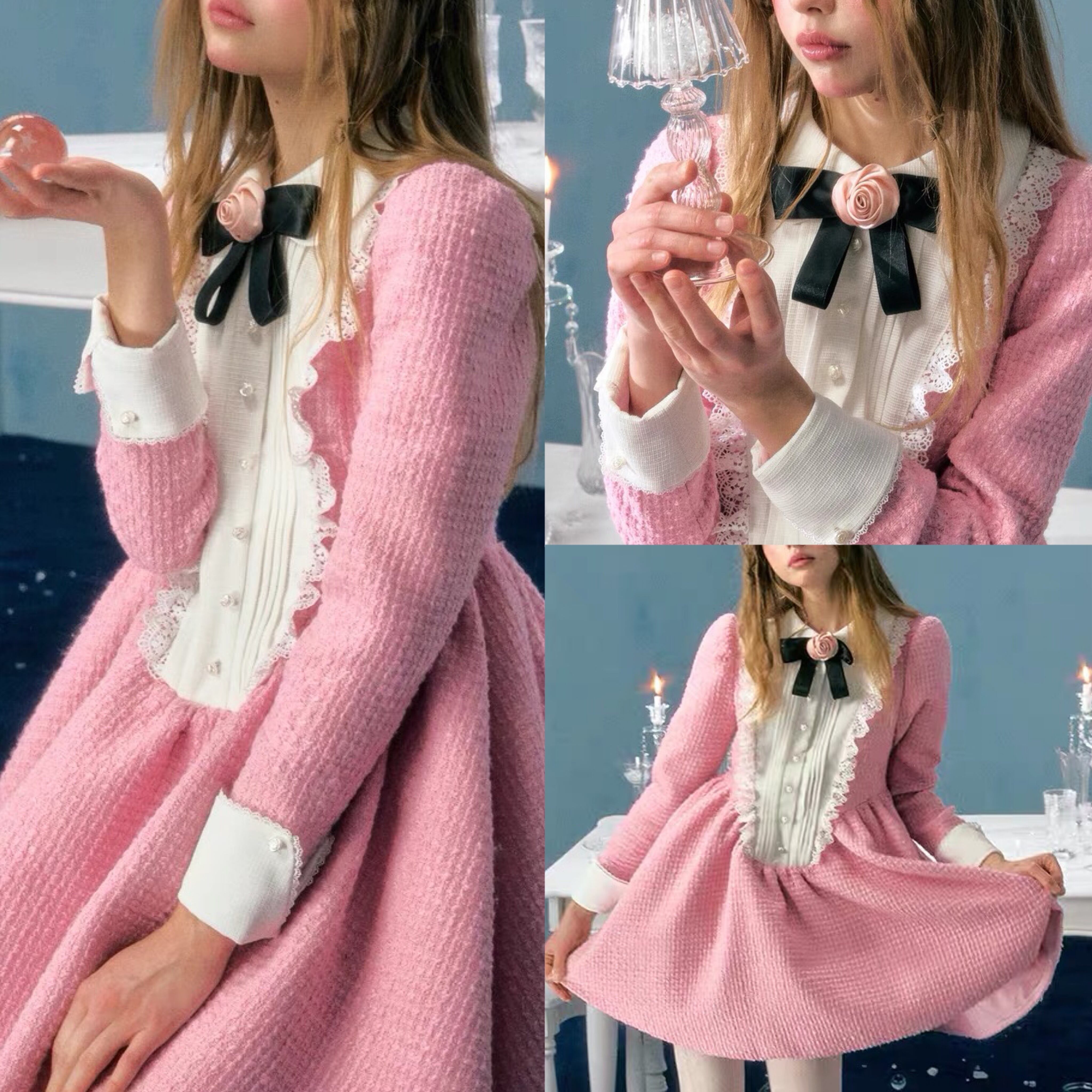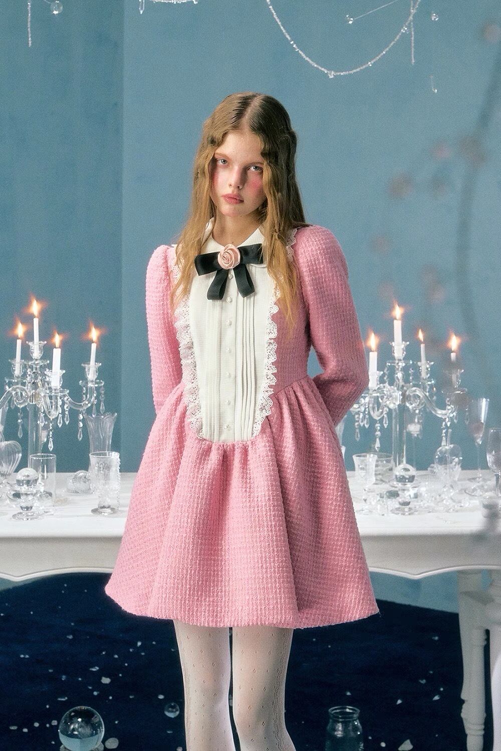 ワンピース ピンク カメリア ガーリー 可愛い 丸襟