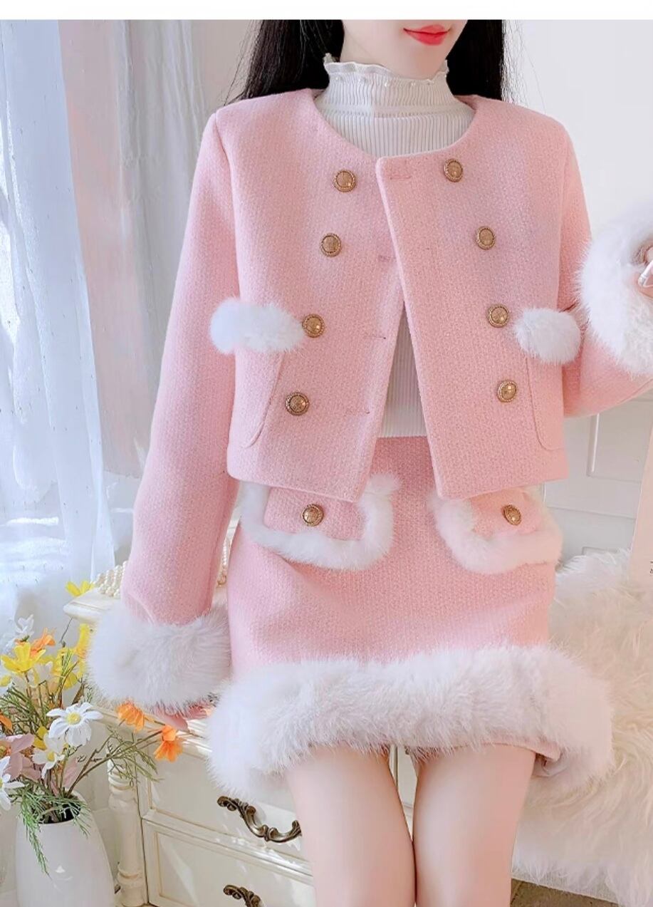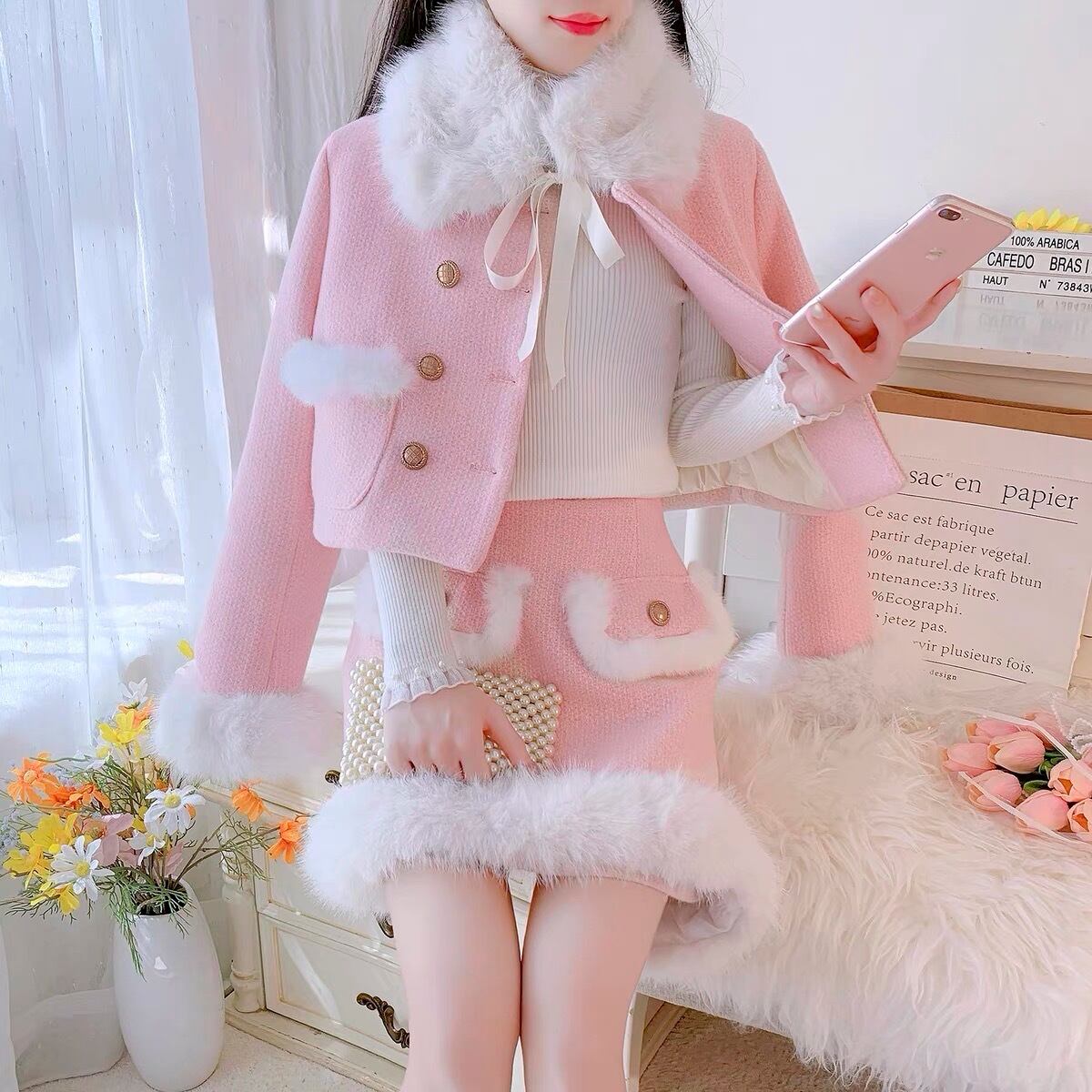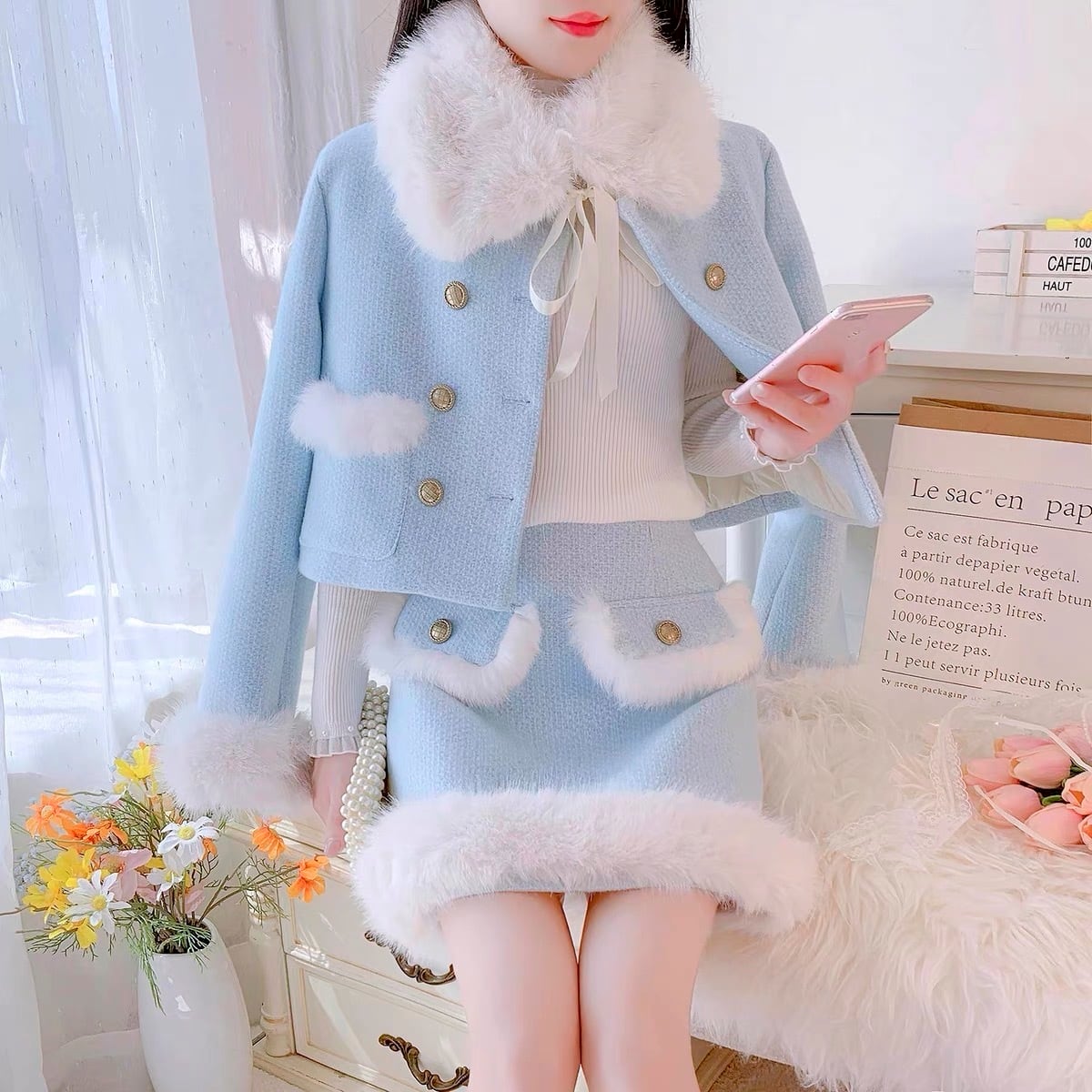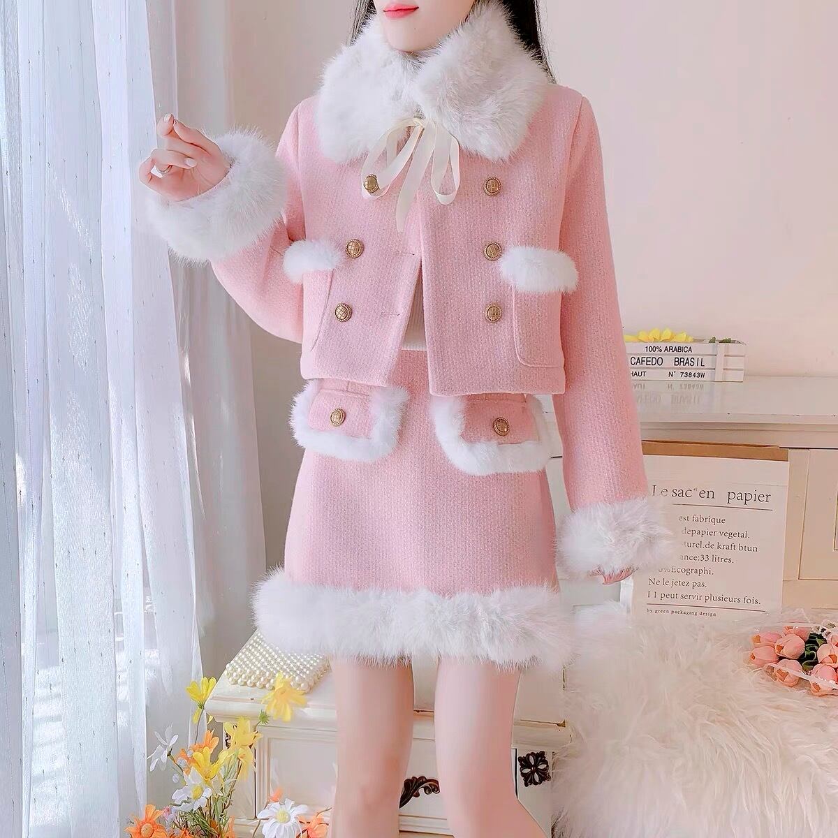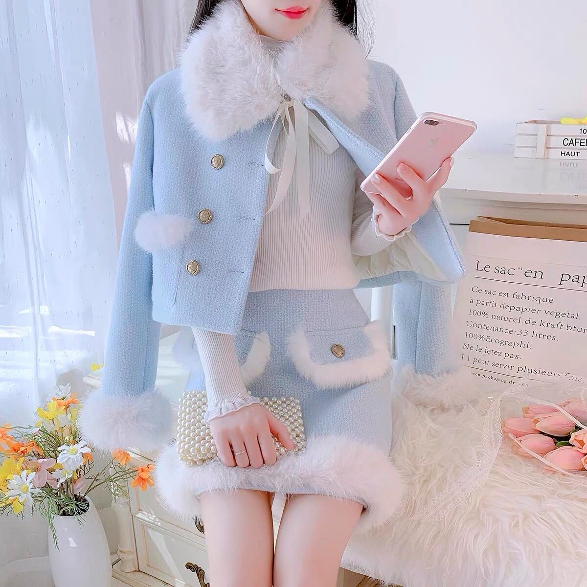 【セットアップ】水色 ピンク ジャケット スカート リボン XL