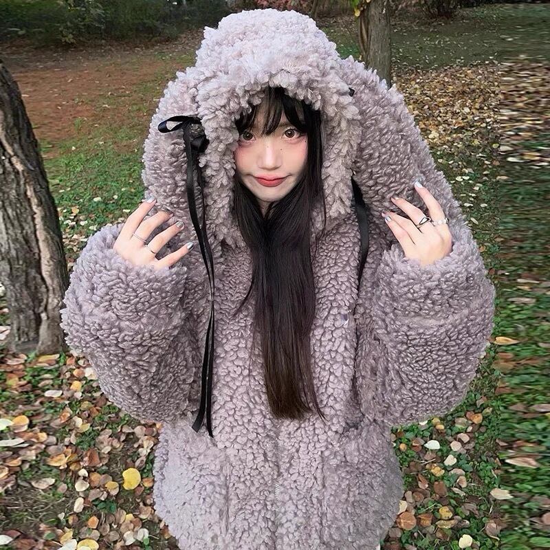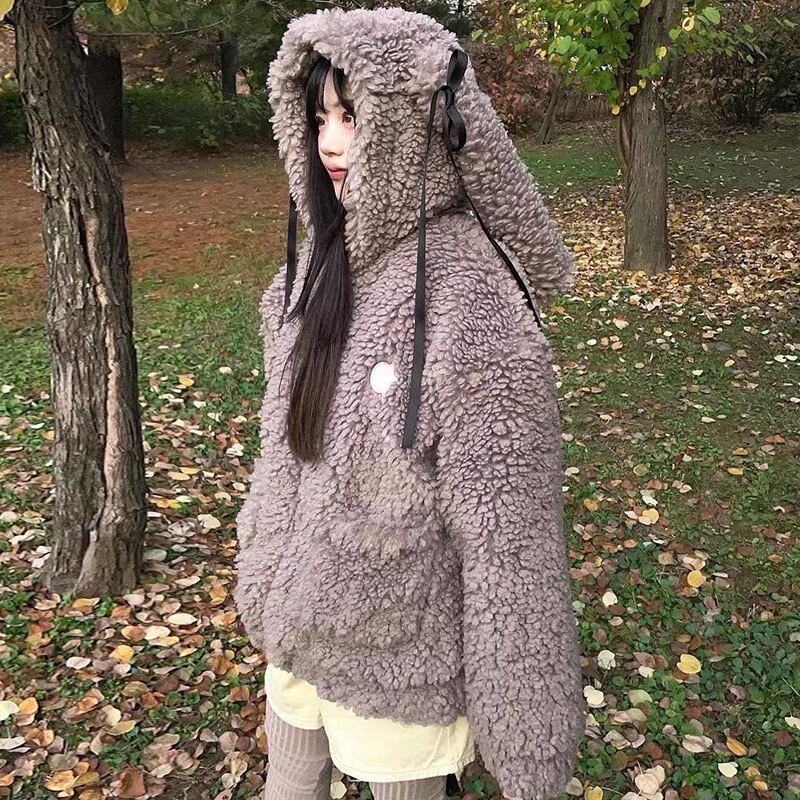 アウター ジャケット ジャンパー うさぎ フリース グレー
