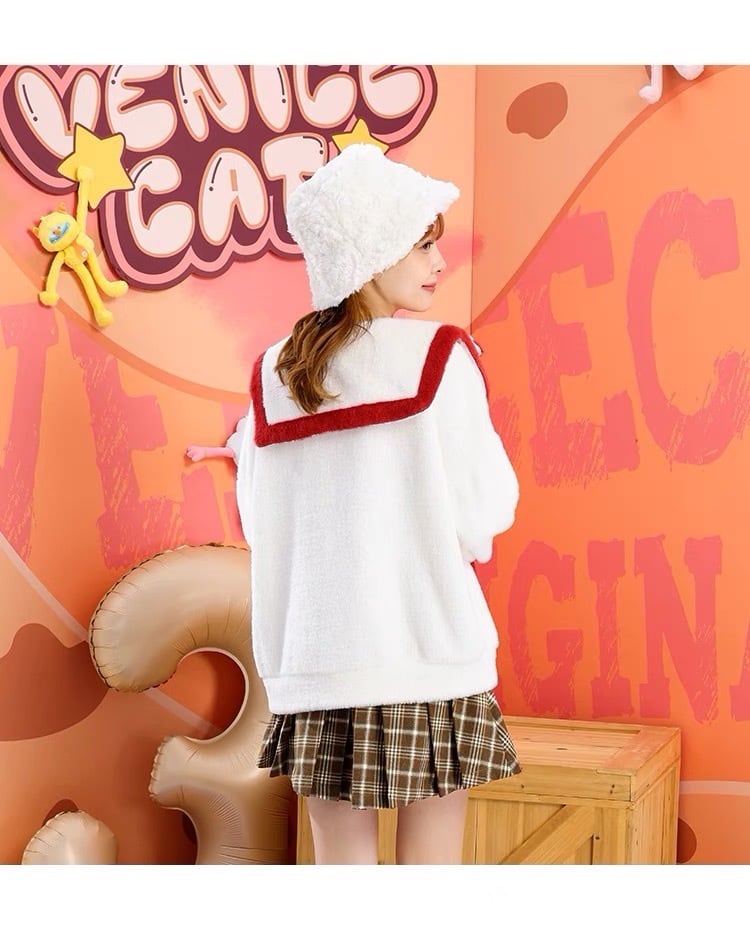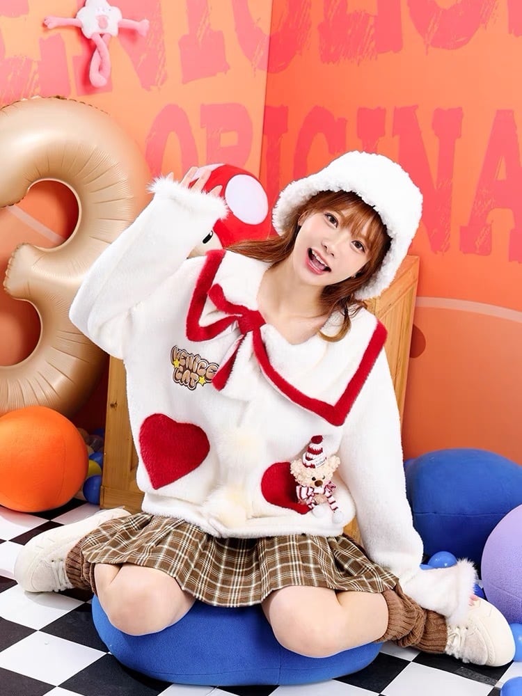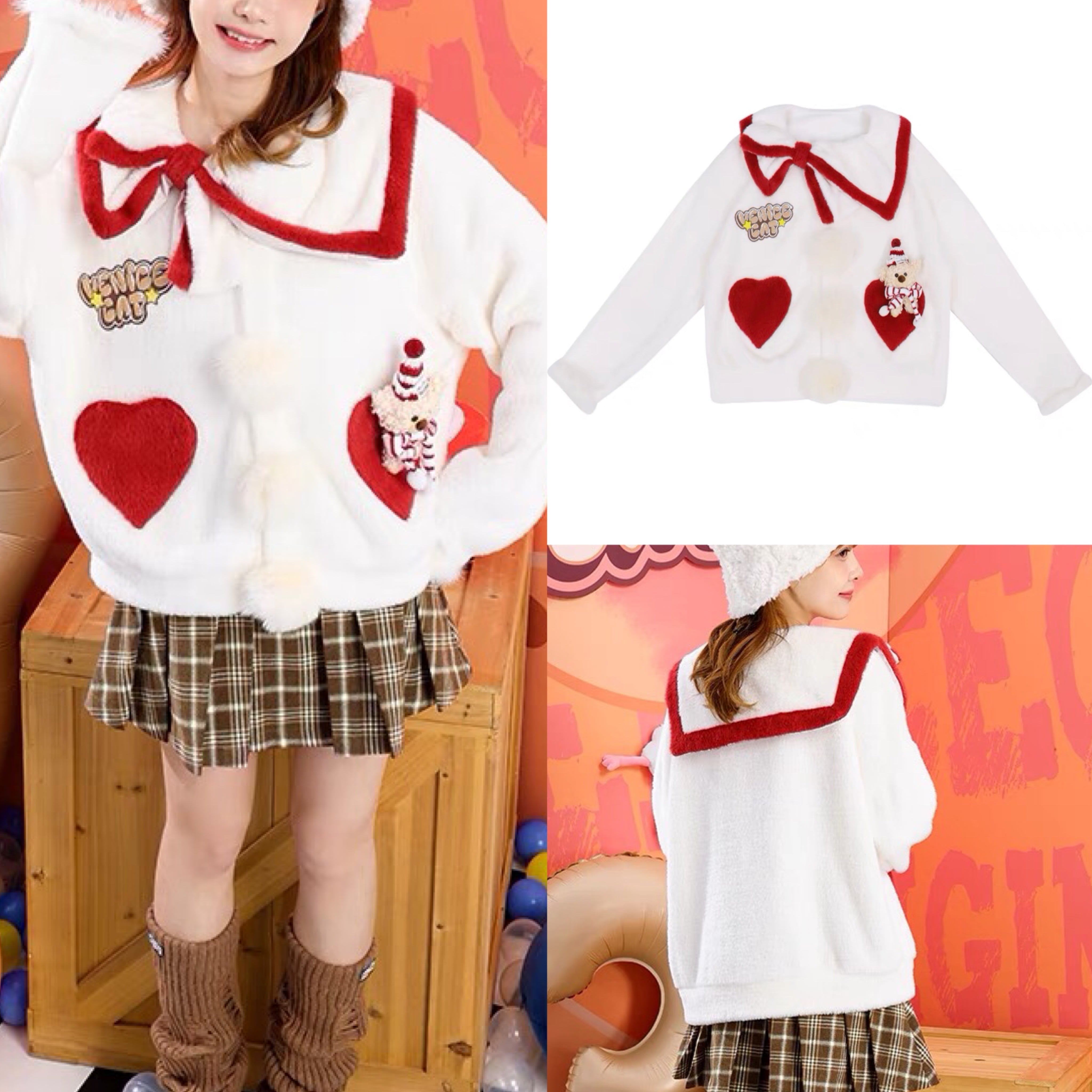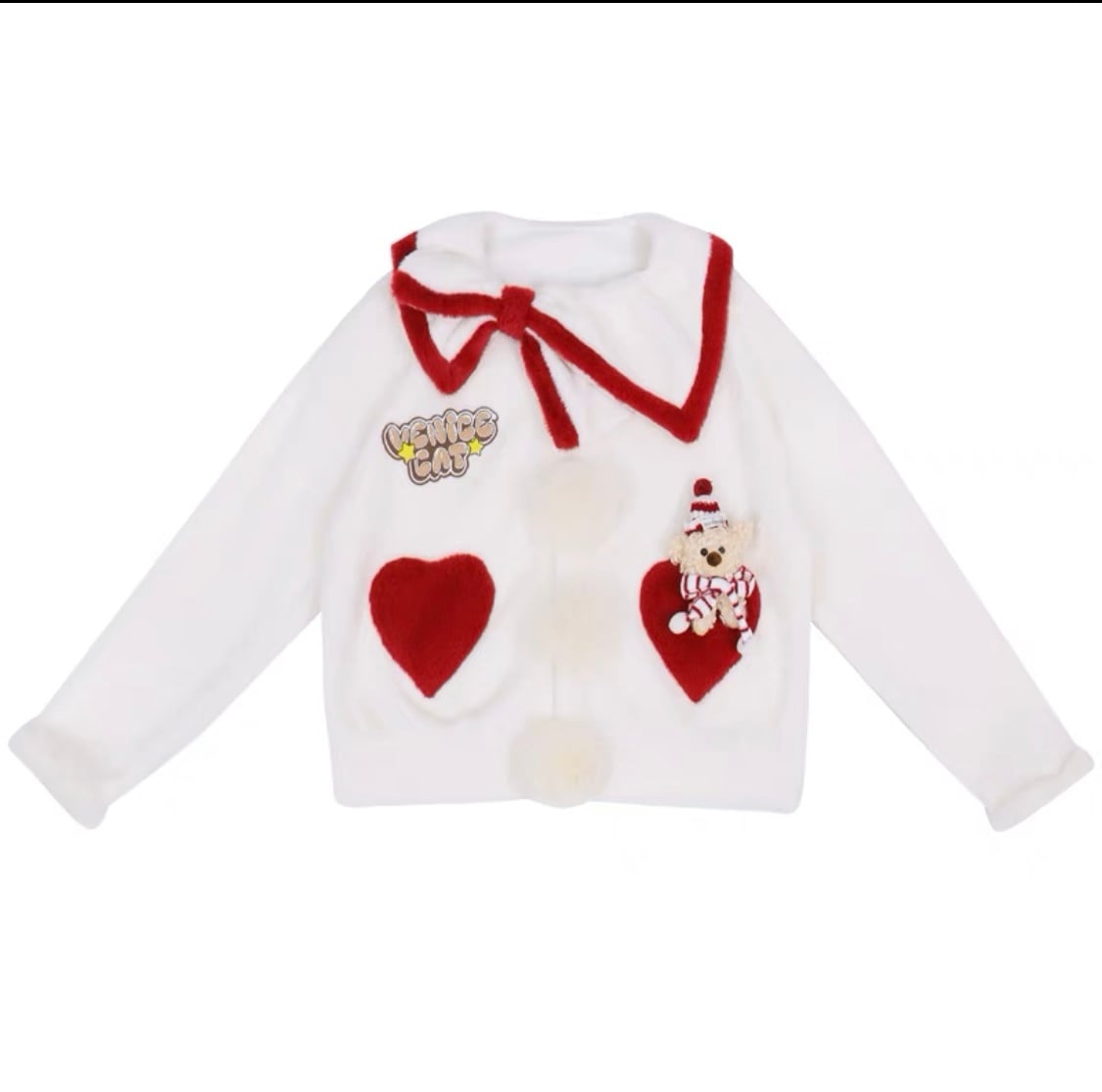 セーター 白 赤 くま ニット カーディガン