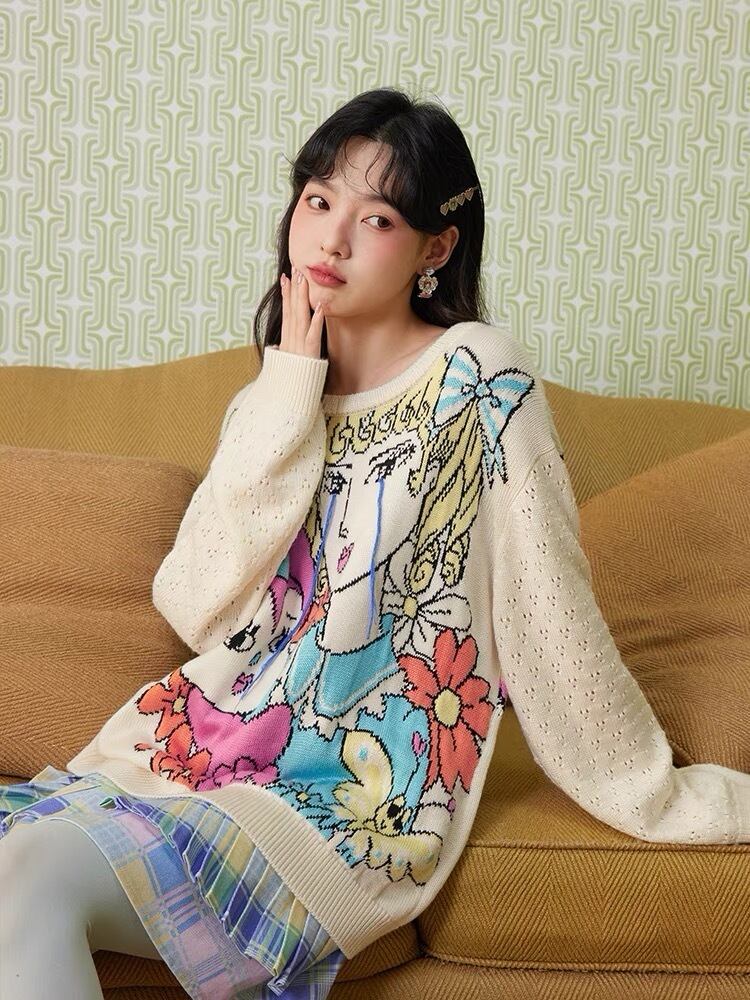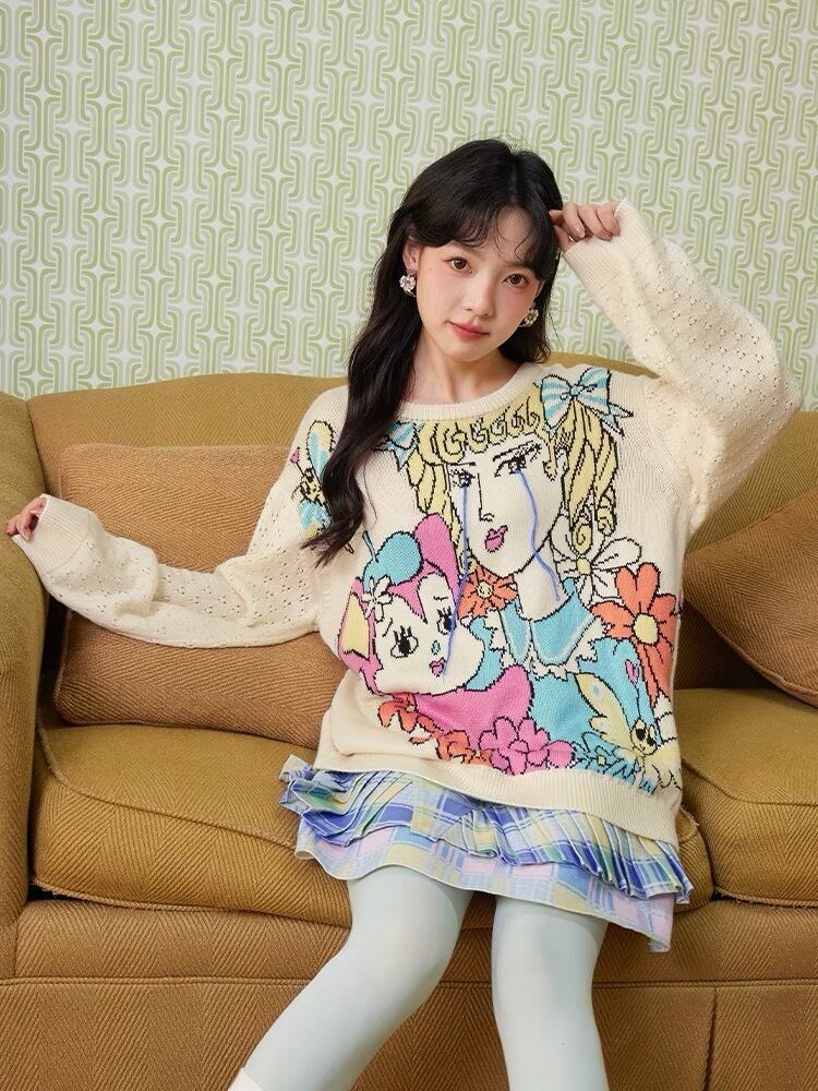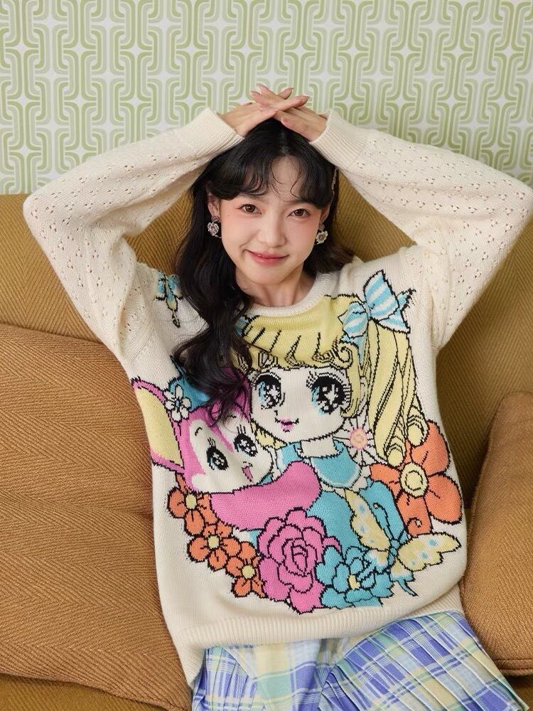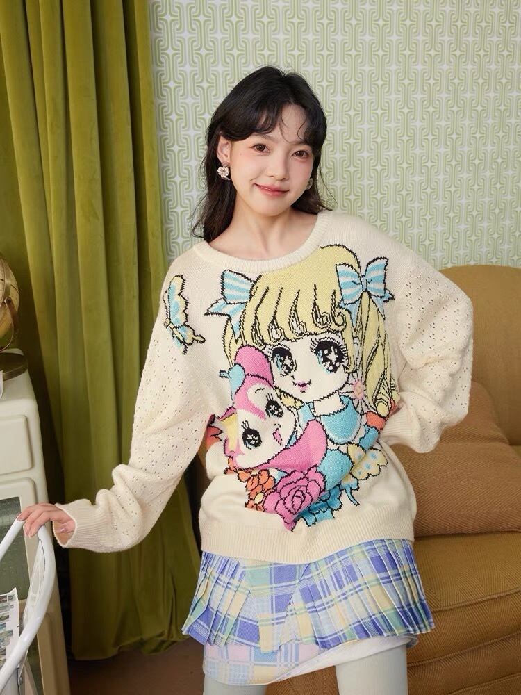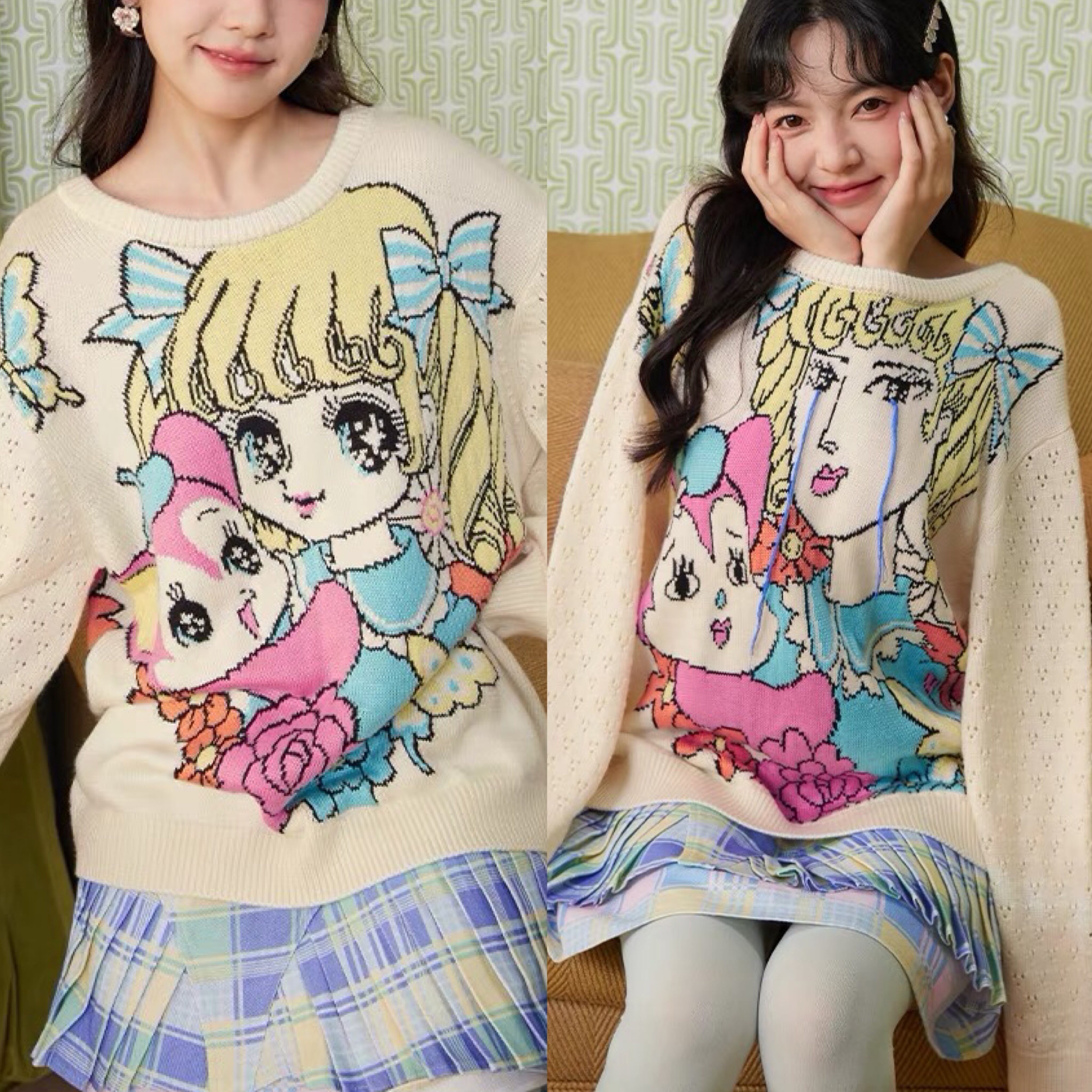 【リバーシブル】黄色 ガーリー セーター ニット リボン メルヘン