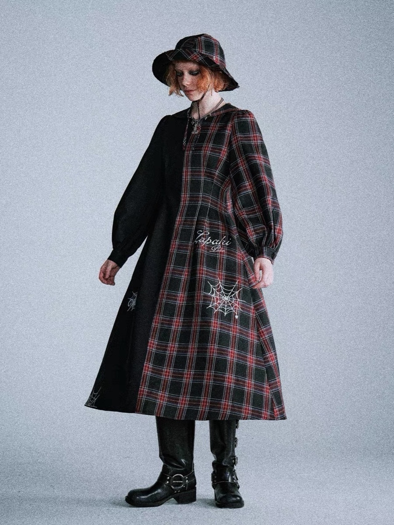 ワンピース チェック 黒 ブラック ロック イギリス 赤