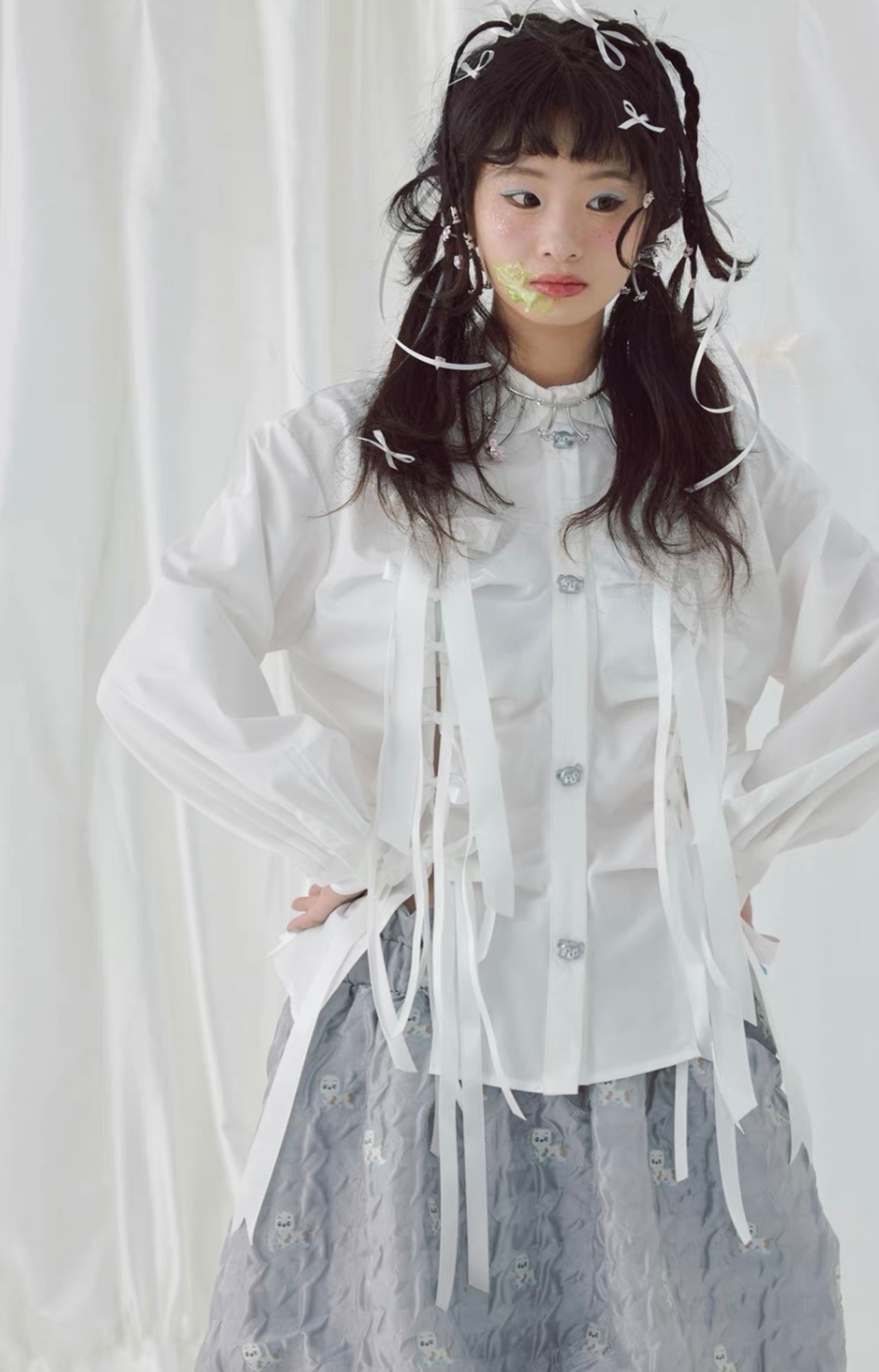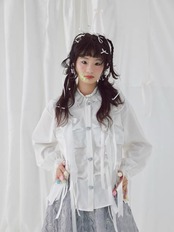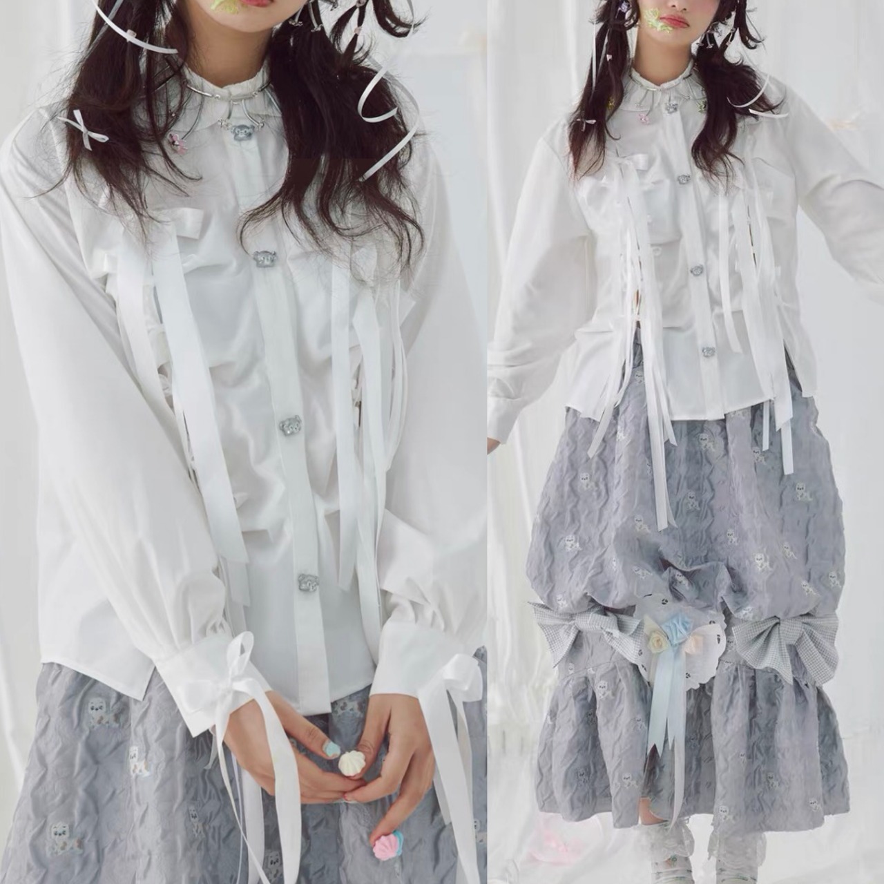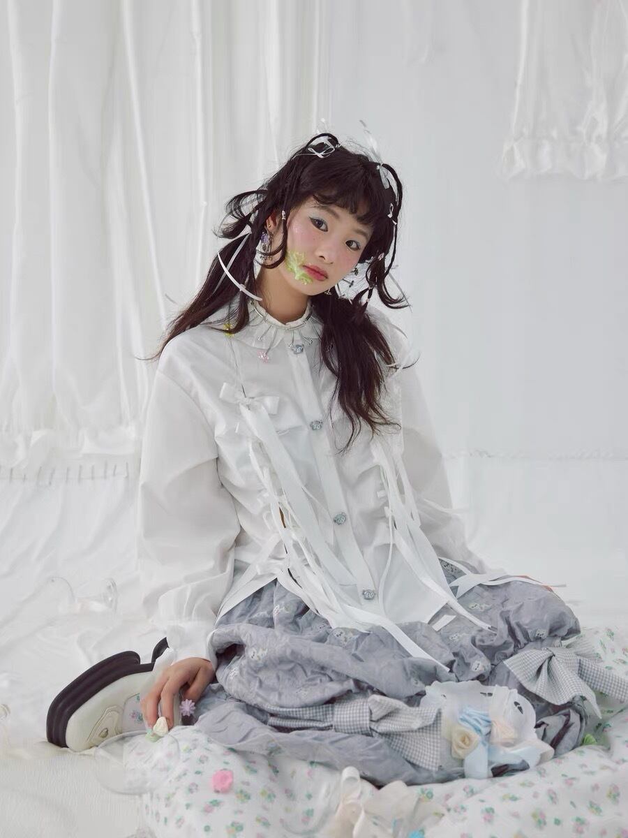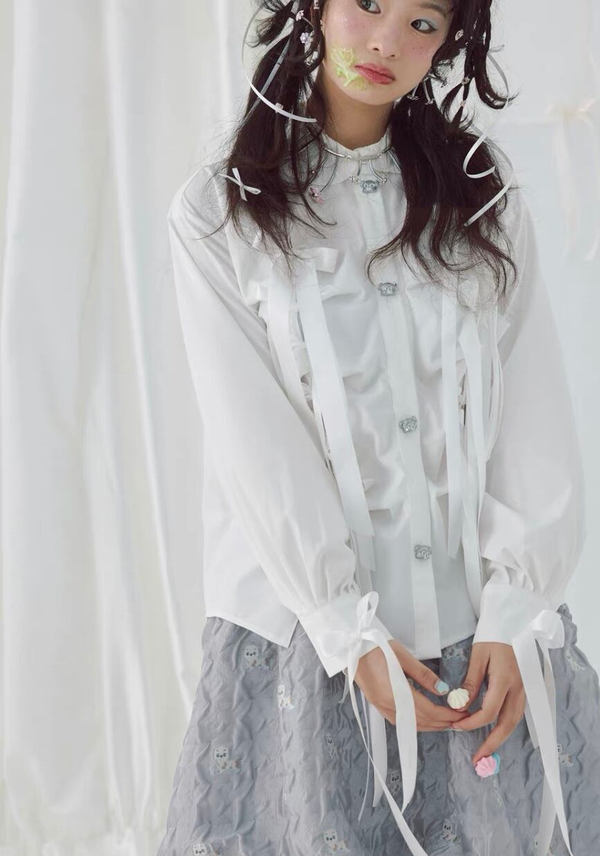 ブラウス リボン 可愛い 白 ホワイト シャツ ガーリー