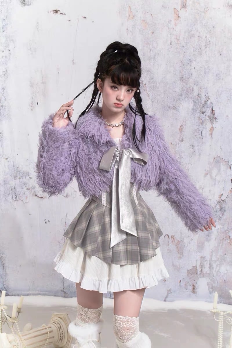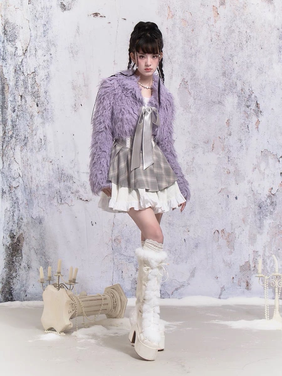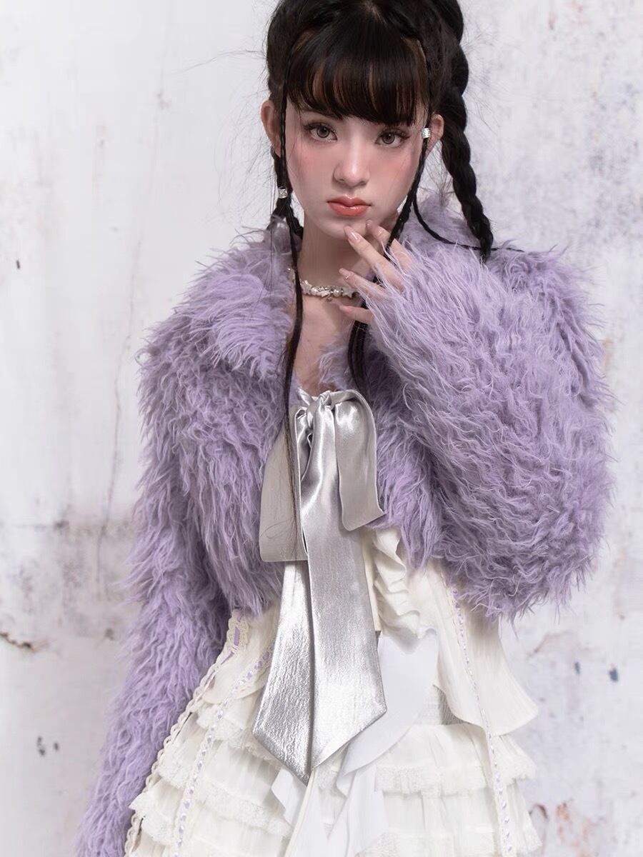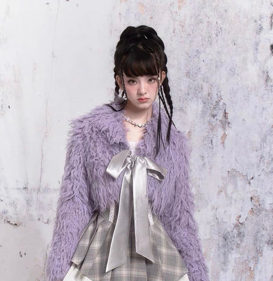 紫 パープル アウター ファー コート ガーリー 可愛い