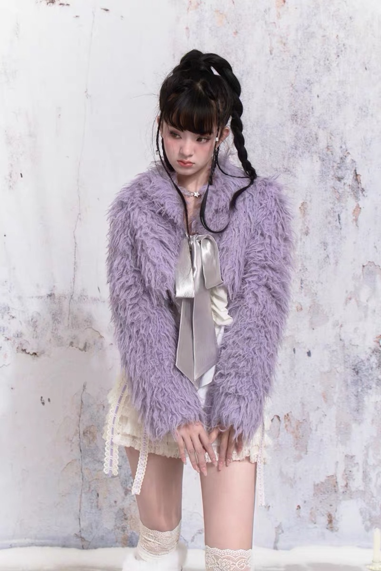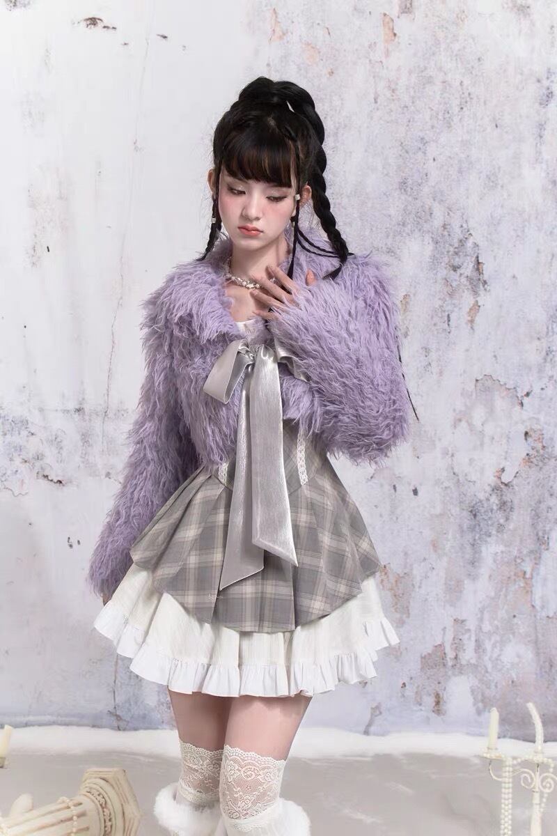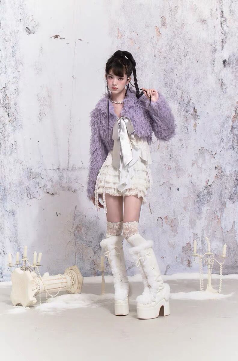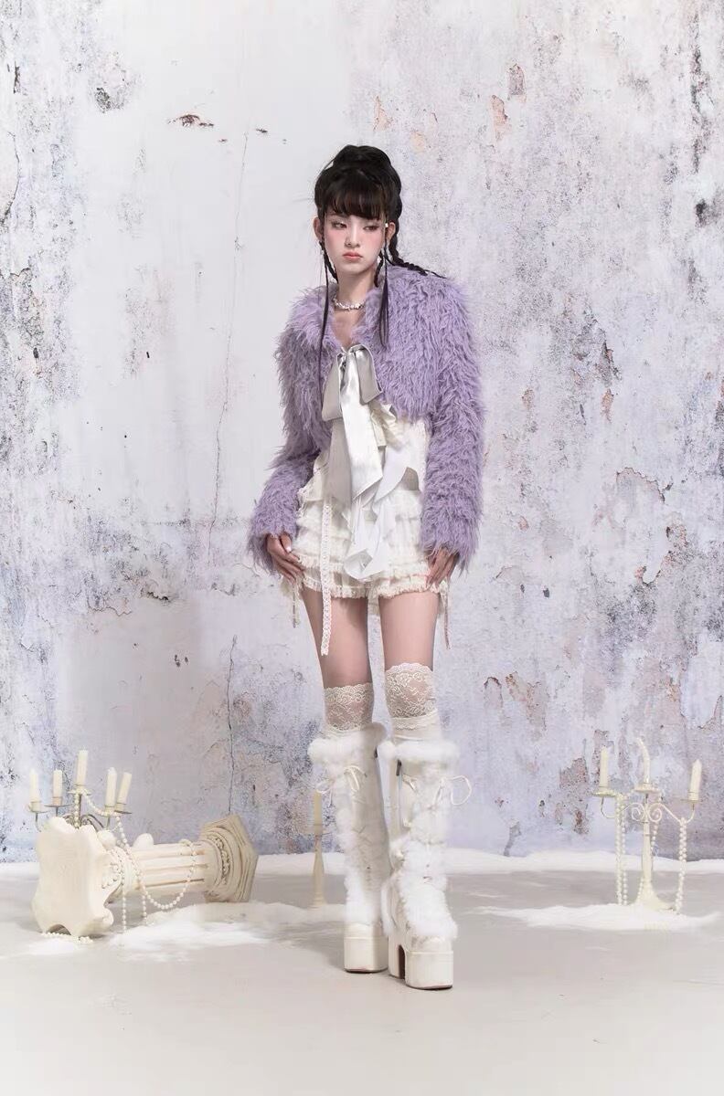 紫 パープル アウター ファー コート ガーリー 可愛い