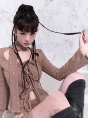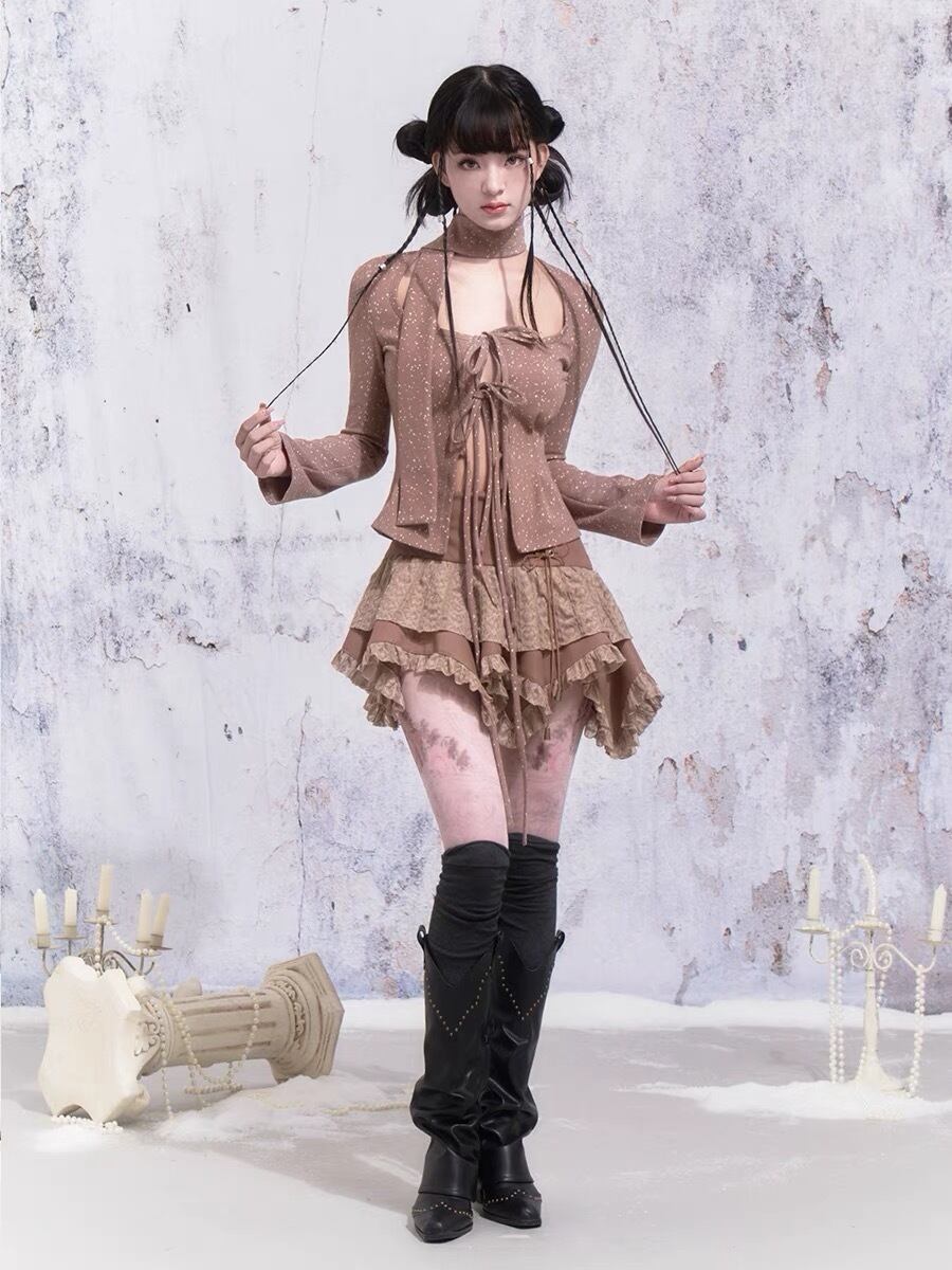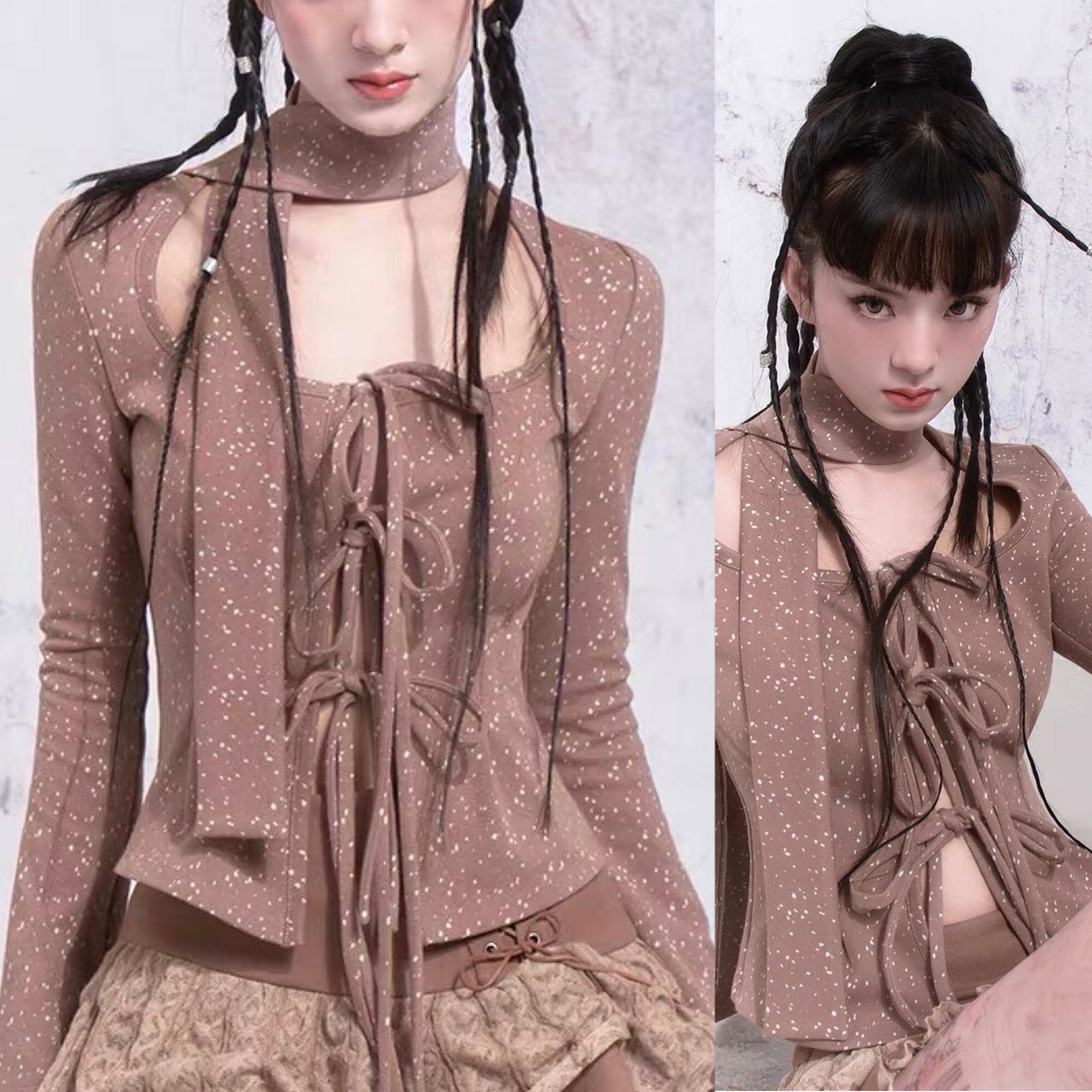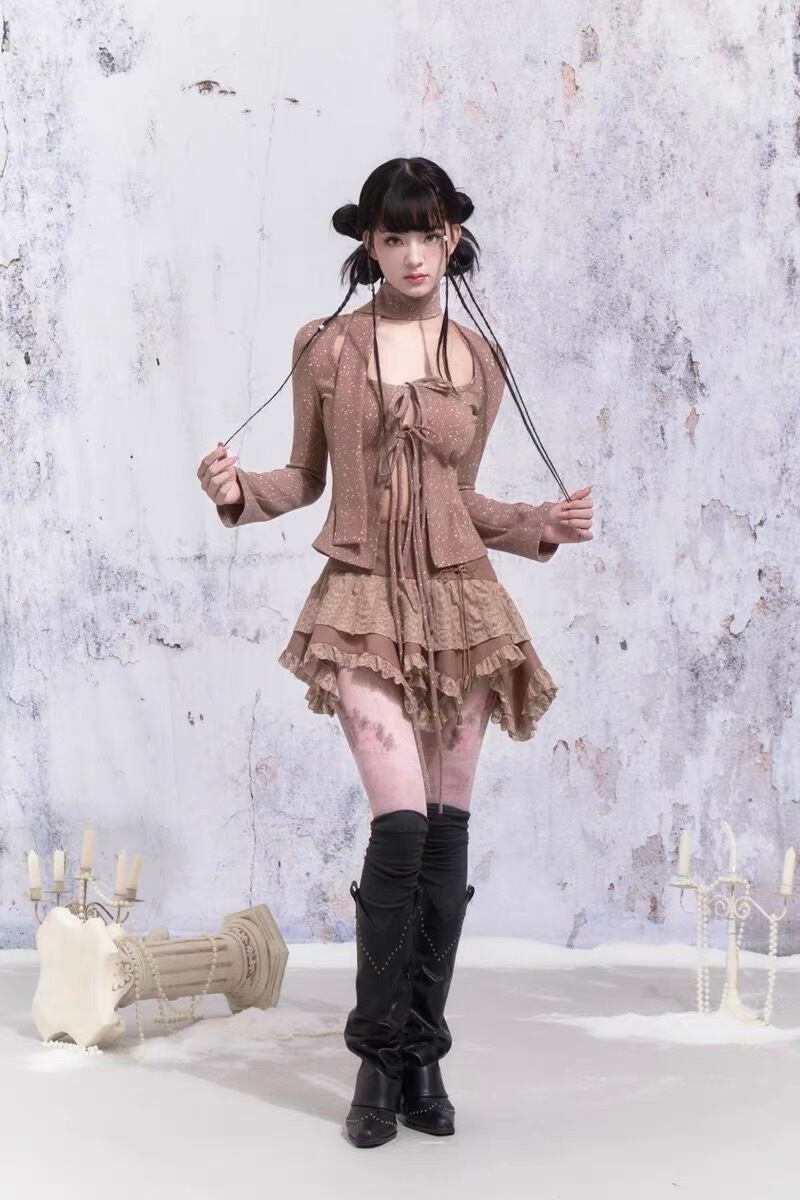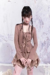ブラウス トップス 茶色 ベージュ リボン シャツ