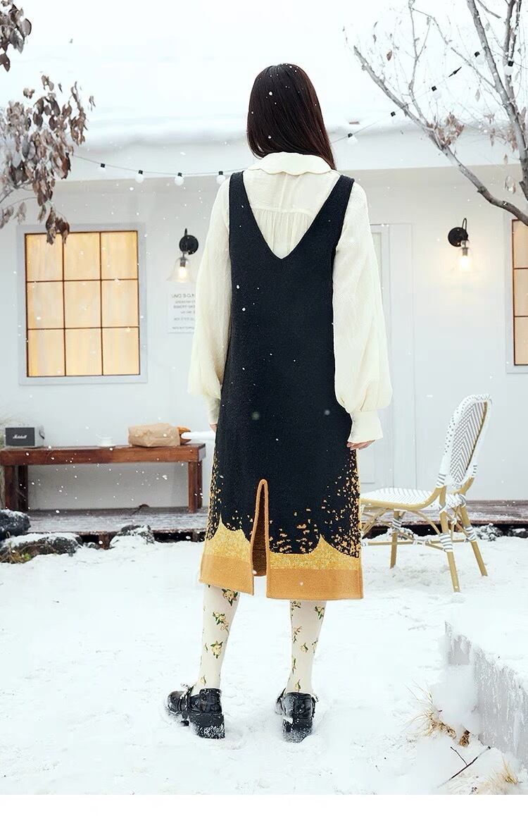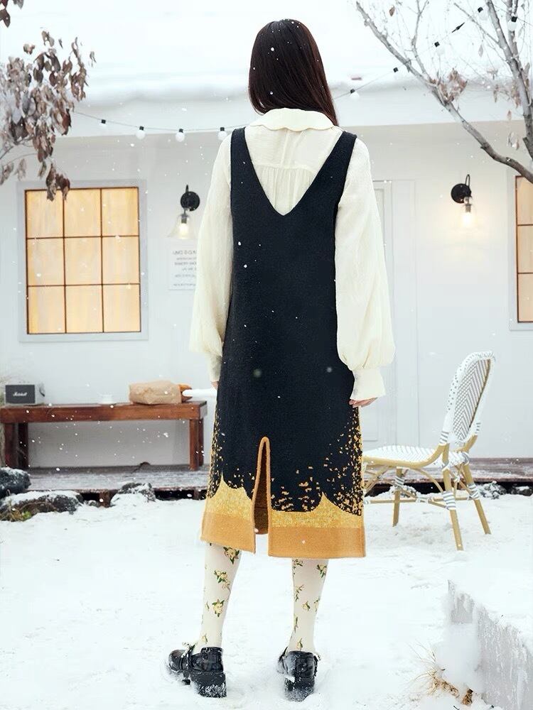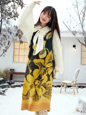 黄色 黒 ニット ワンピース 花柄 フラワー