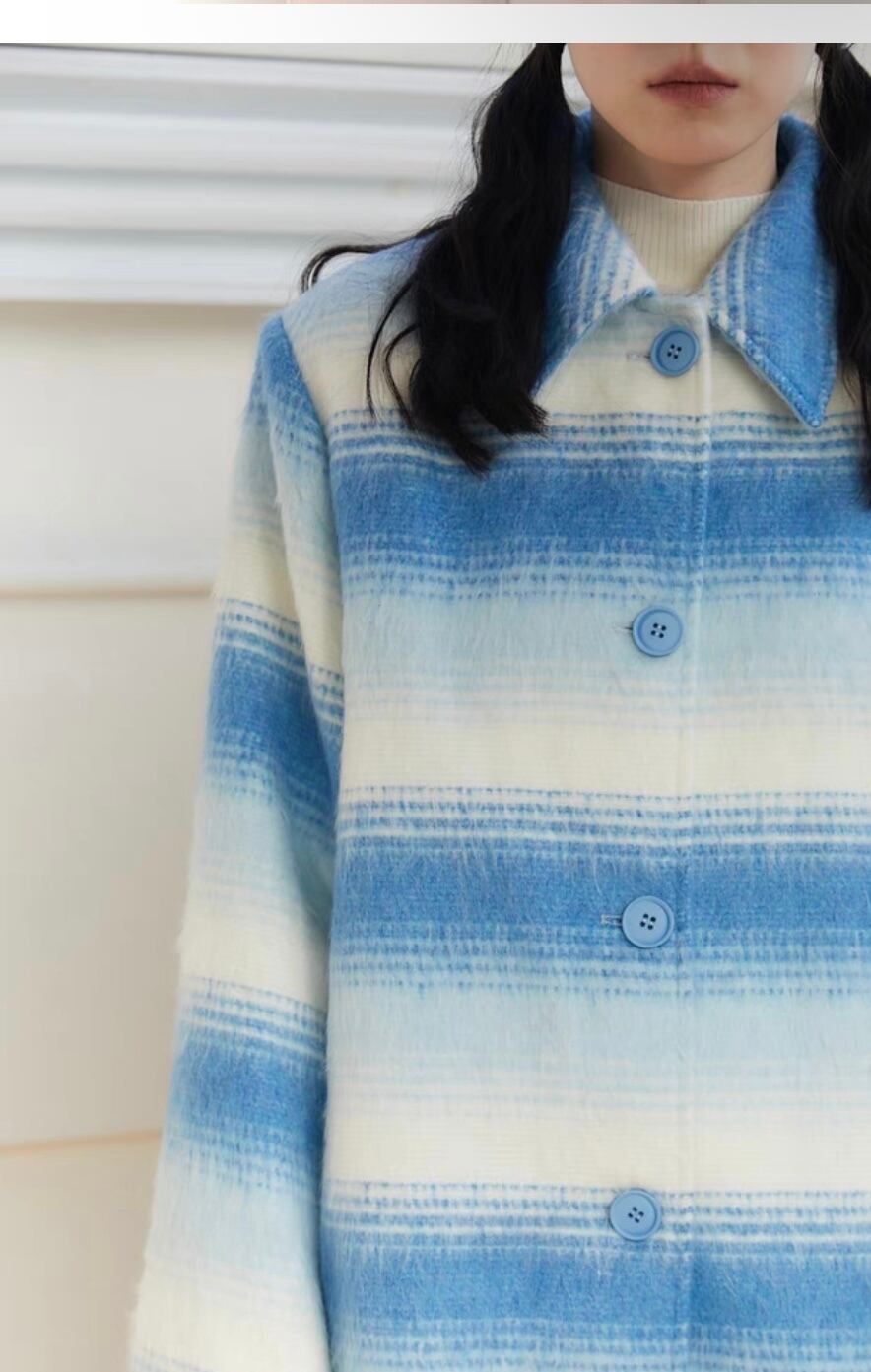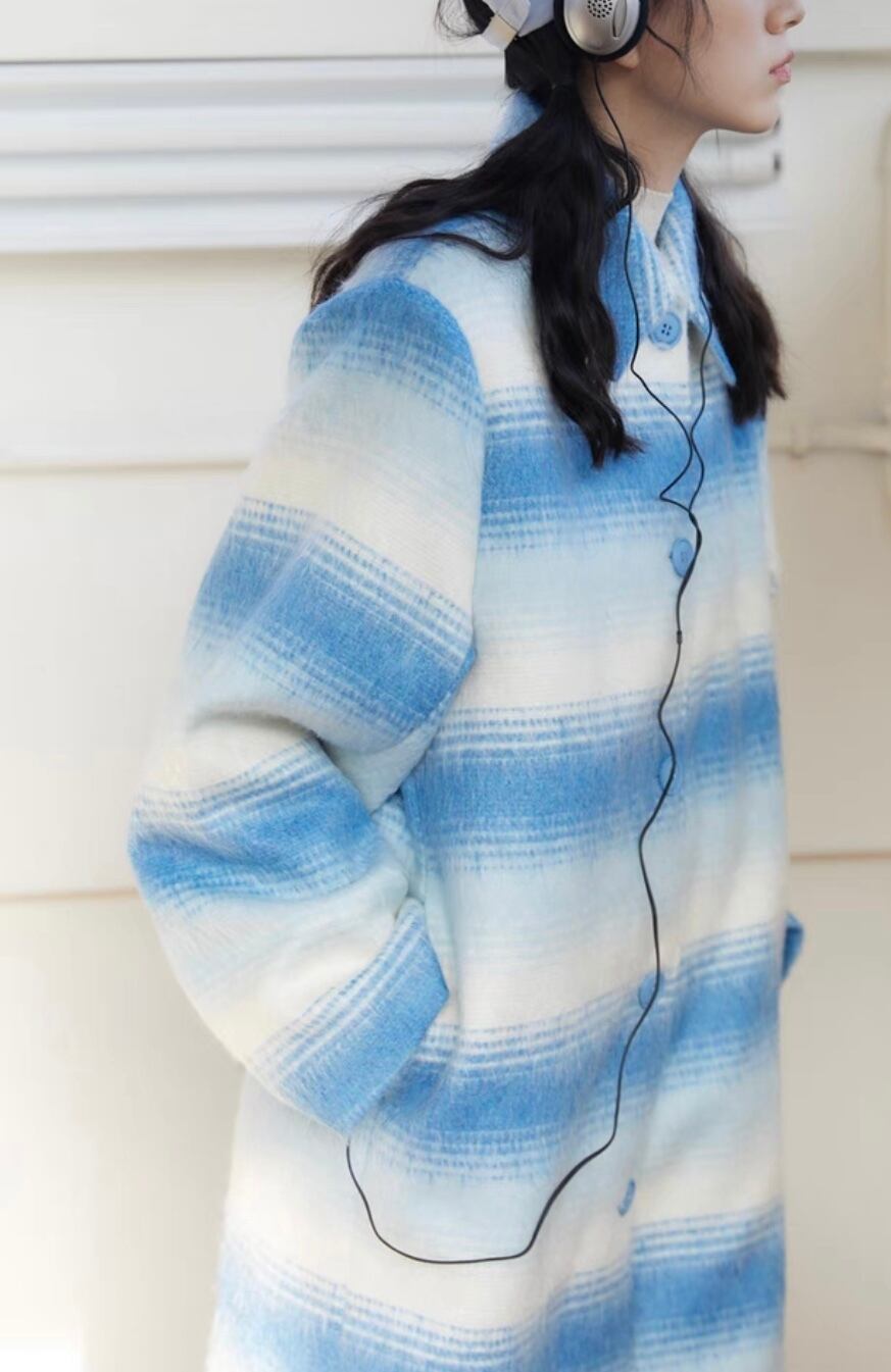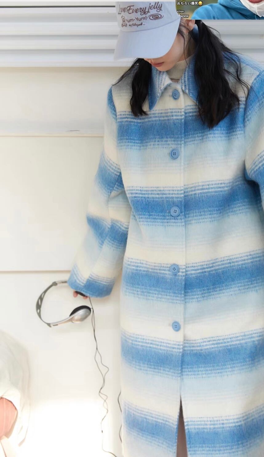 水色 カジュアル ボーダー グラデーション コート