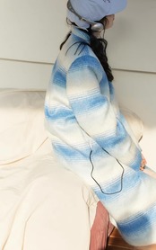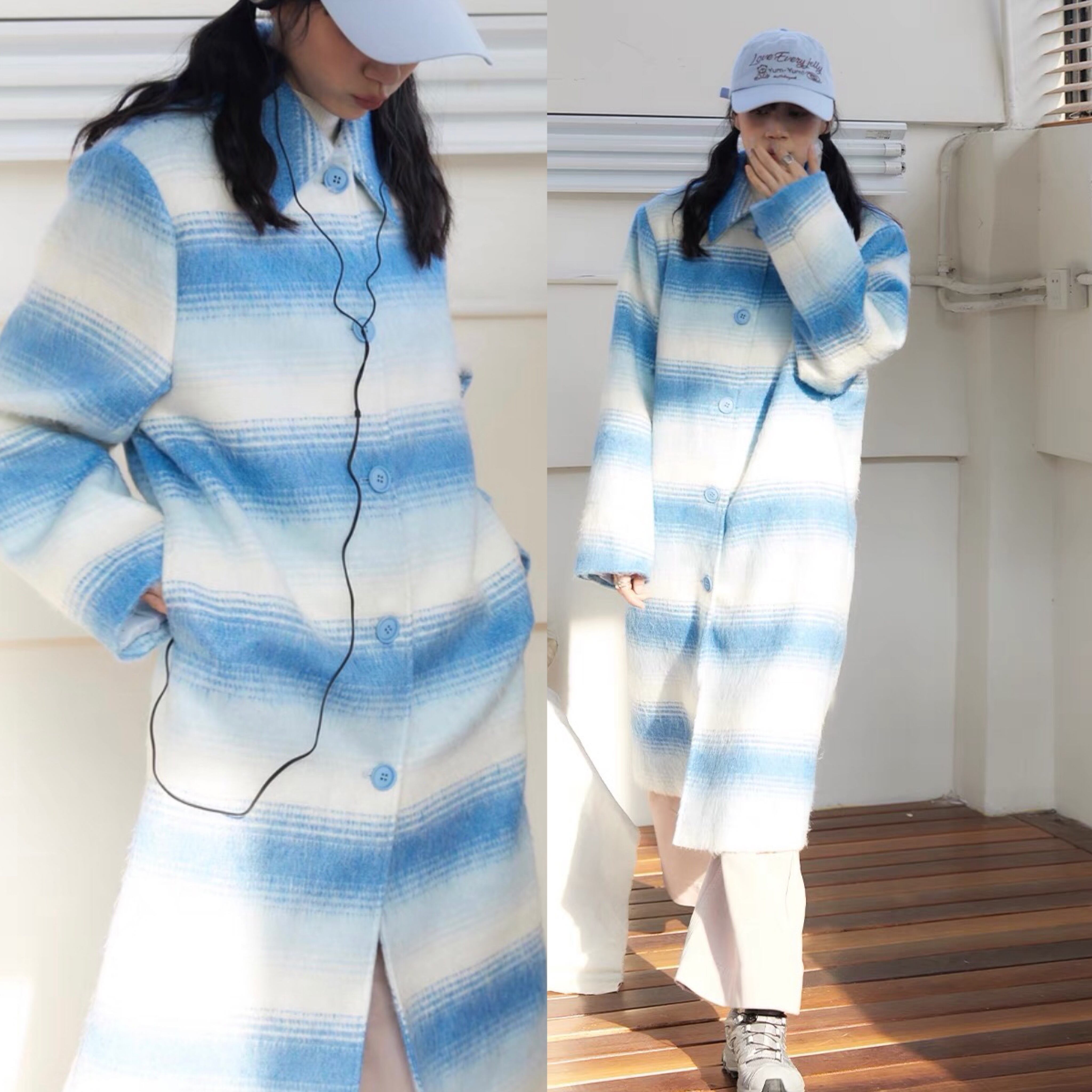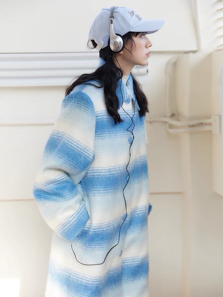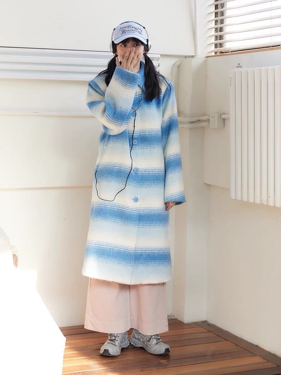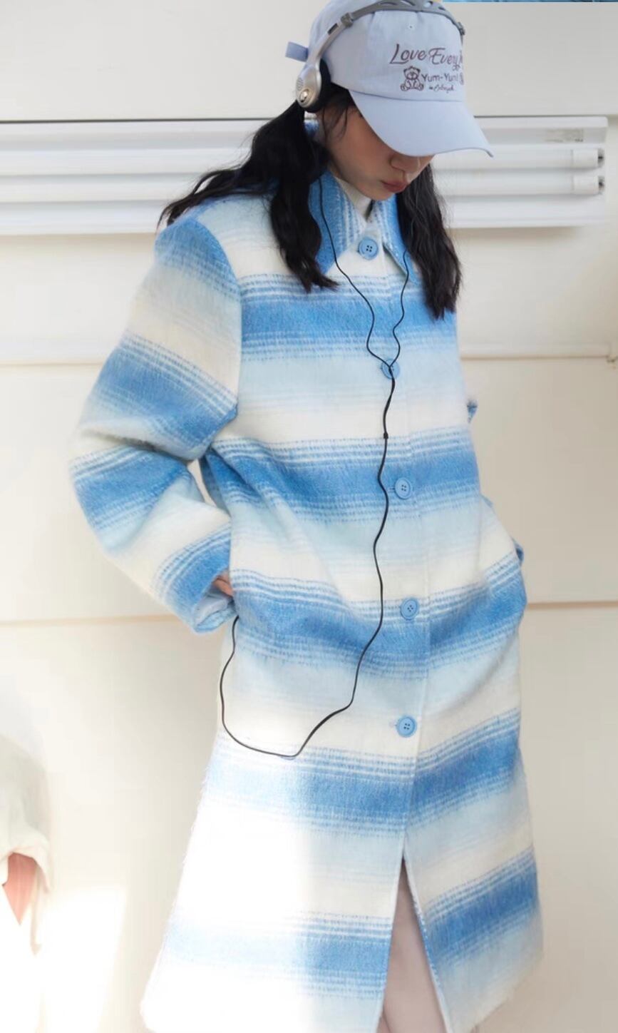 水色 カジュアル ボーダー グラデーション コート