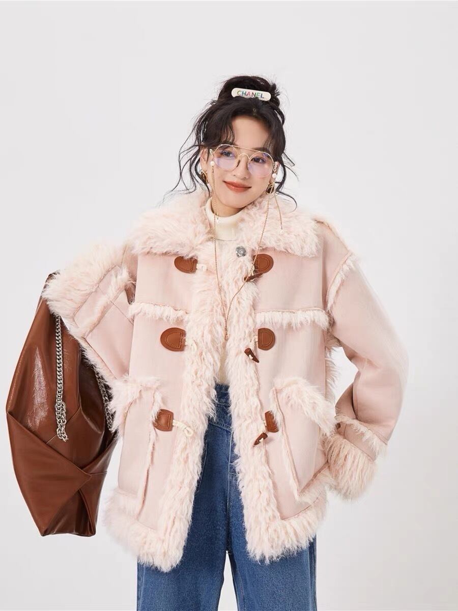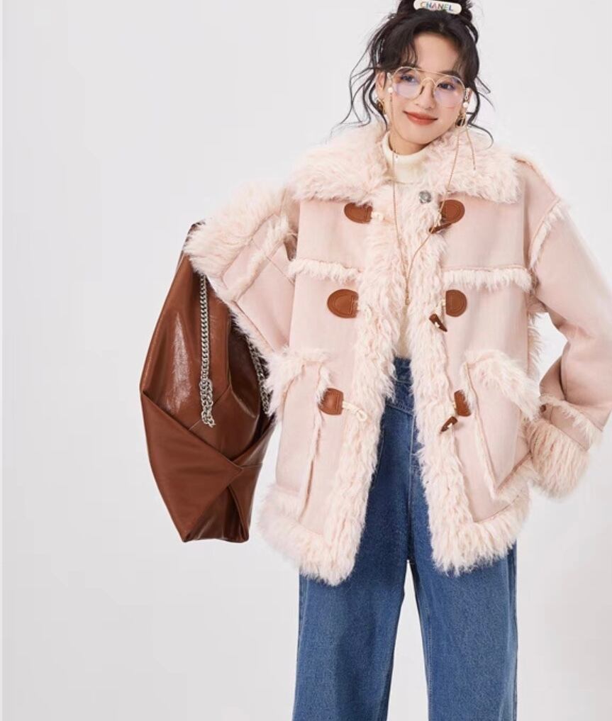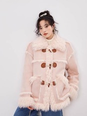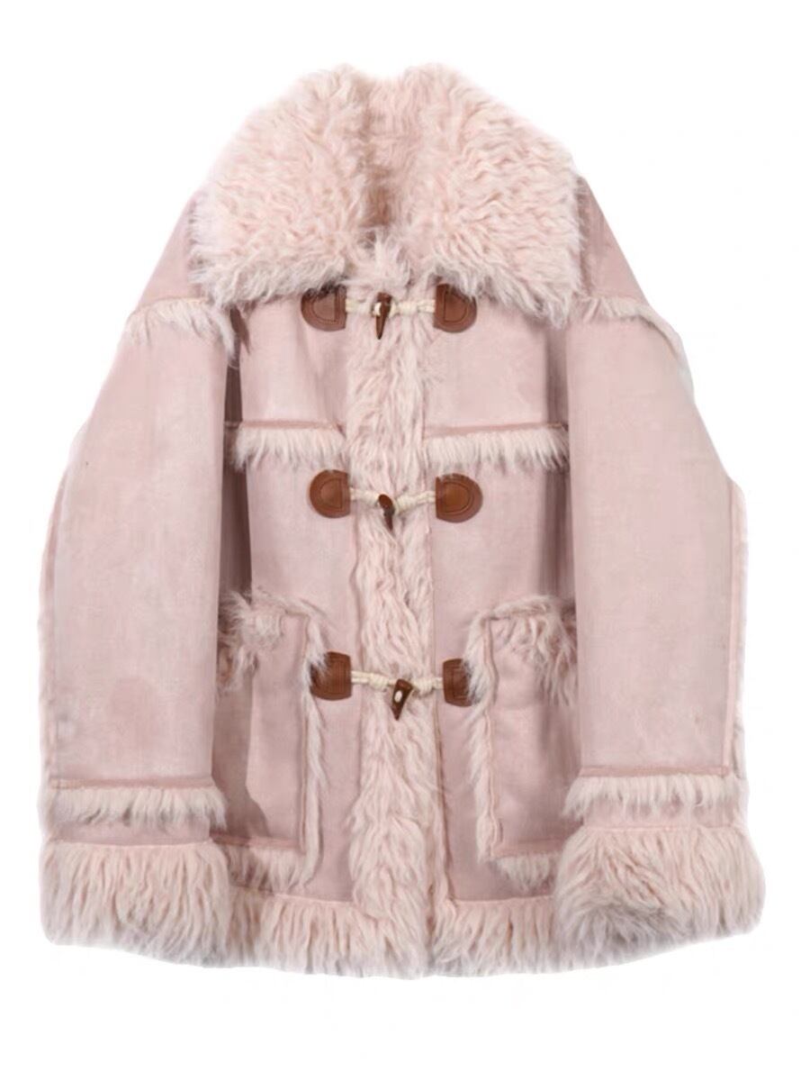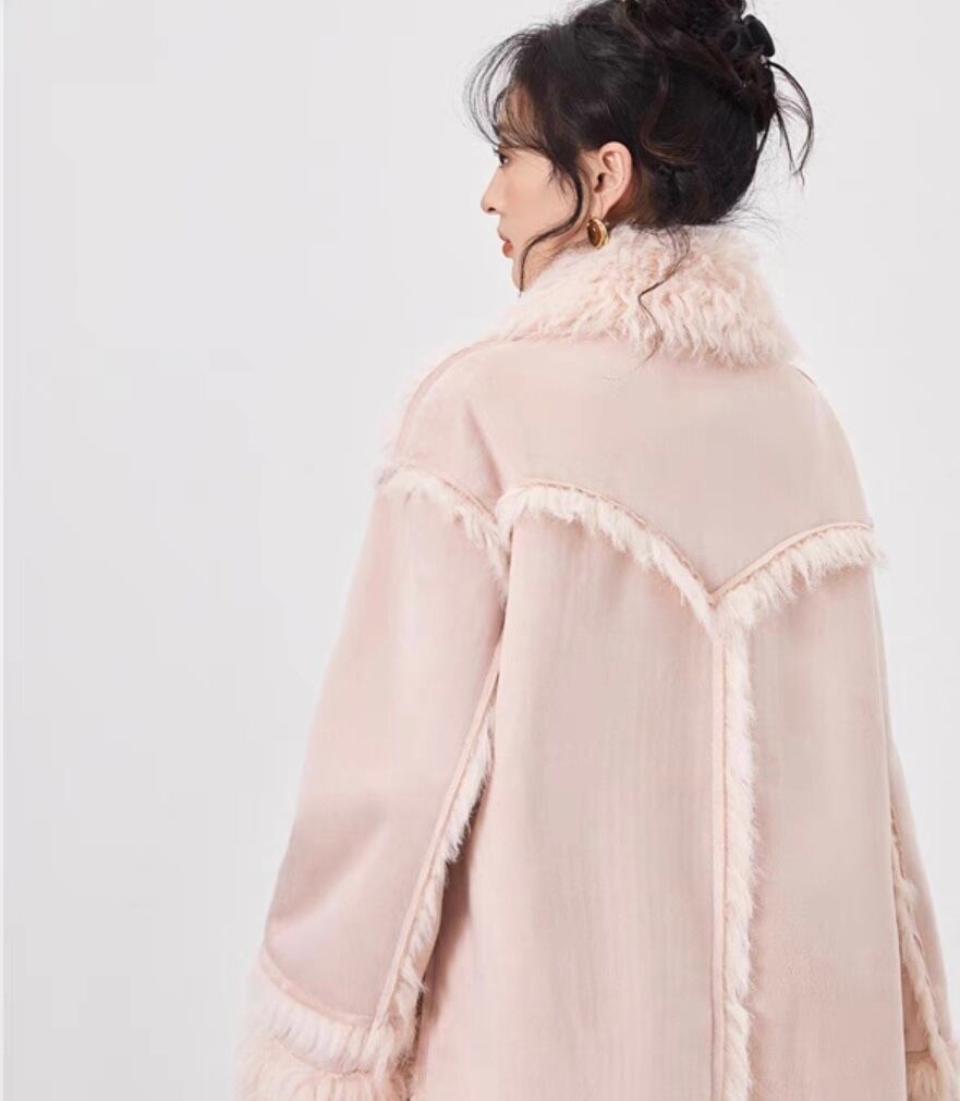 アウター コート ファー ジャケット ピンク ベージュ リボン