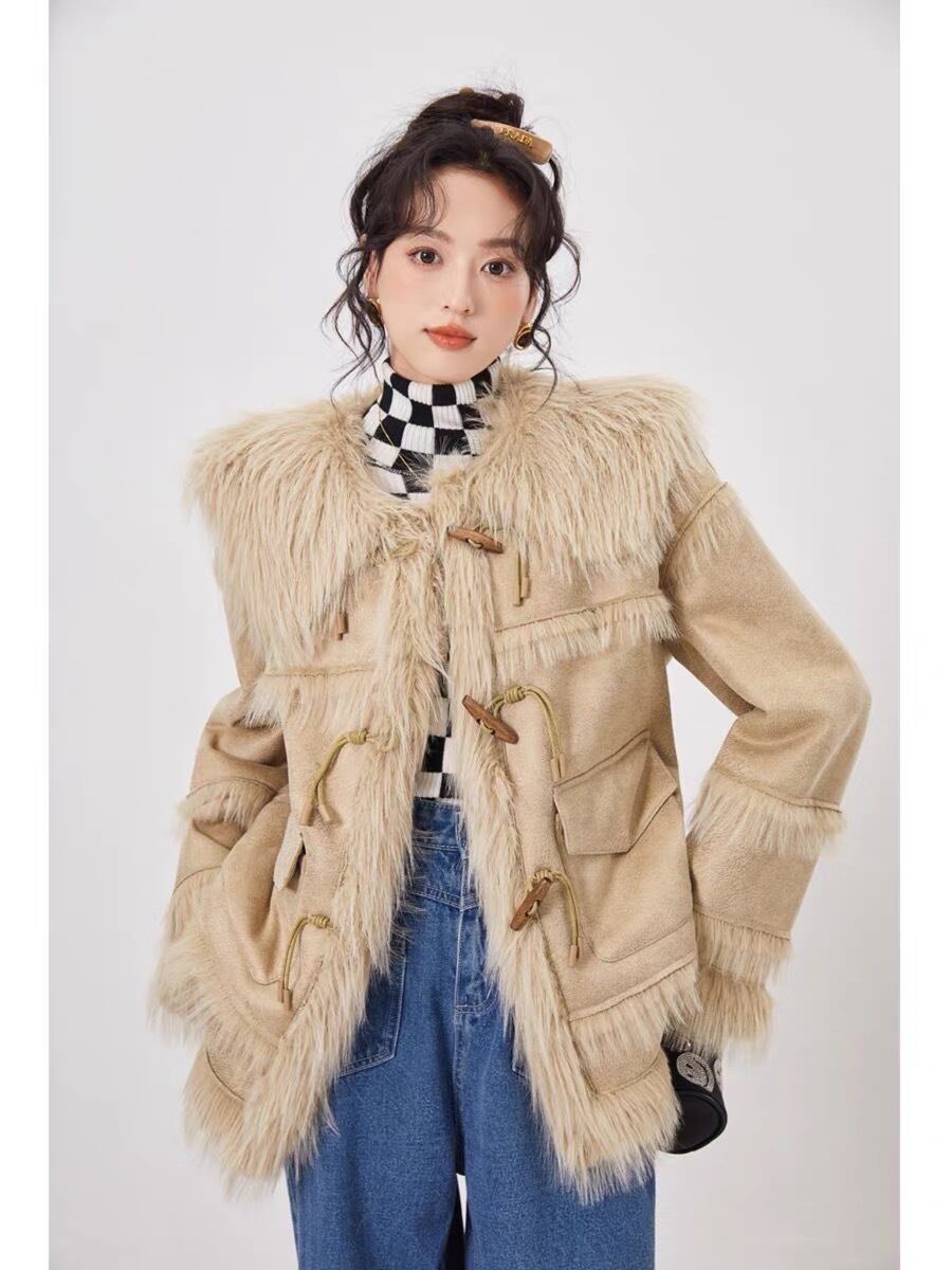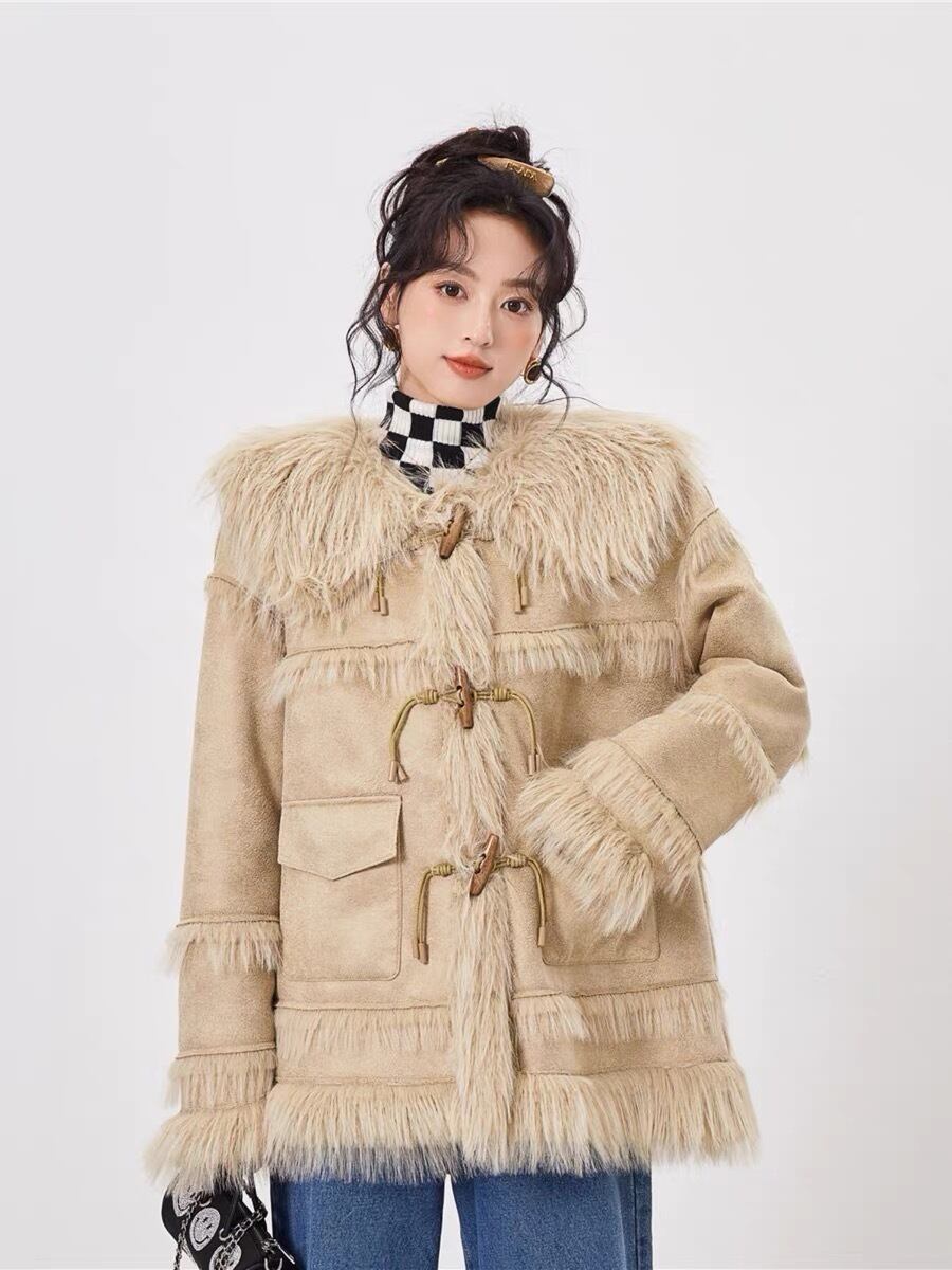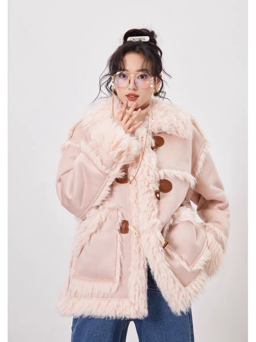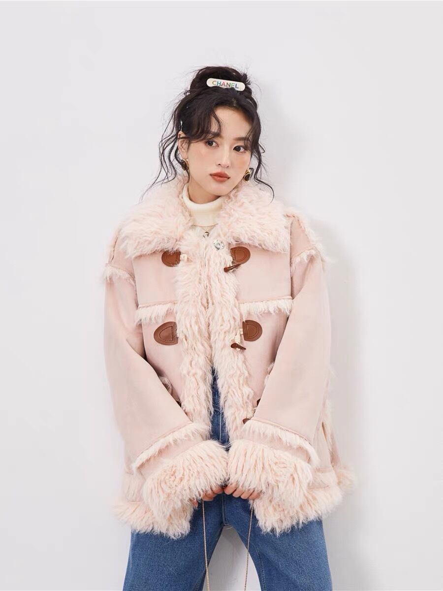 アウター コート ファー ジャケット ピンク ベージュ リボン