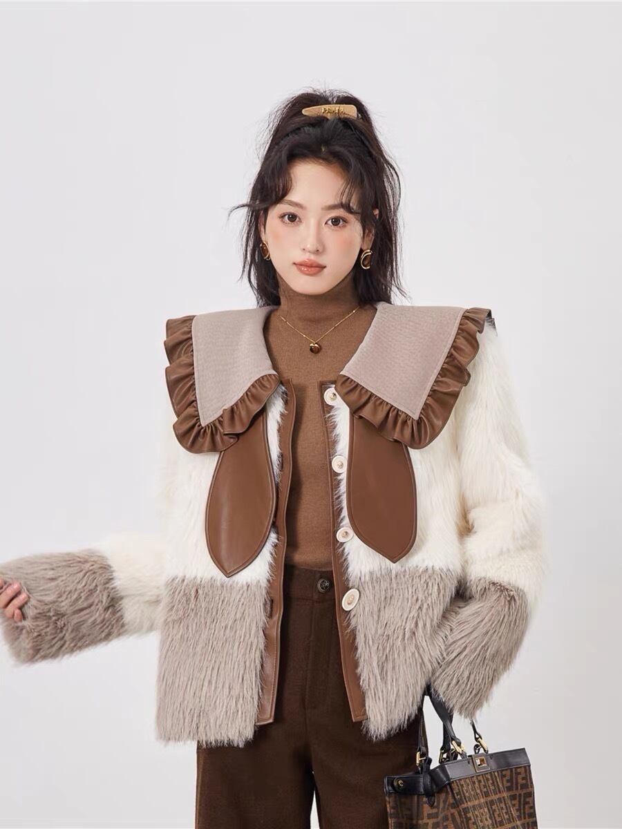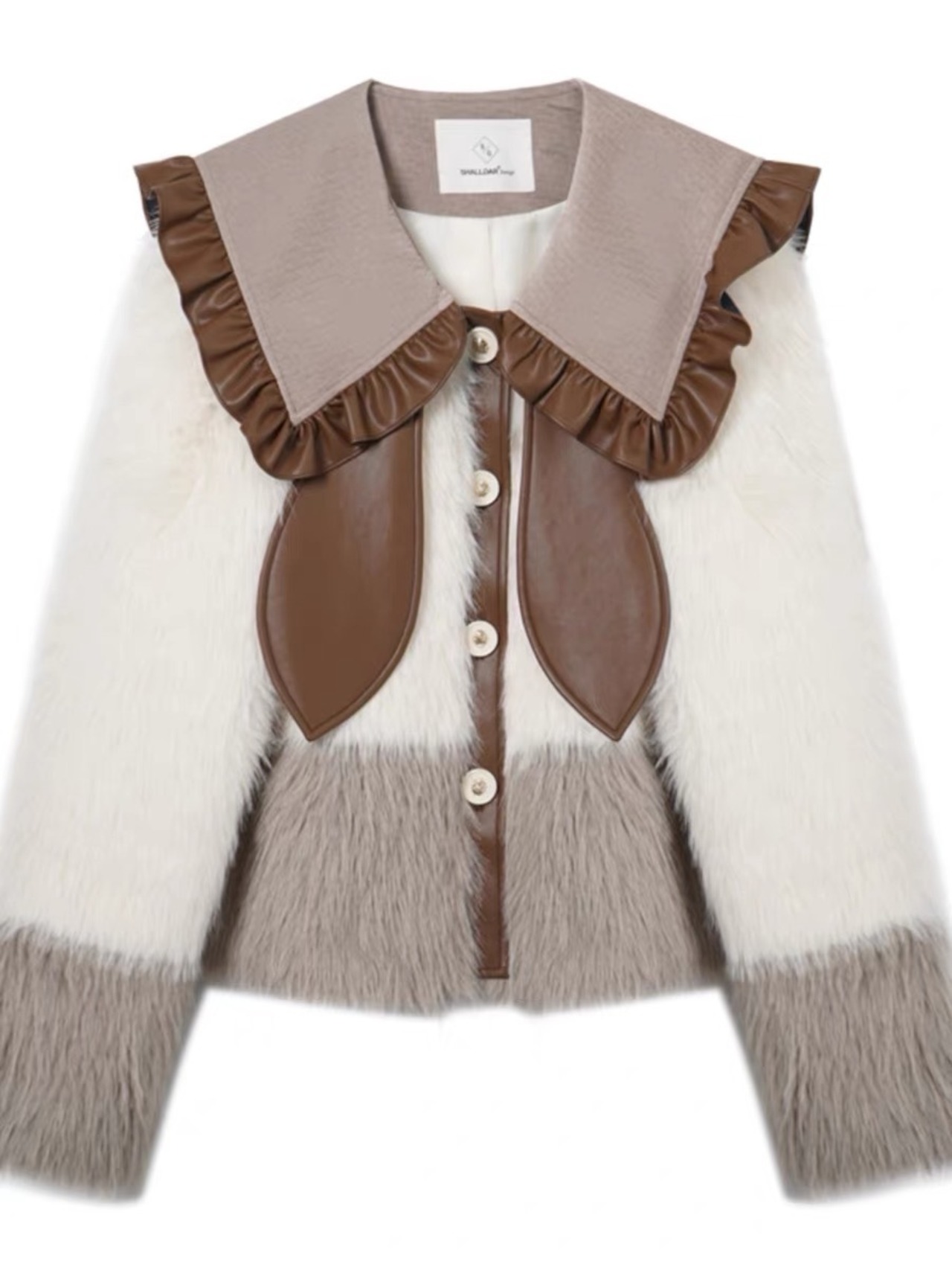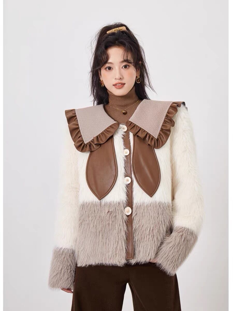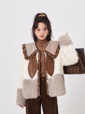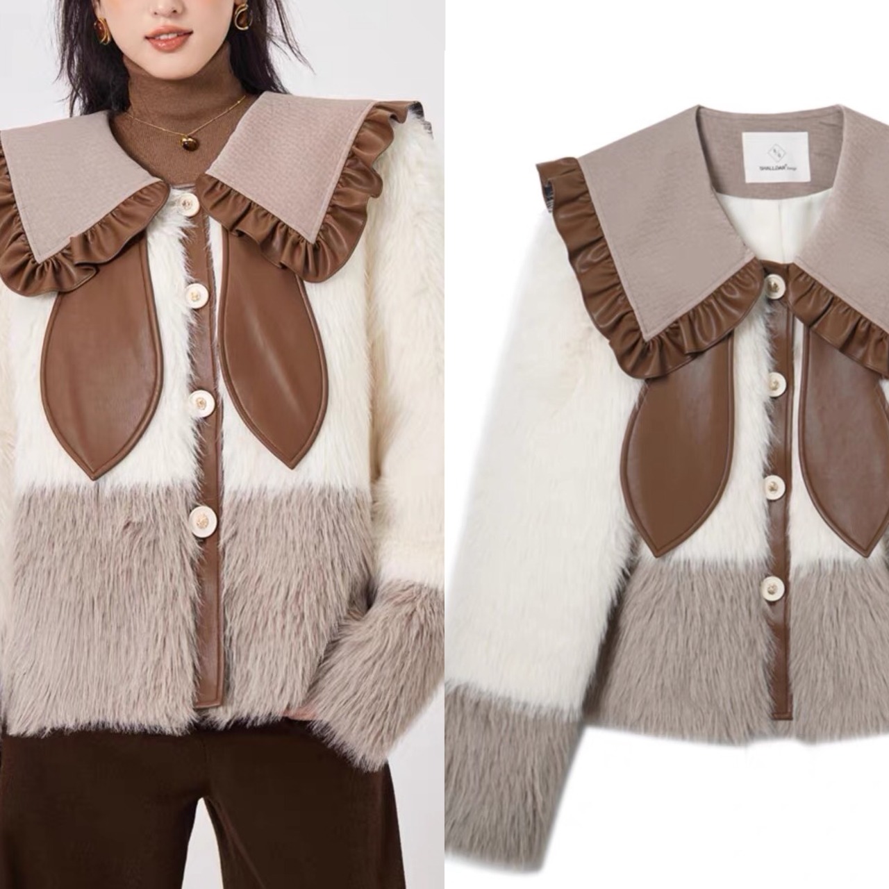 茶色 リボン うさぎ えり グラデーション 襟 ベージュ コート アウター