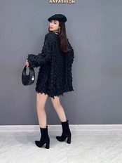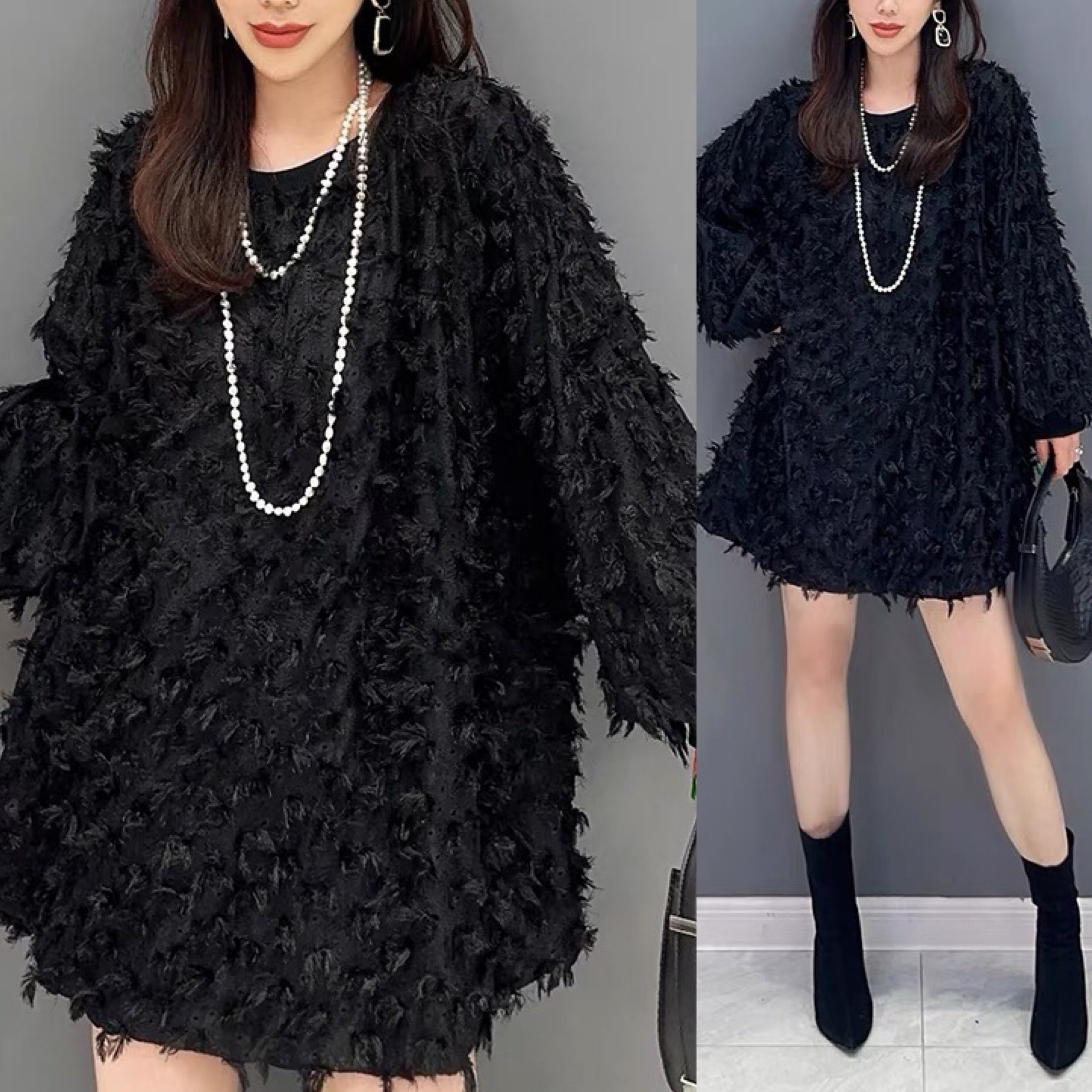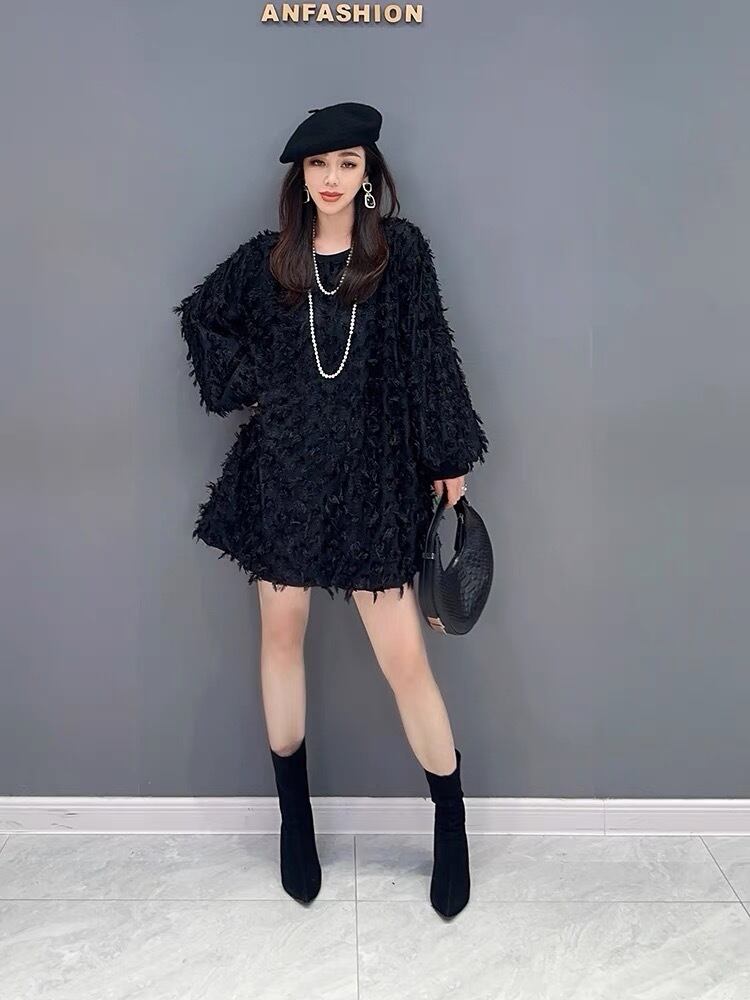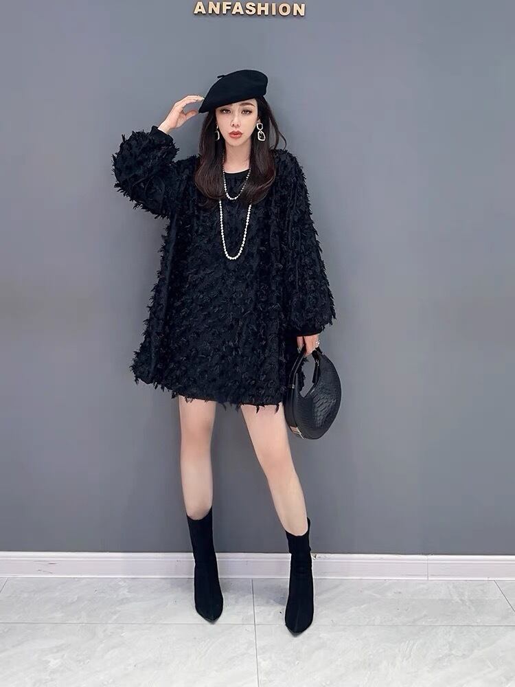 黒 セーター ワンピース ゆったり フラワー 花柄