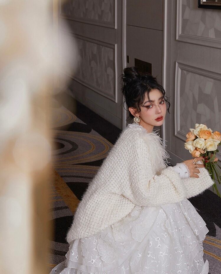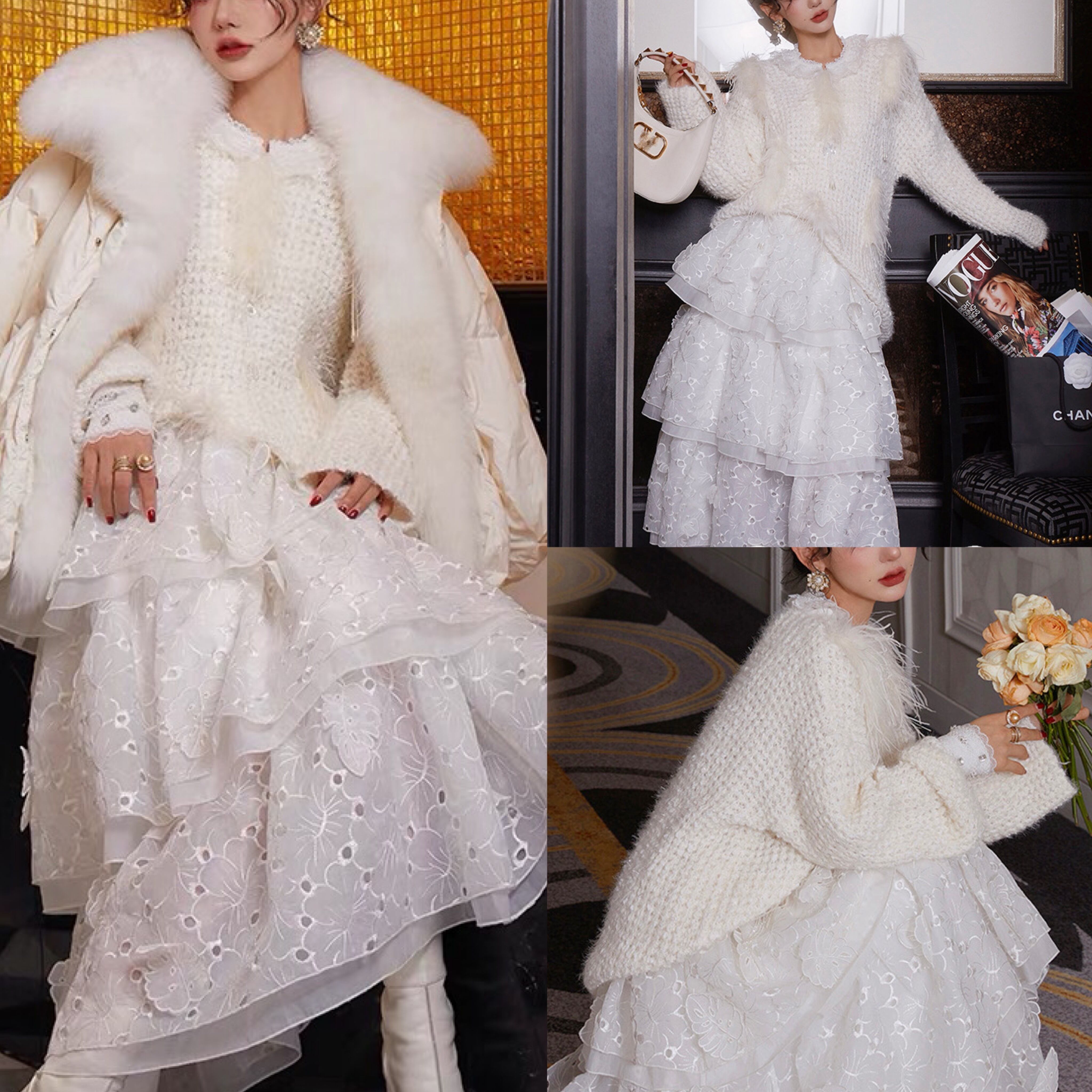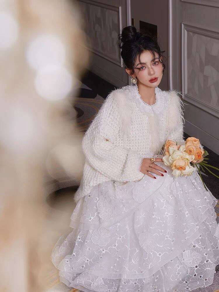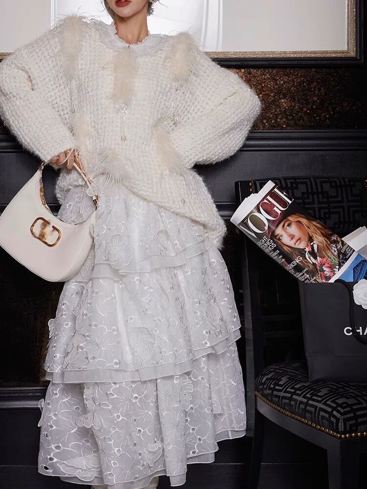 白 ホワイト セーター ニット ゆったり ガーリー カーディガン