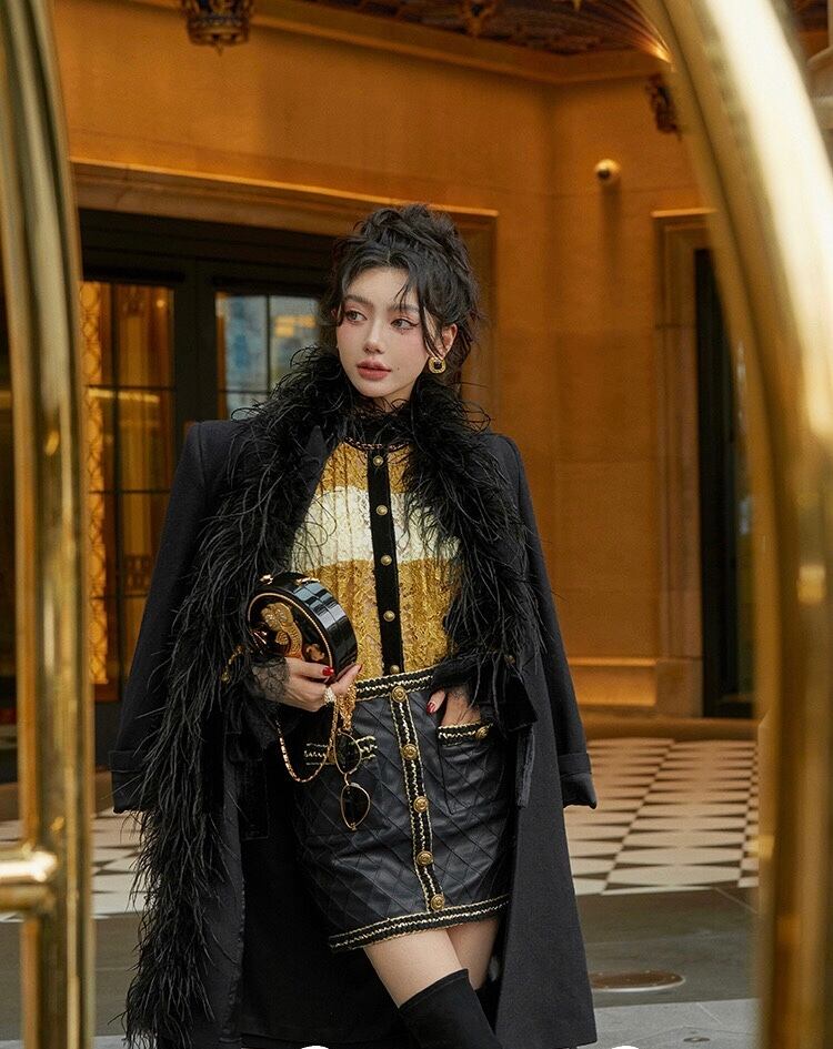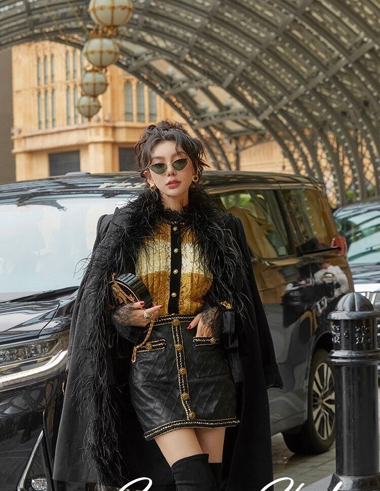 スカート 黒 ゴージャス ゴールド ボトムス かっこいい