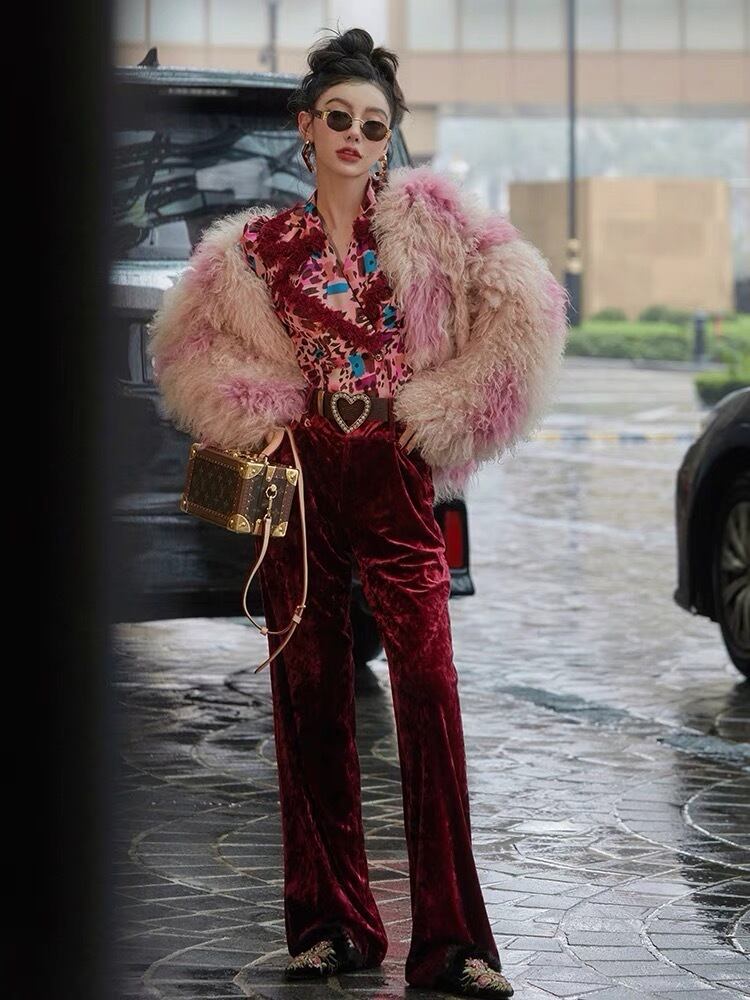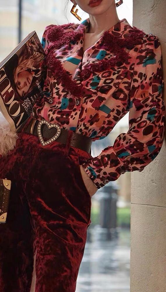 ピンク ブラウス レオパード 赤 ガーリー トップス