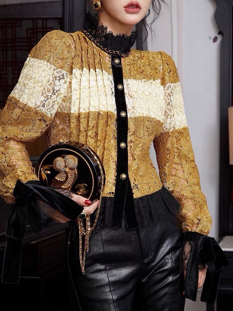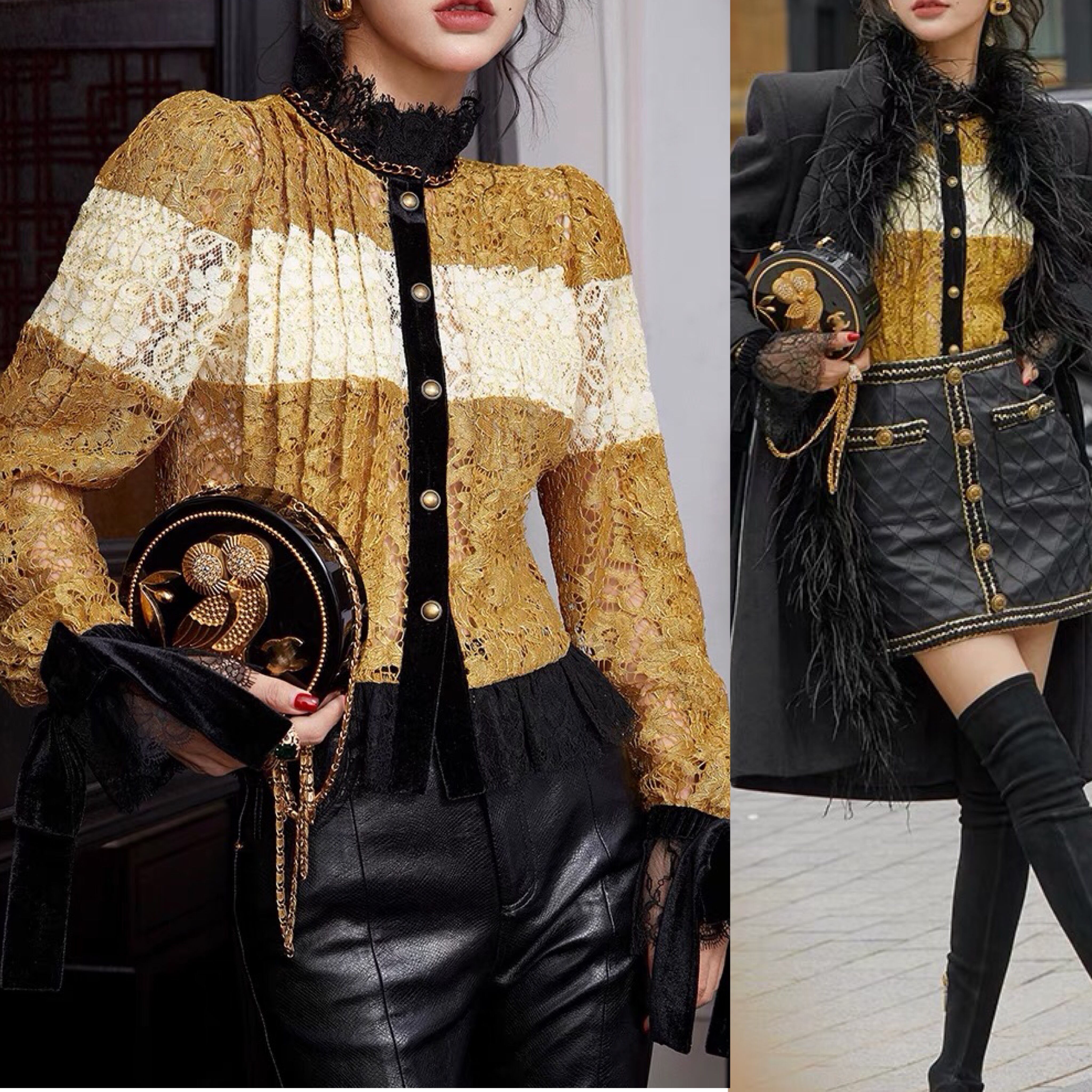 ゴージャス ゴールド ブラウス シャツ トップス レース