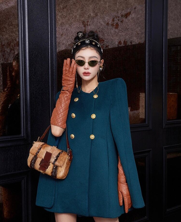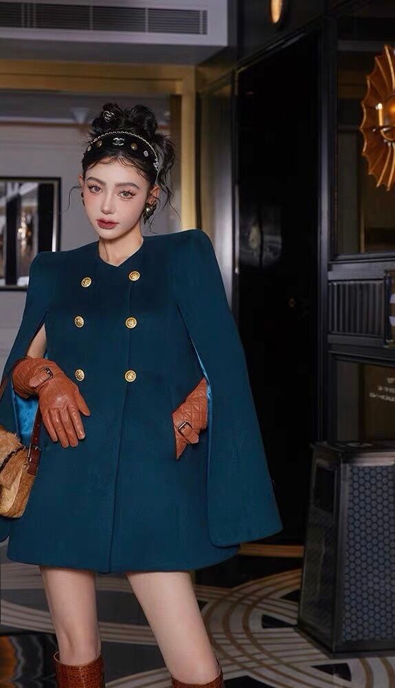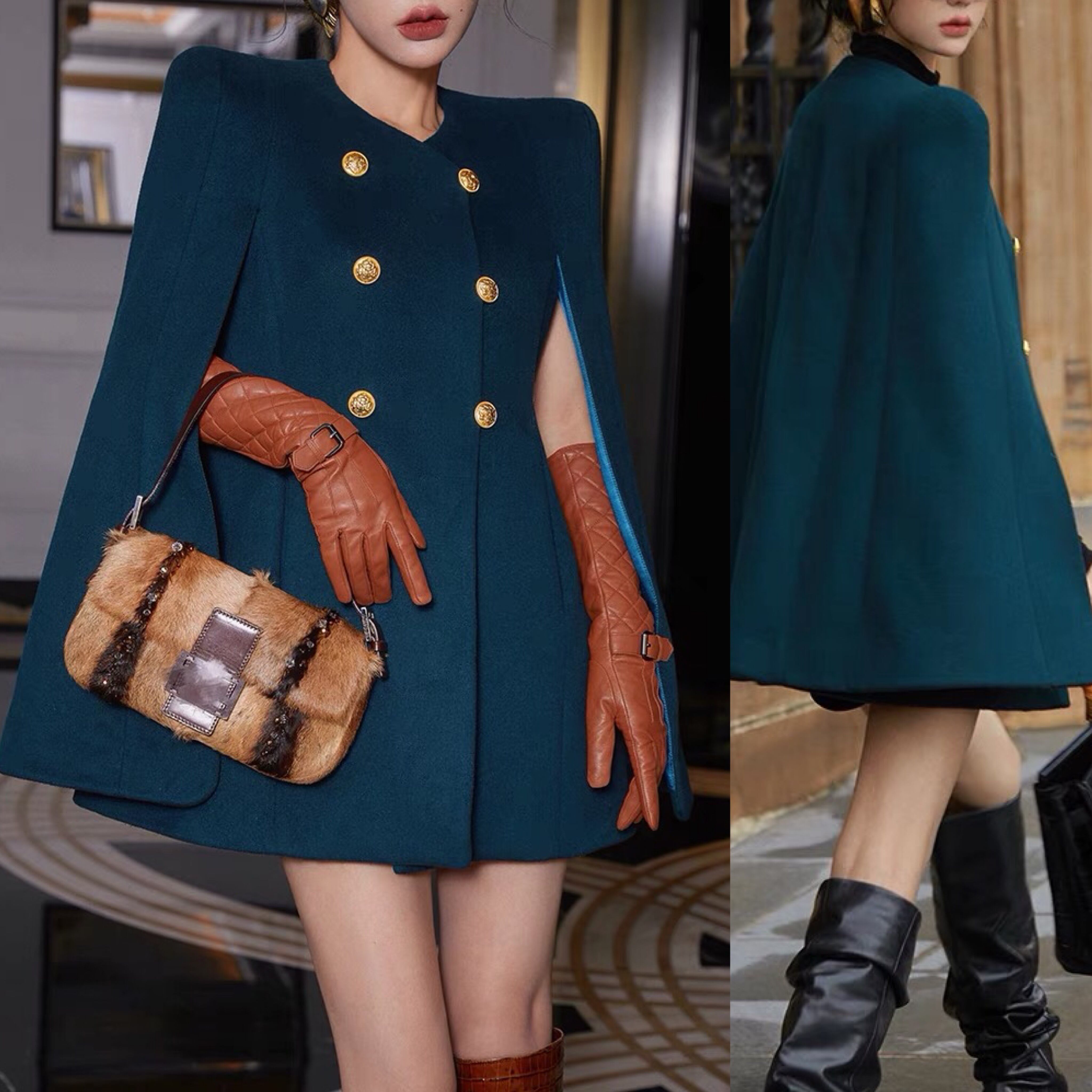 ウール マント アウター 緑 青 ブルー コート ジャケット