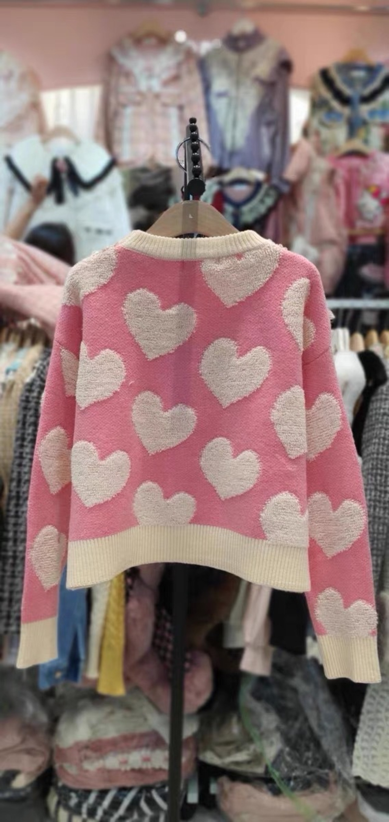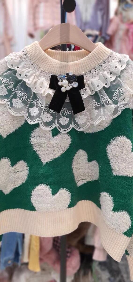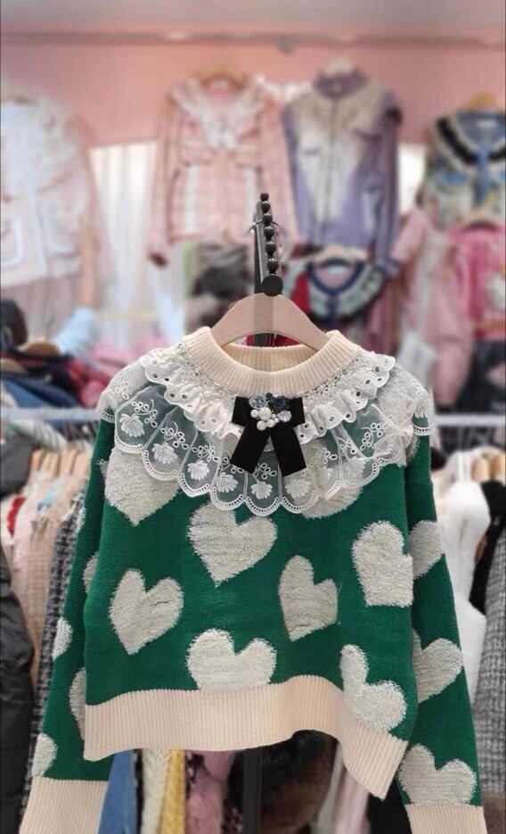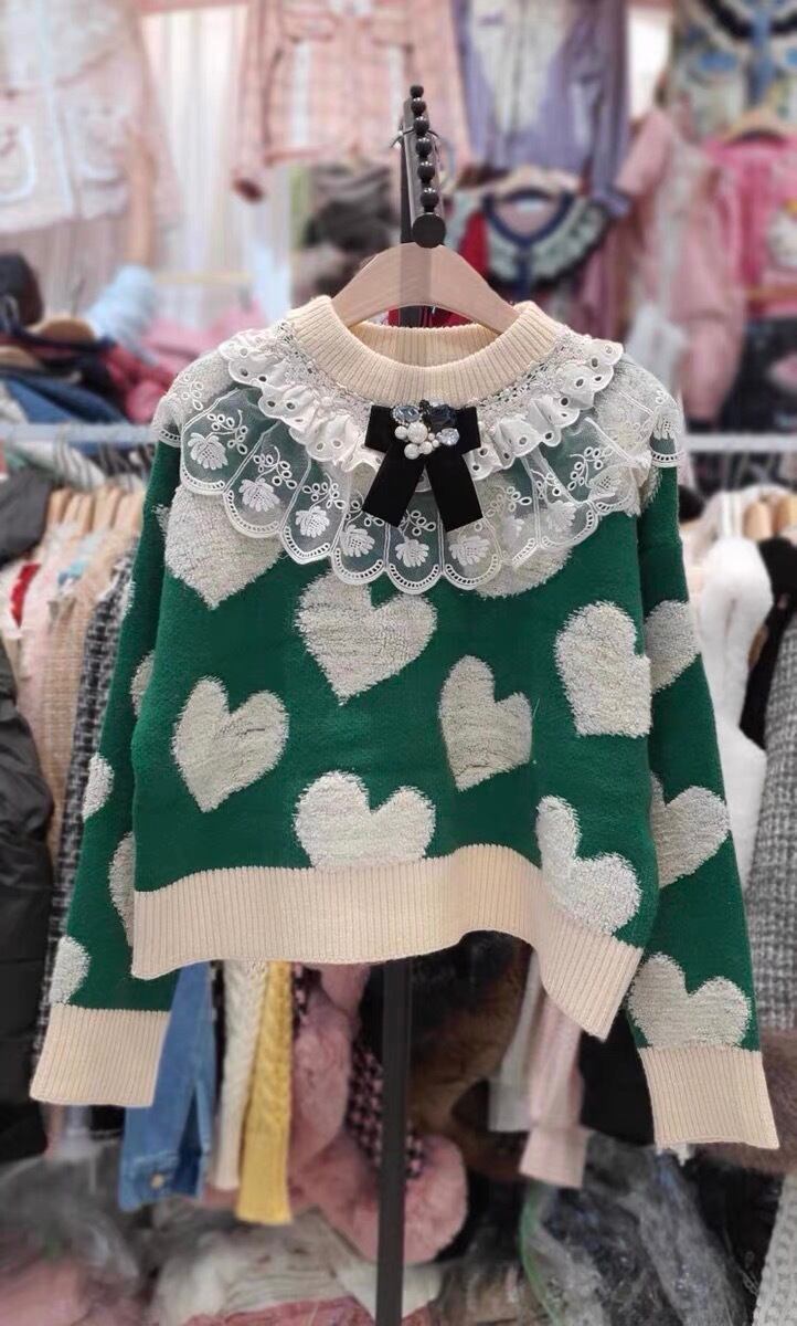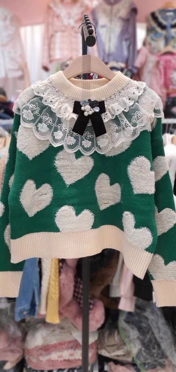 セーター 緑 ハート ピンク ガーリー 可愛い カーディガン