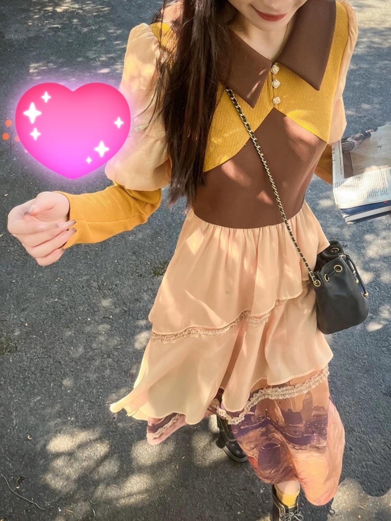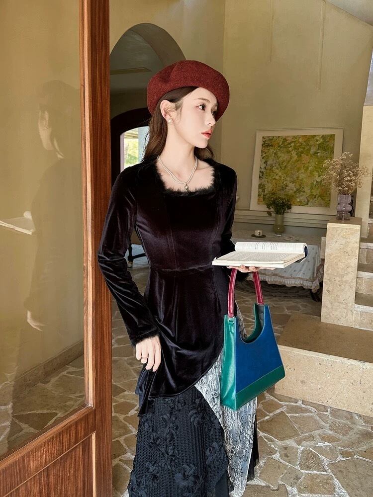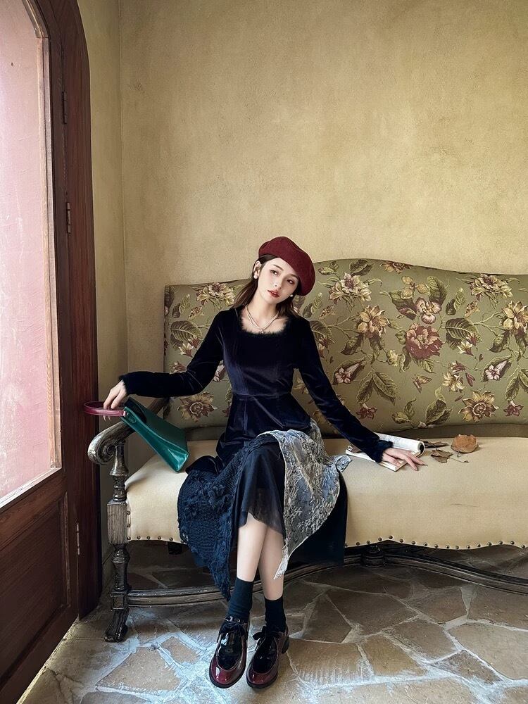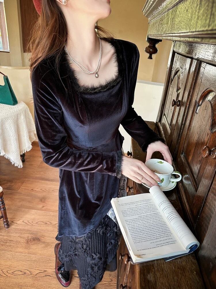 黒 ワンピース 黄色 ガーリー ブラウス ベルベット