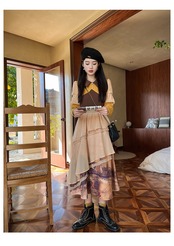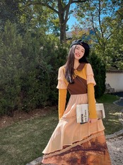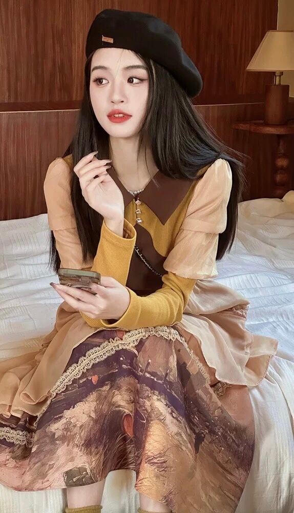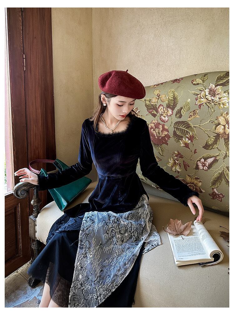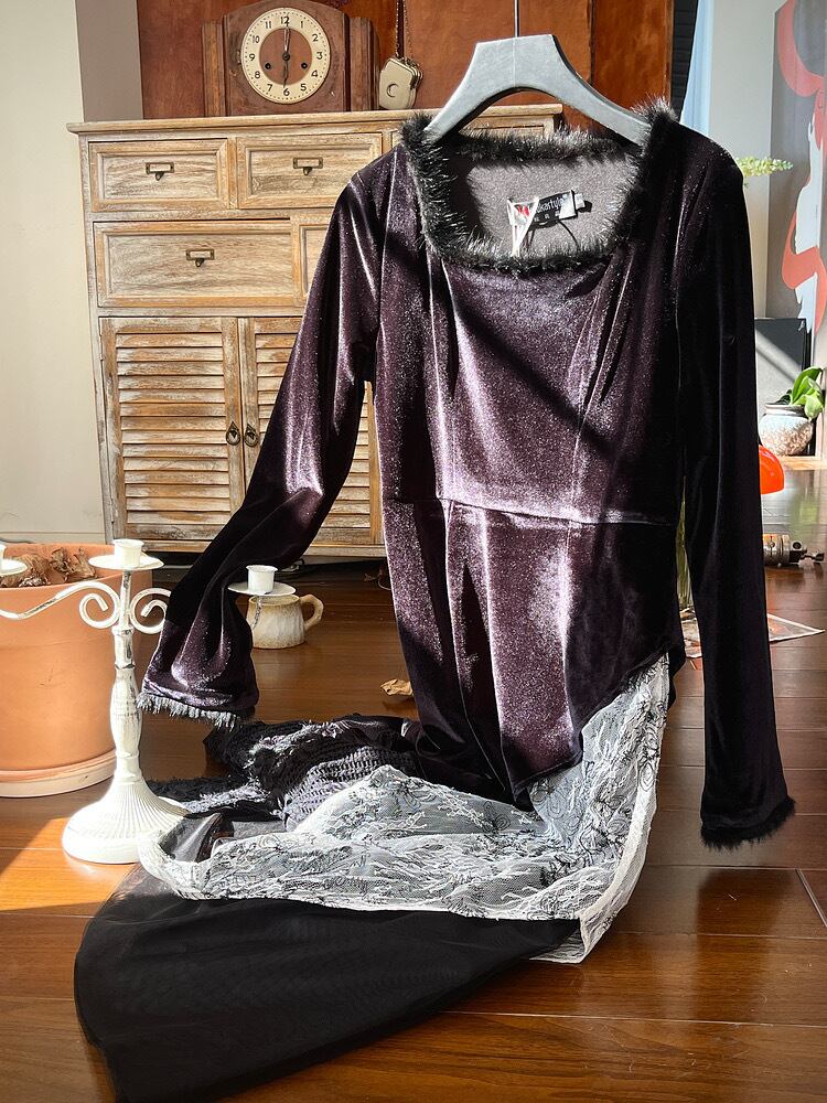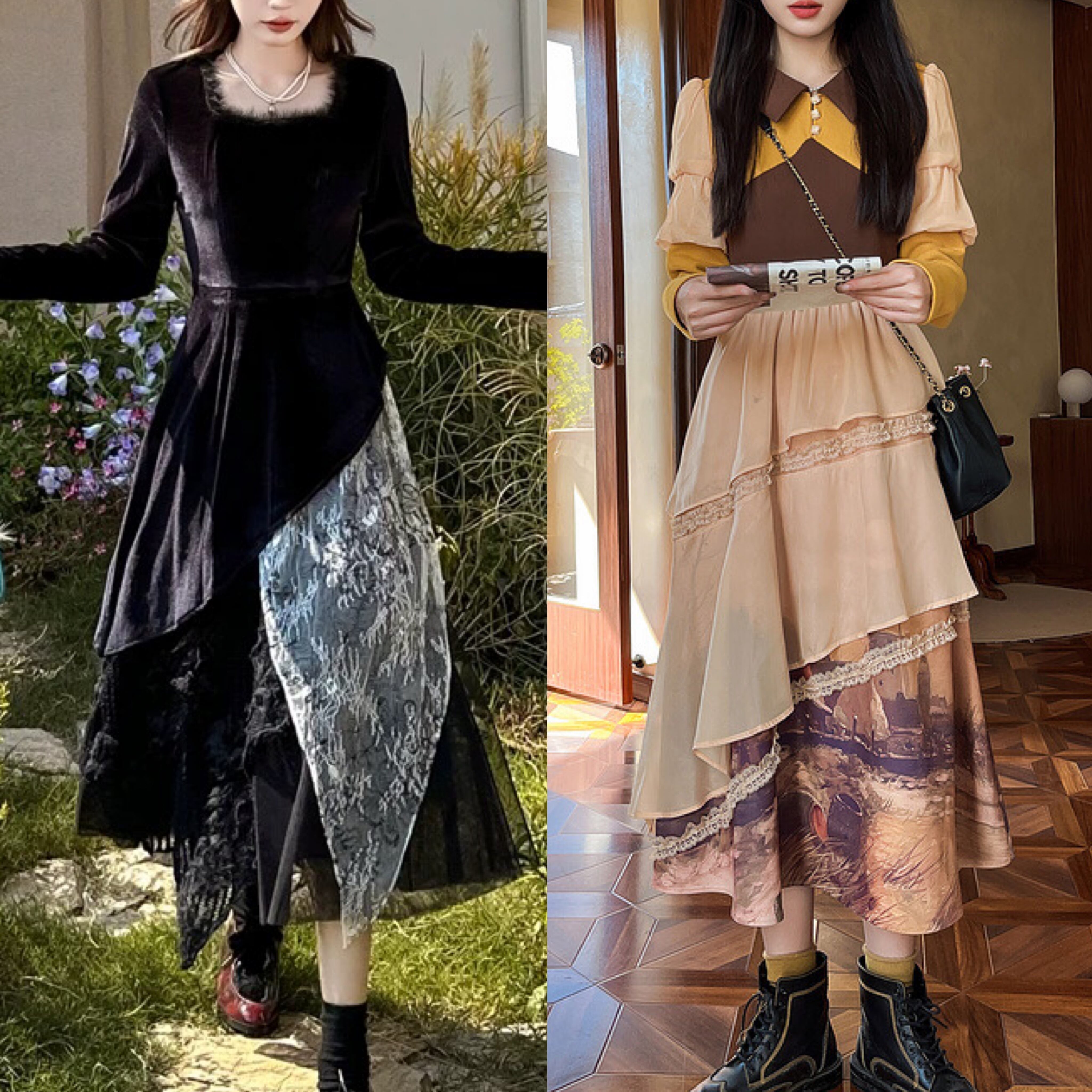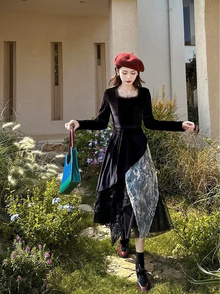 黒 ワンピース 黄色 ガーリー ブラウス ベルベット