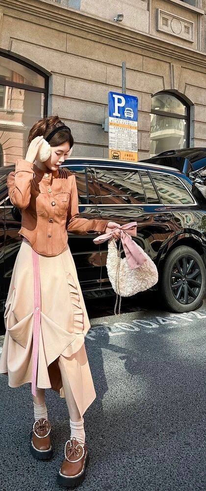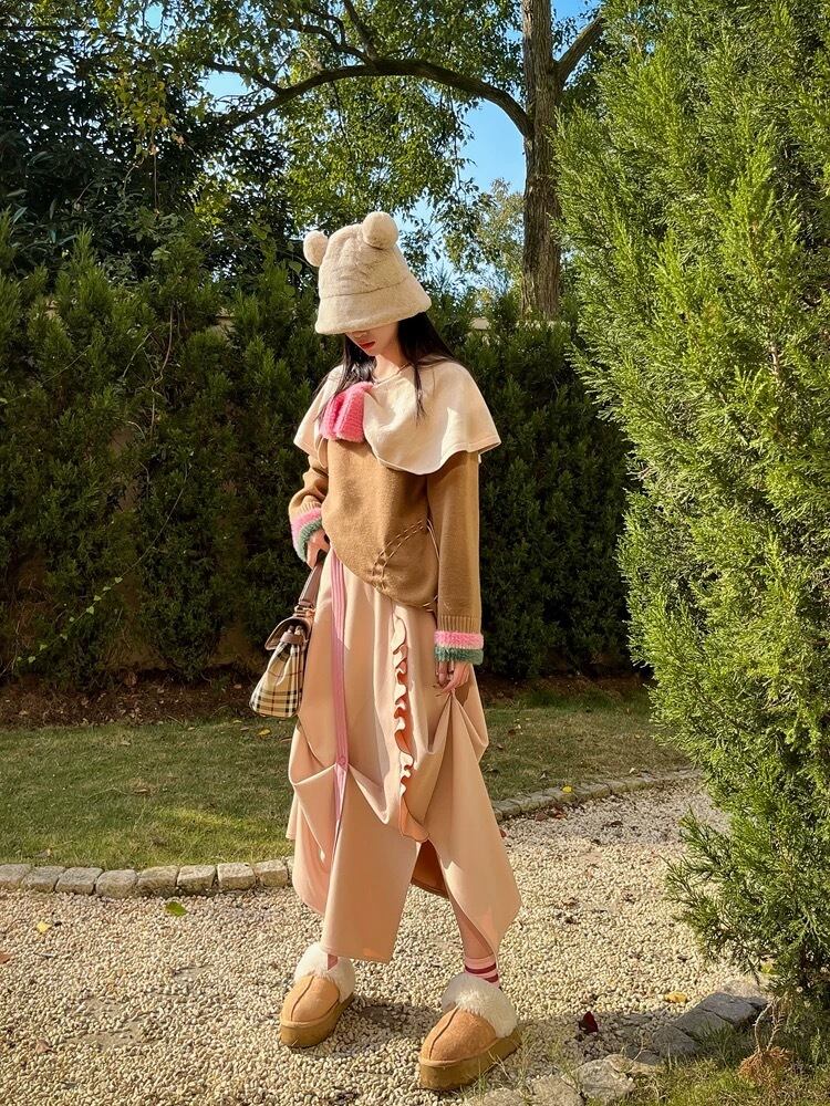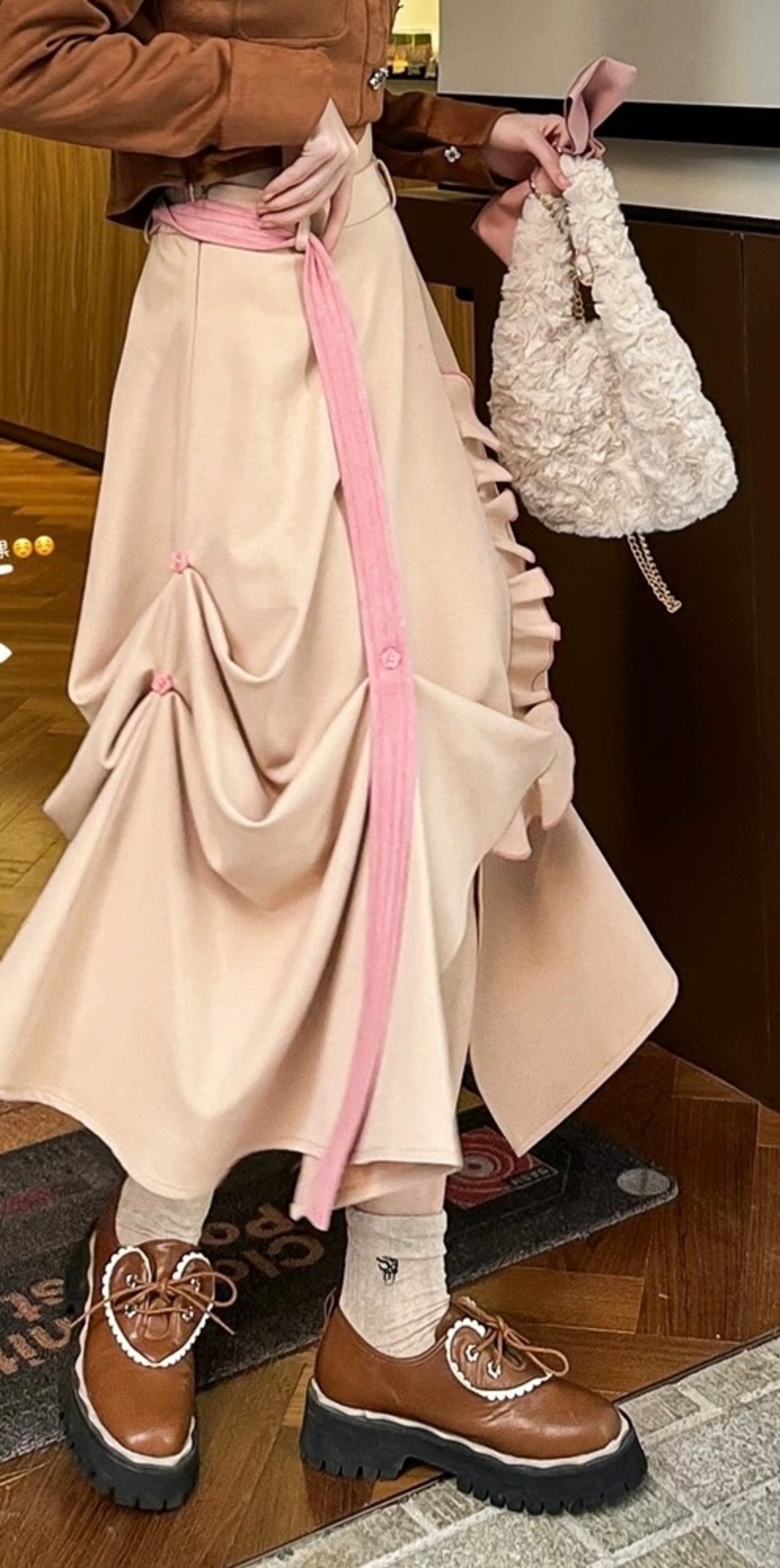 ワンピース ベージュ ピンク ガーリー ボトムス ゆったり XL