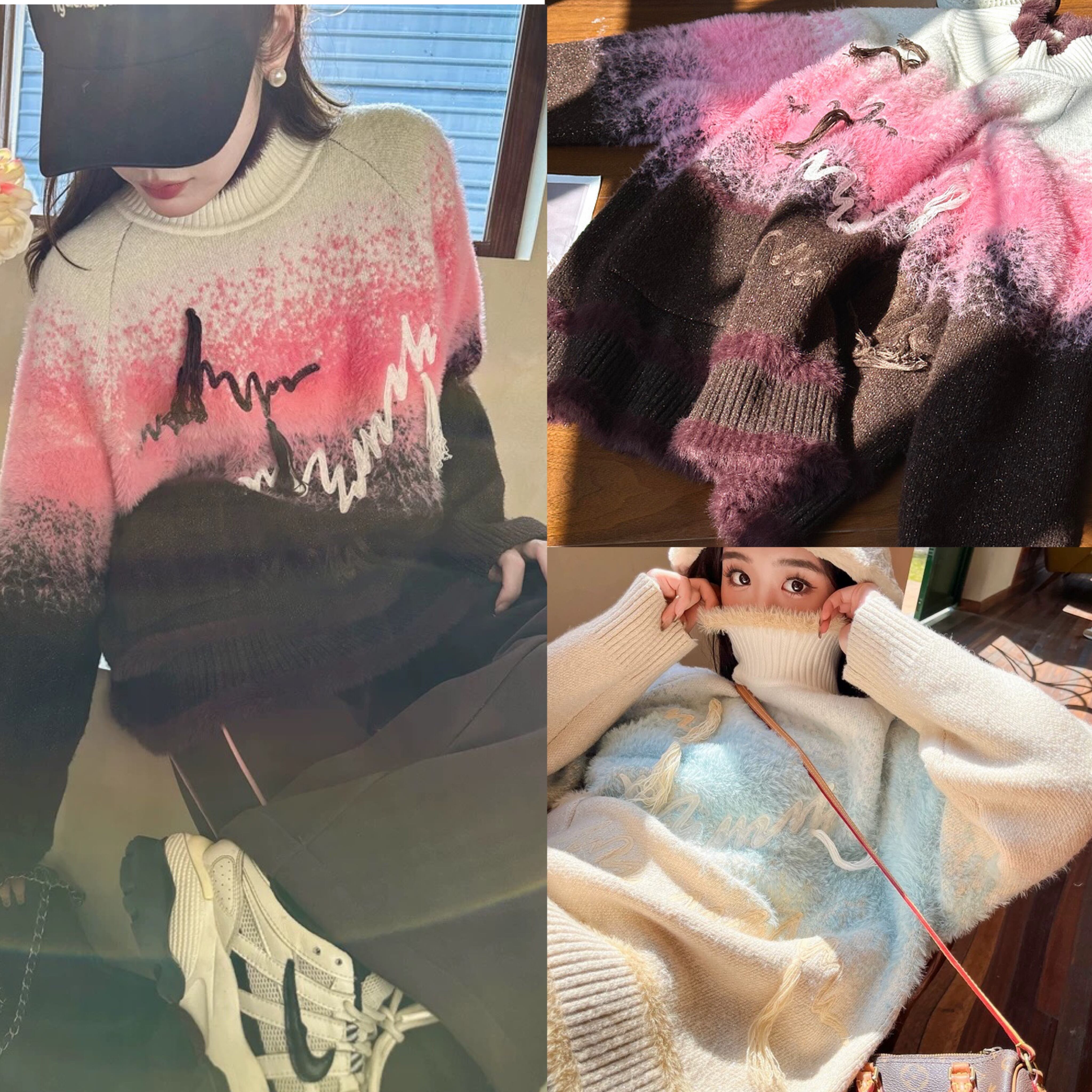 ハイネック 白 水色 黒 ピンク セーター カーディガン XL