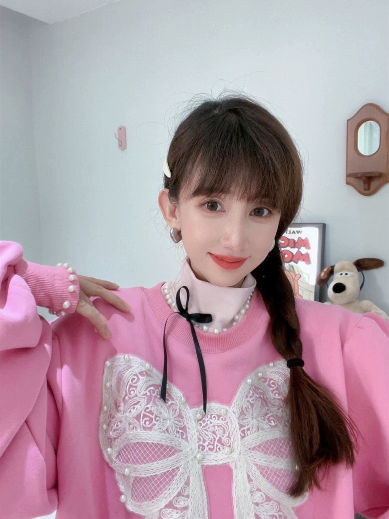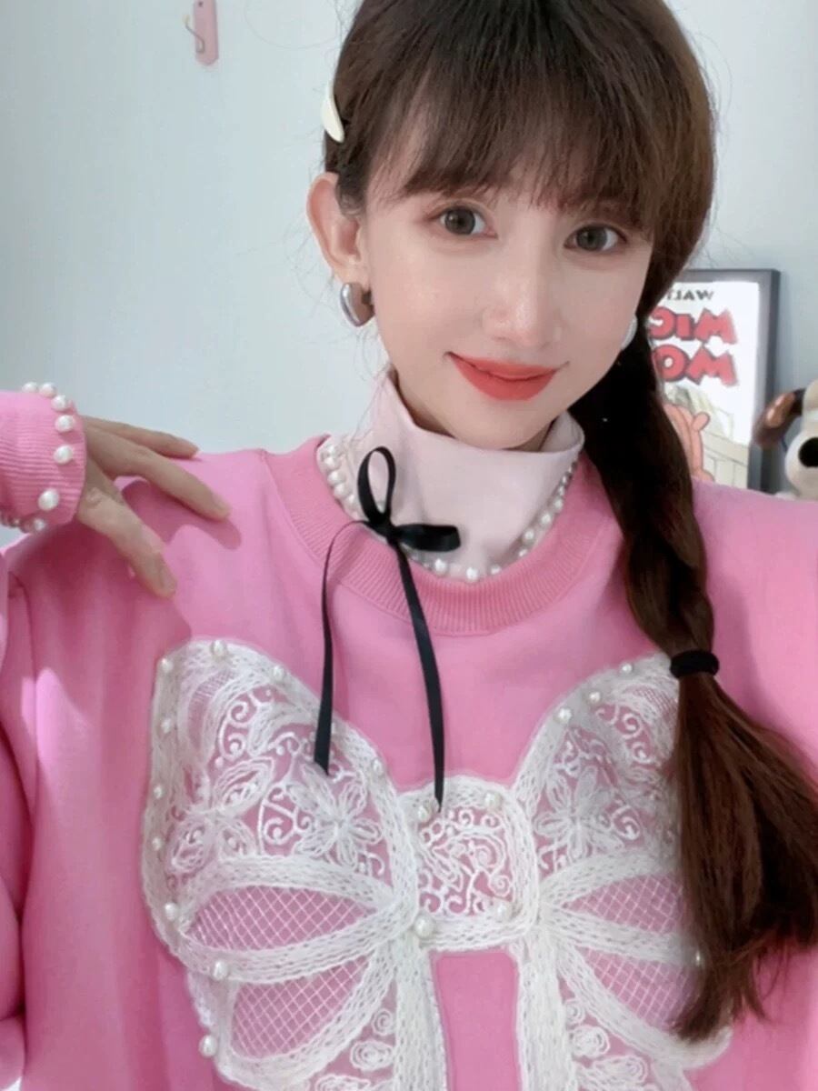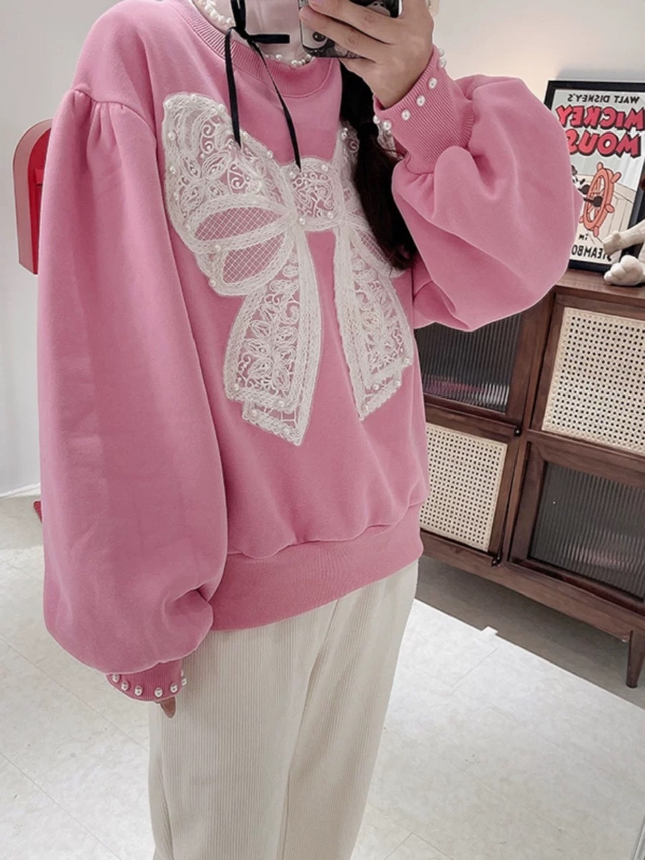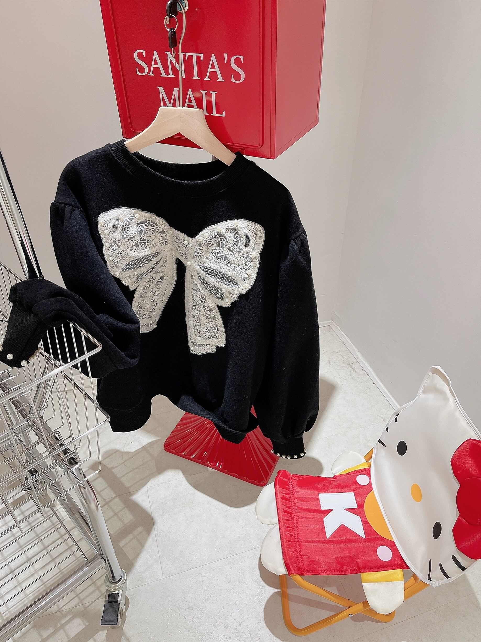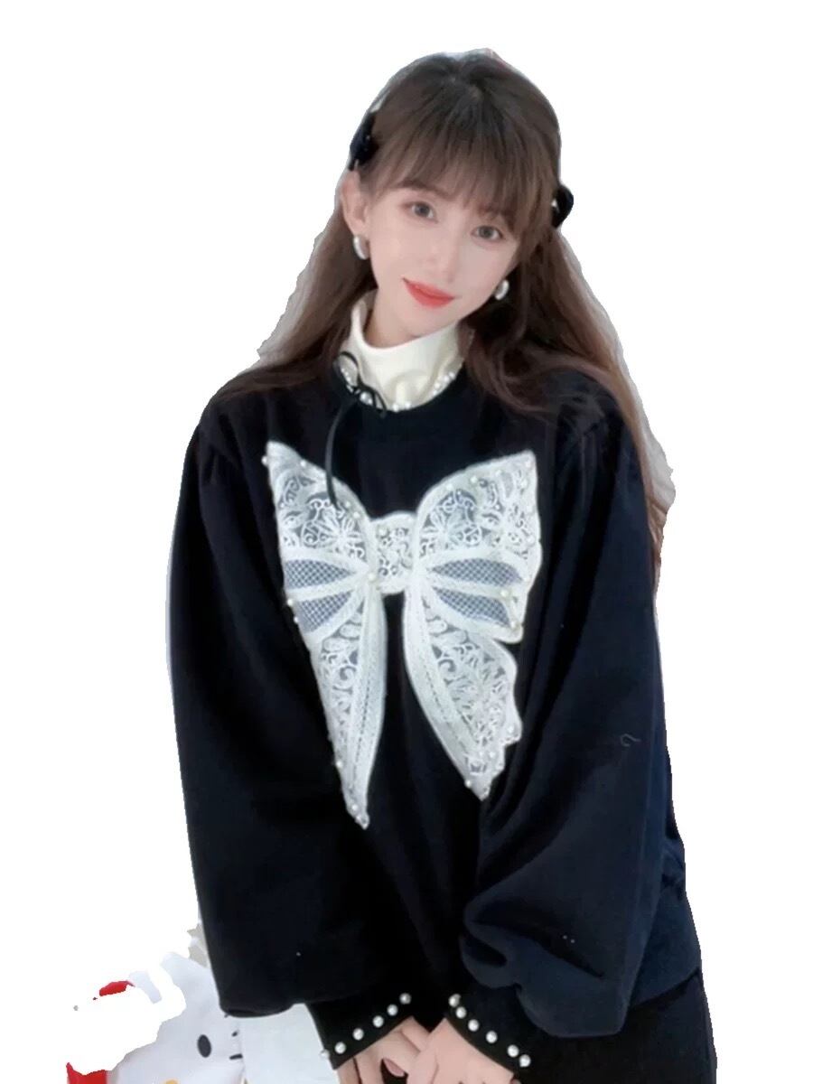 トレーナー スウェット 黒 ピンク リボン ガーリー