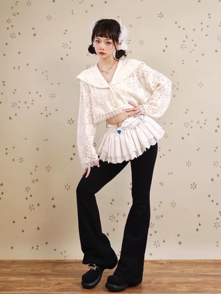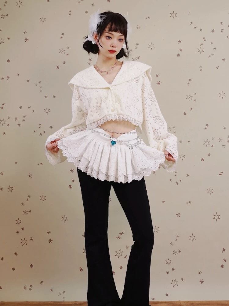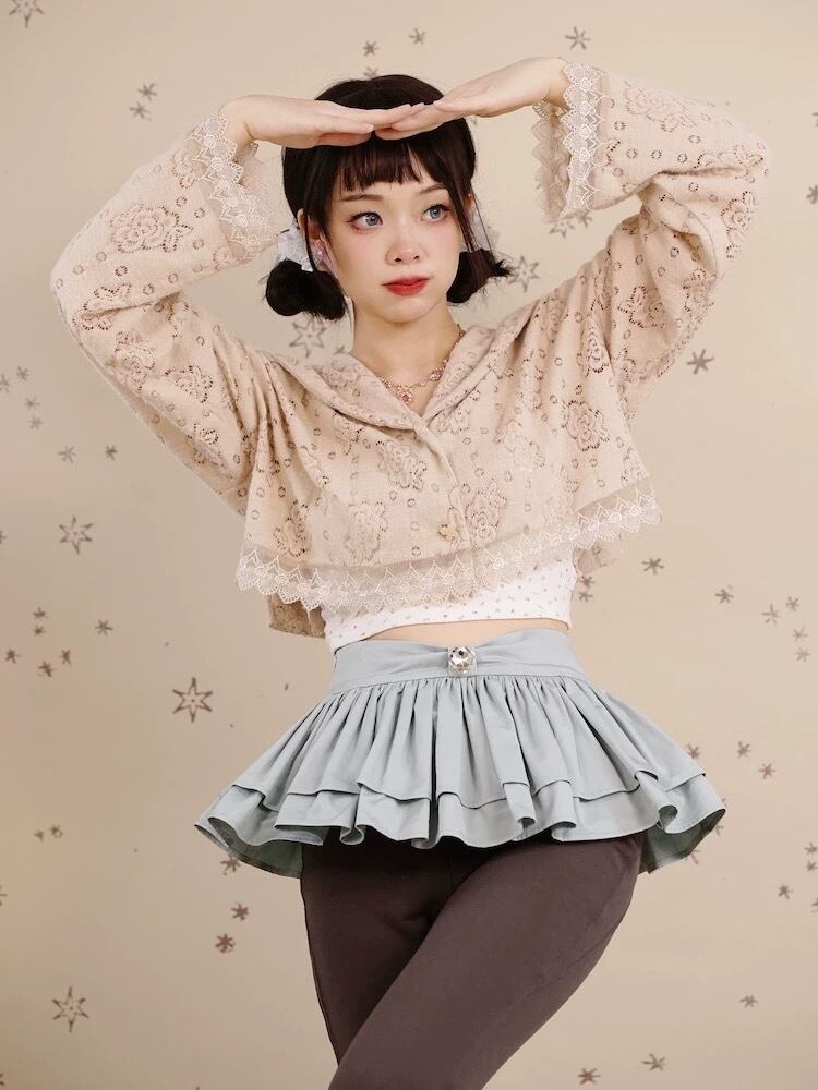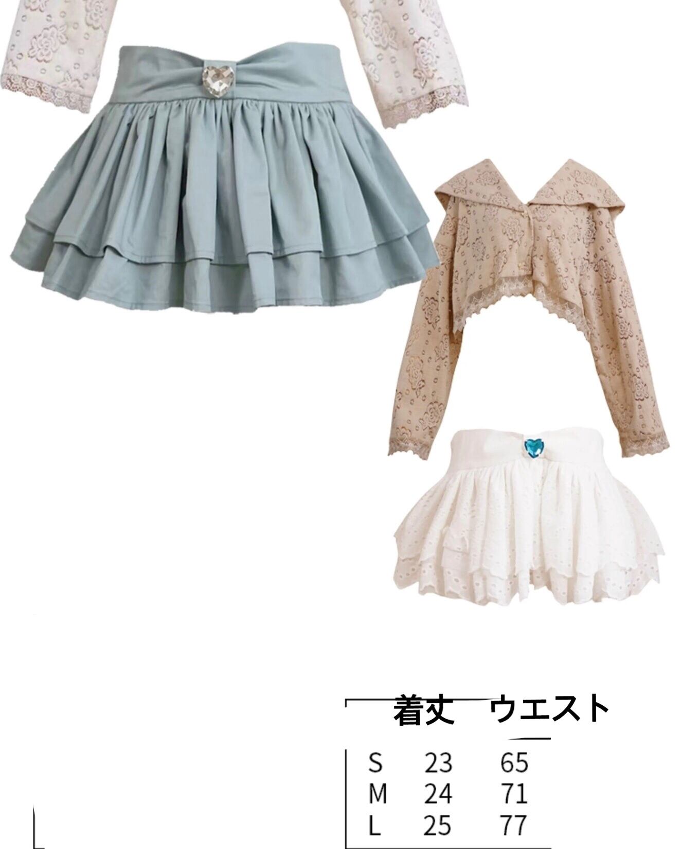 【重ね着スカート】水色 白 ガーリー ボトムス