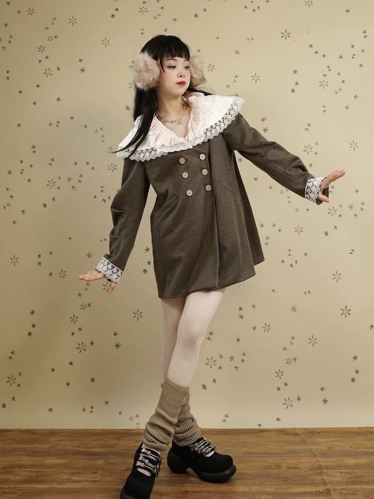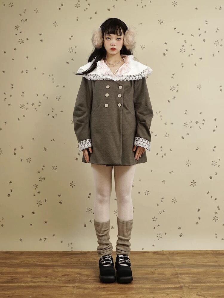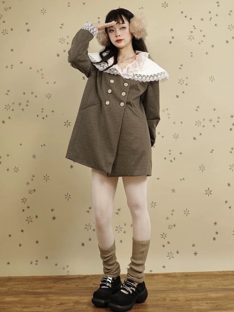 襟 ジャケット 丸襟 ピンク 茶色 コート ワンピース アウター