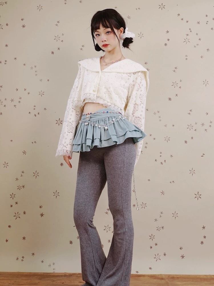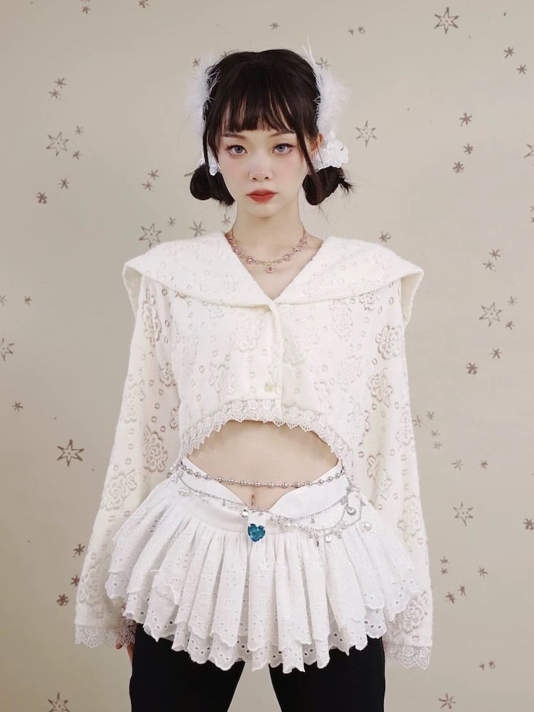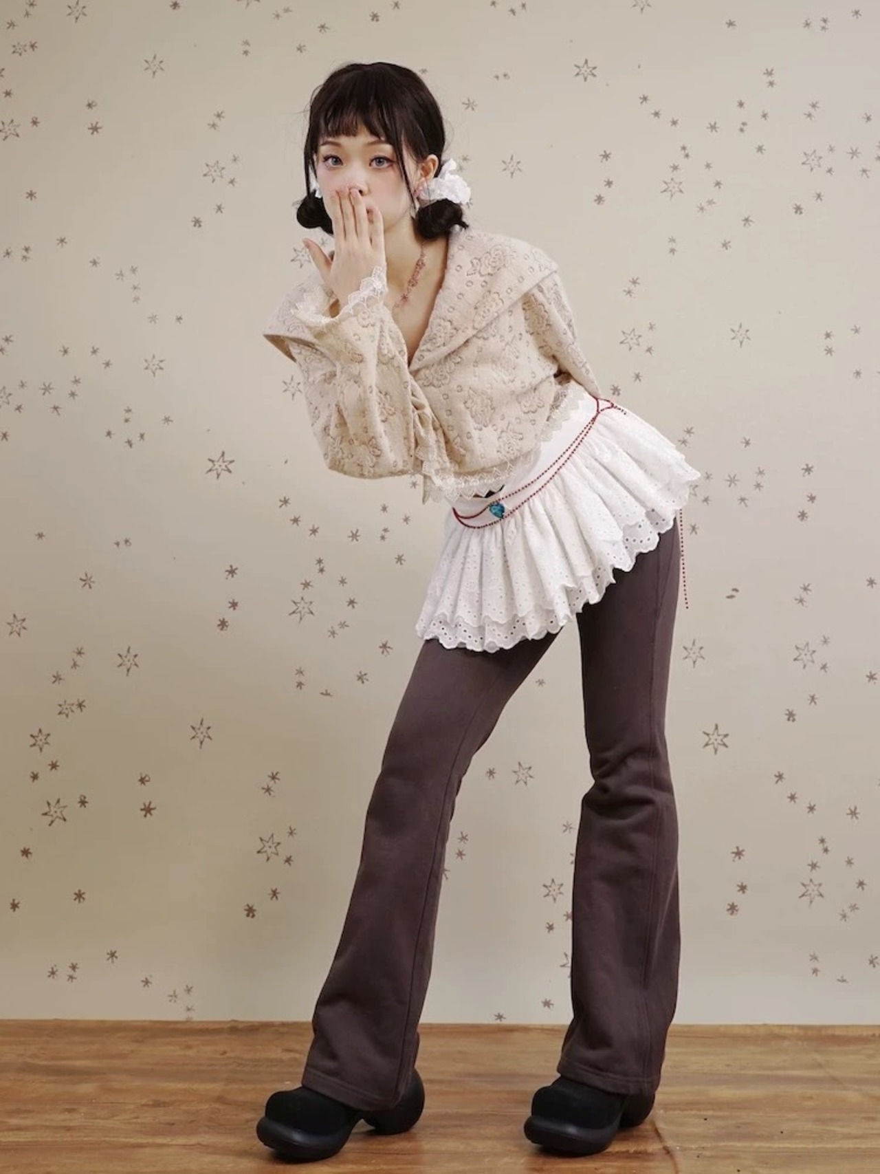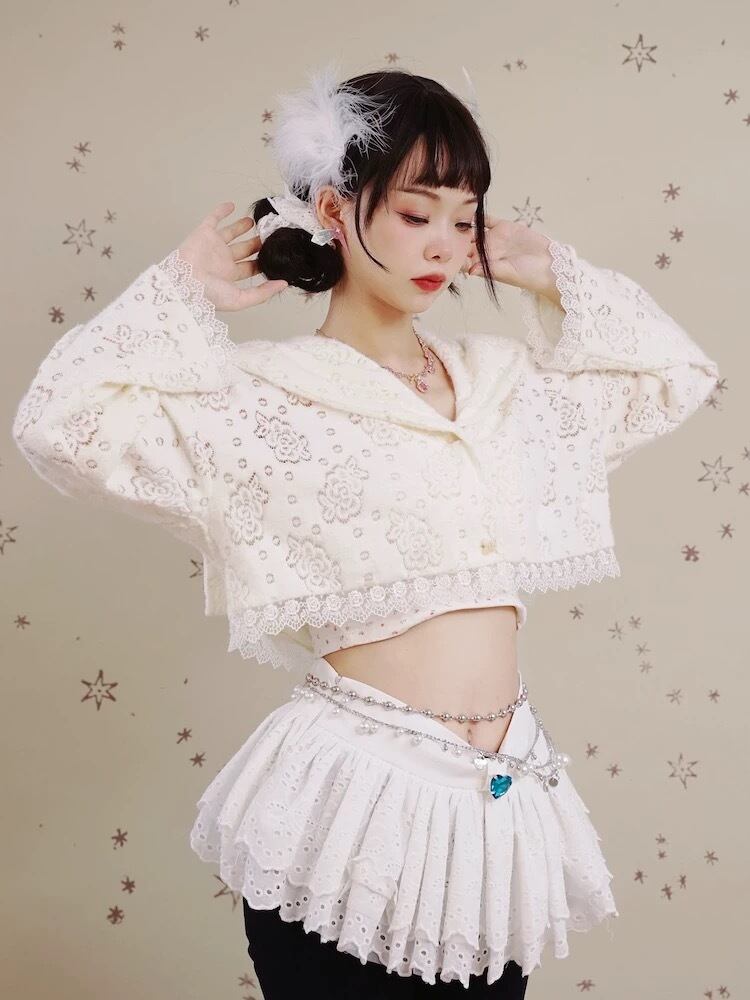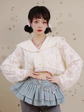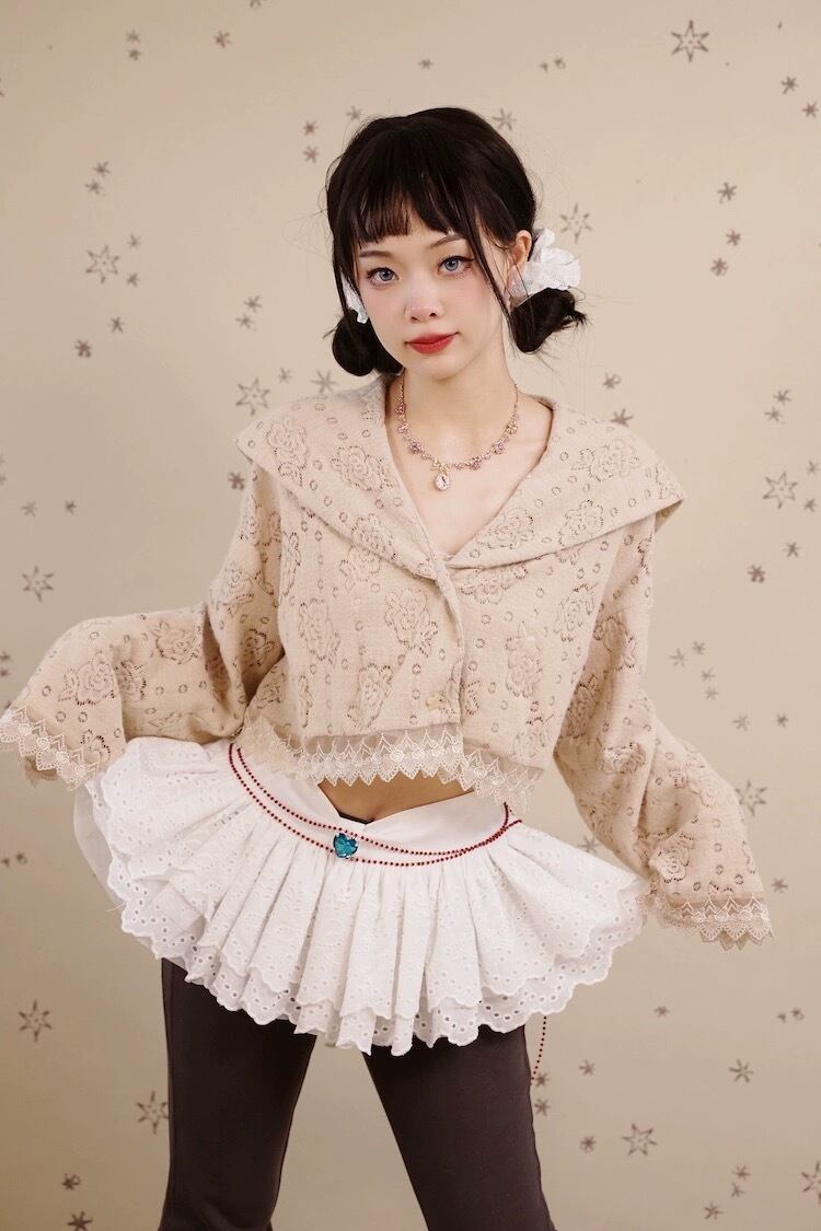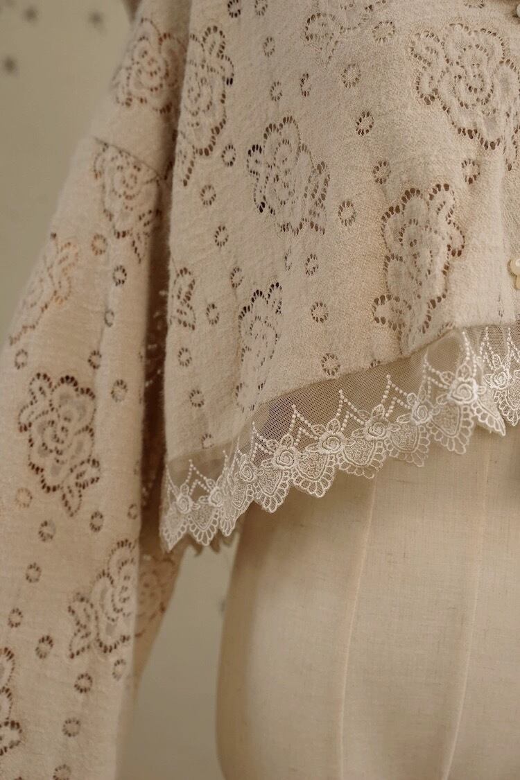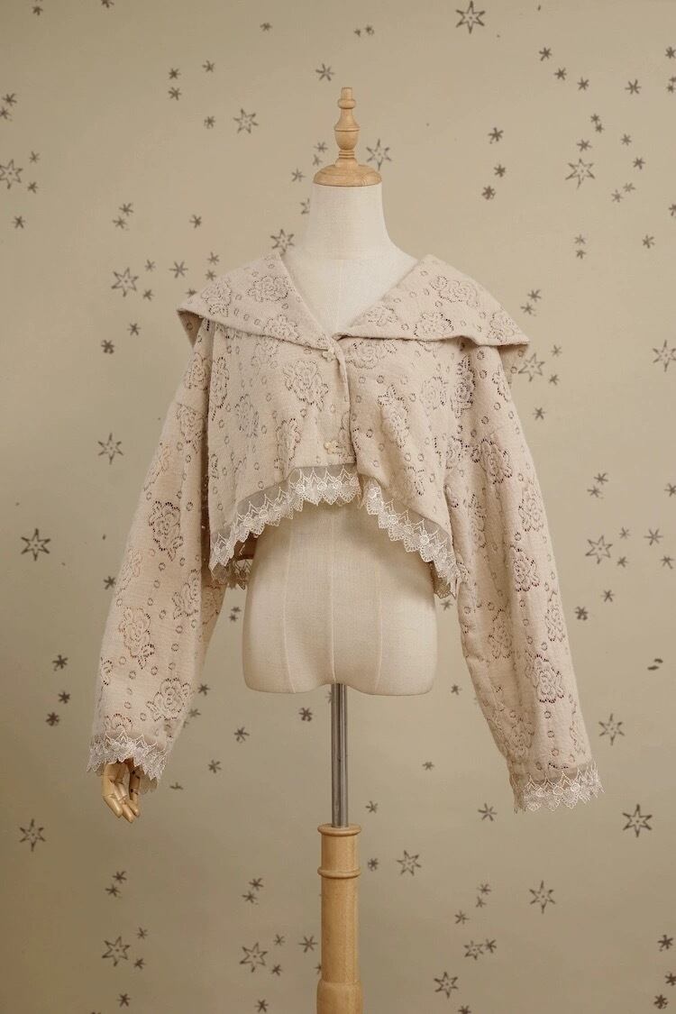 【カーディガン】ベージュ 茶色 トップス 襟 白 ガーリー