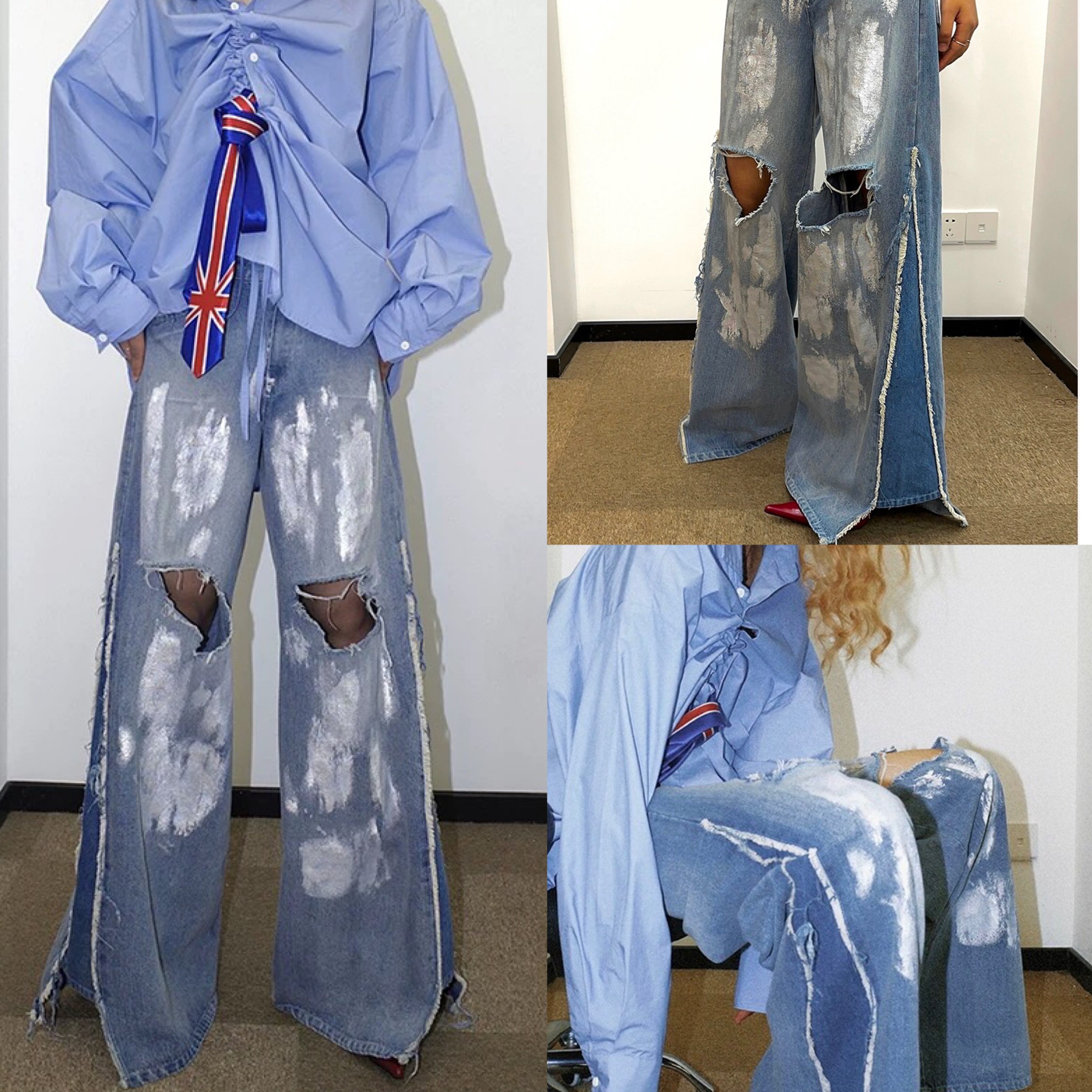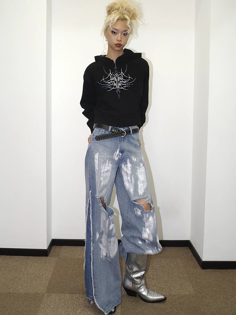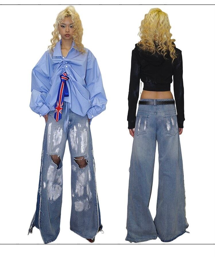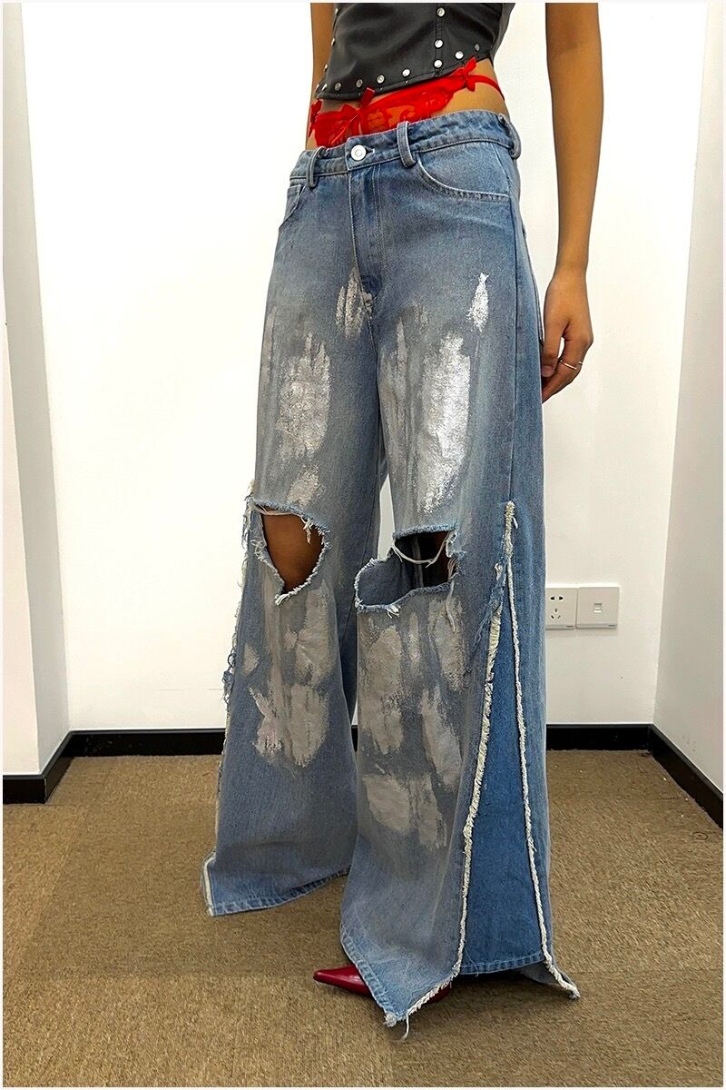 デニム パンツ ジーンズ ボトムス メッシュ ダメージ クラッシュ
