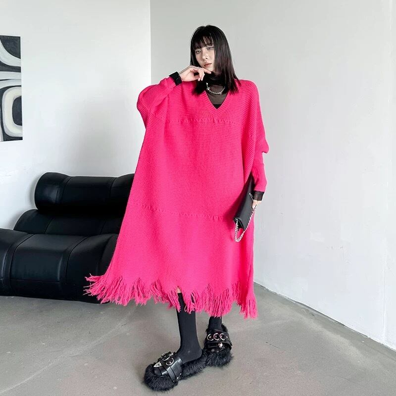ワンピース ニット ゆったり ピンク 黒 オーバーサイズ
