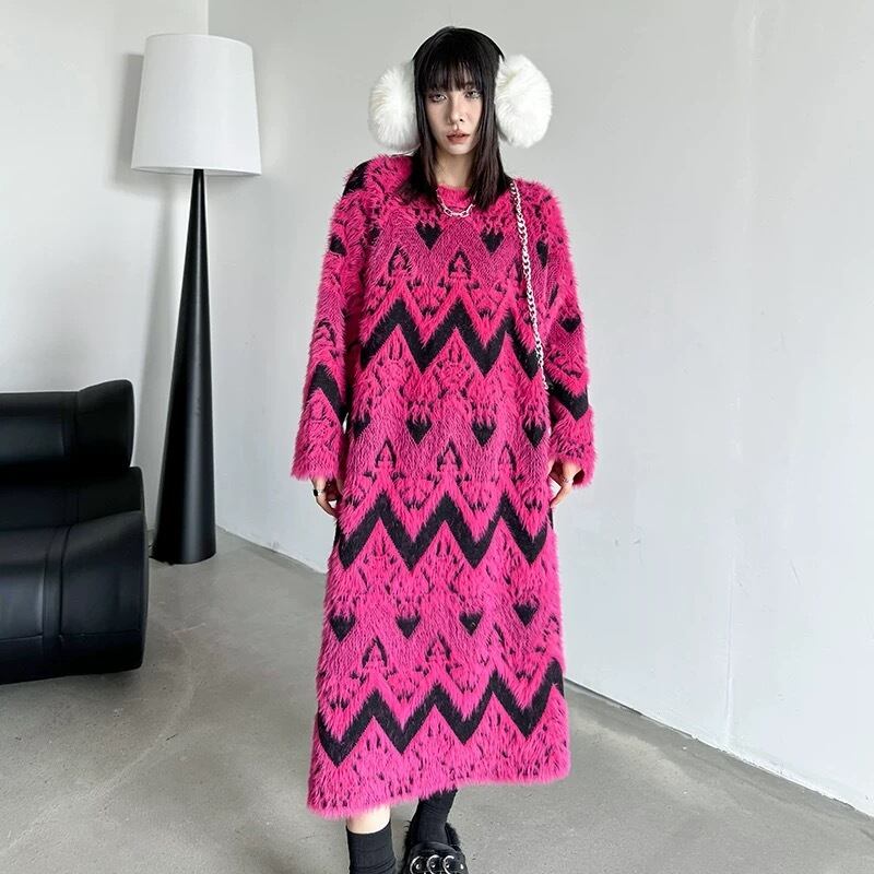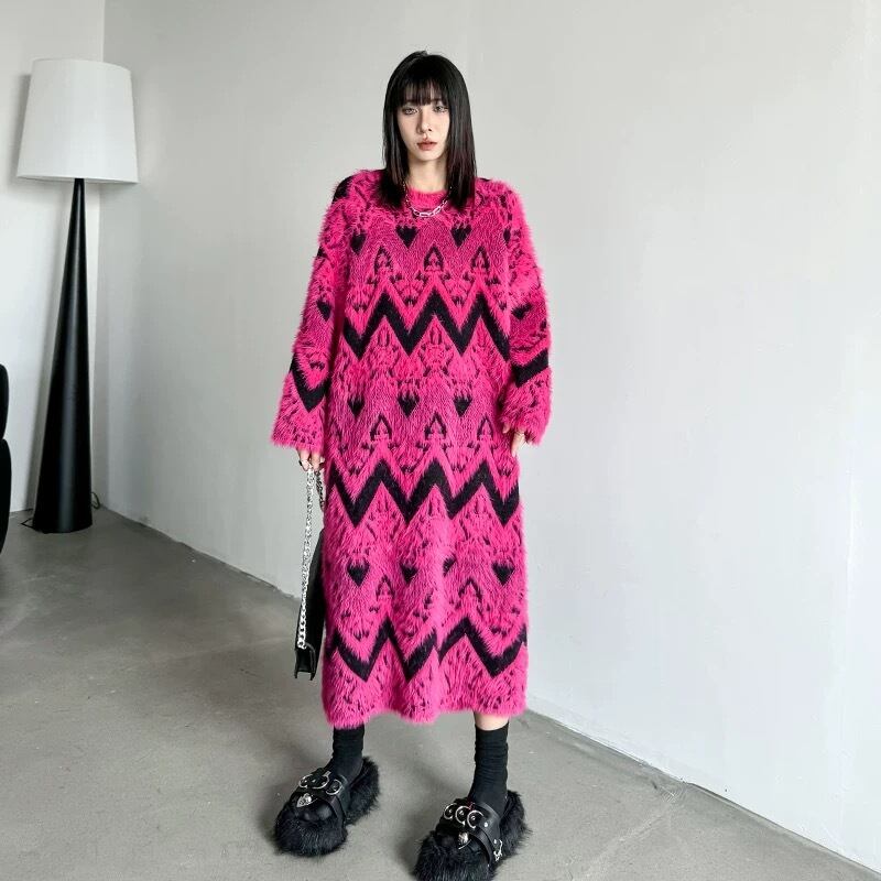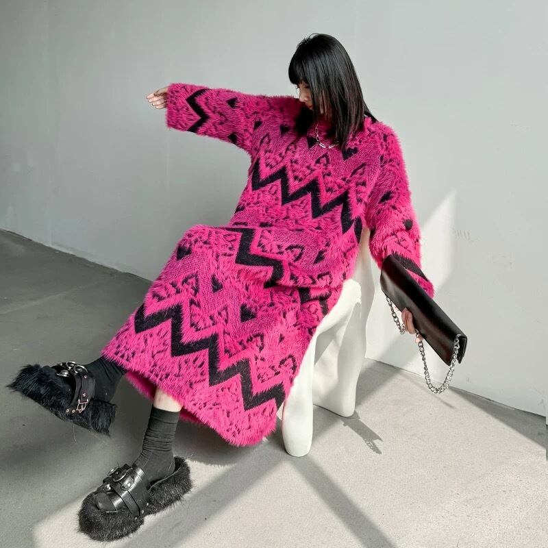 ワンピース ボーダー 黒 ピンク ガーリー セーター ニット