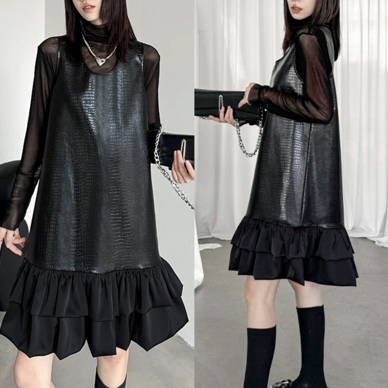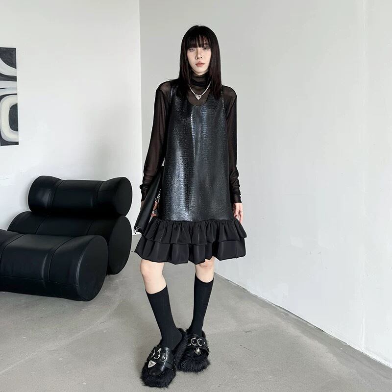 ワンピース レザー 黒 ブラック かっこいい