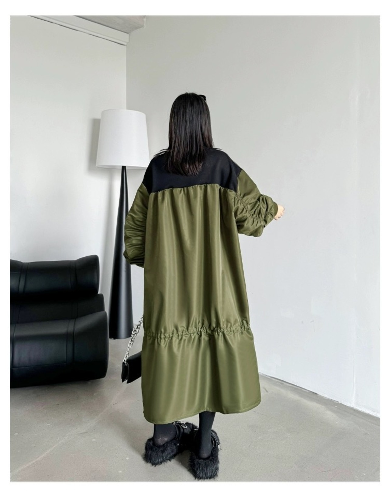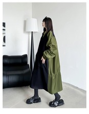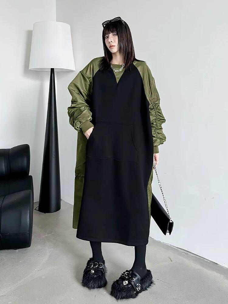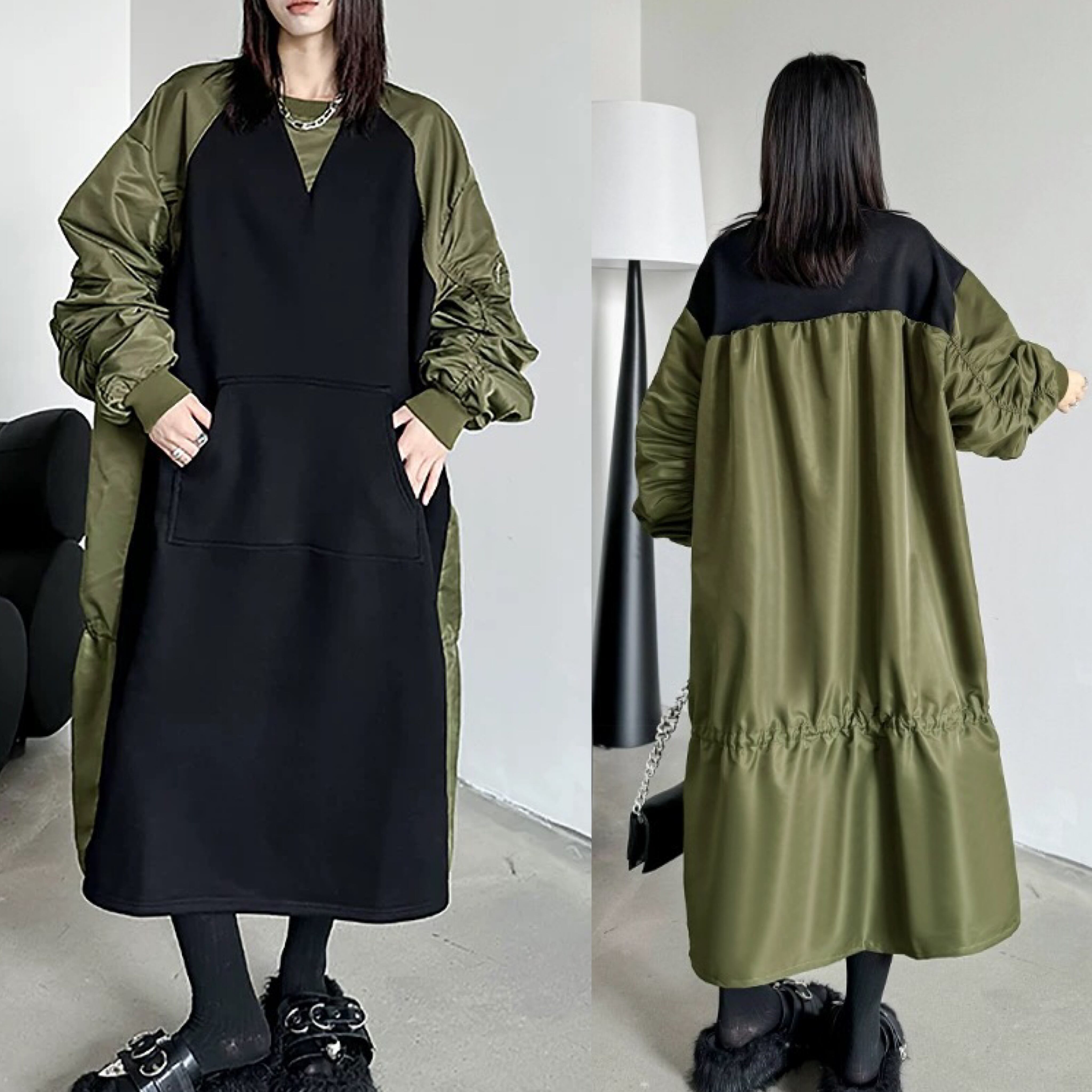 ワンピース バイカラー 緑 カジュアル 黒 ブラック