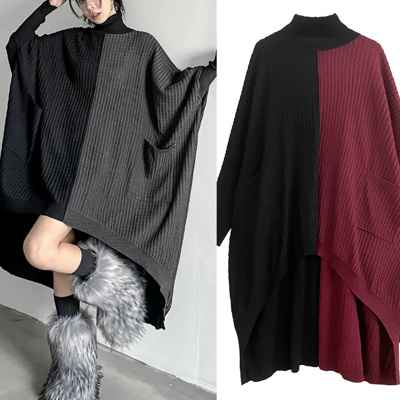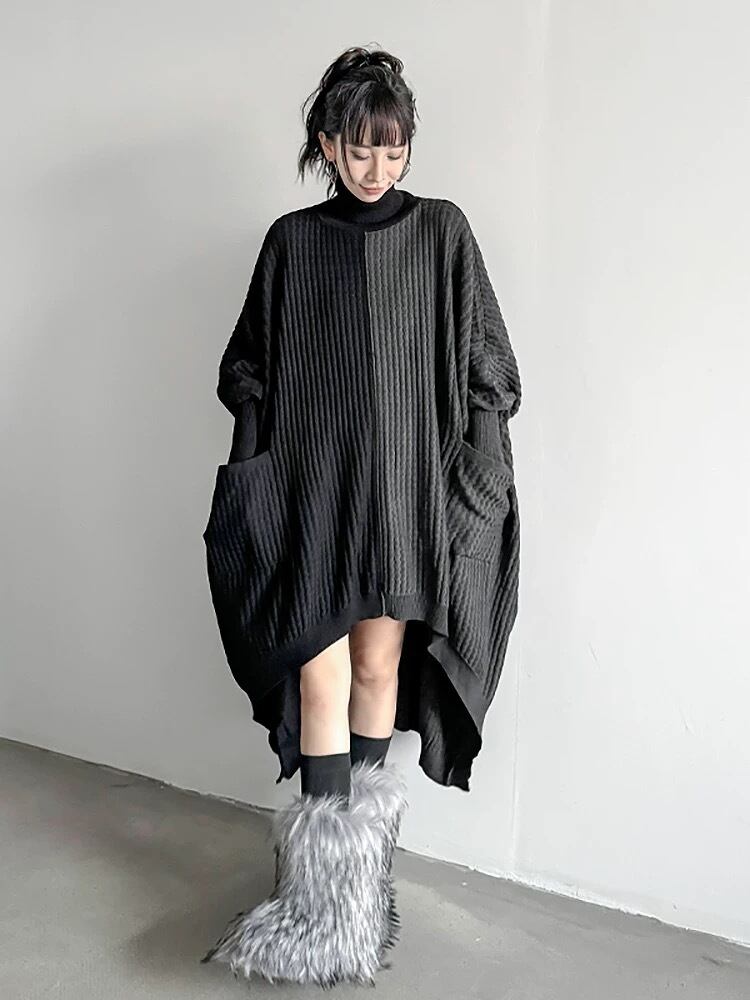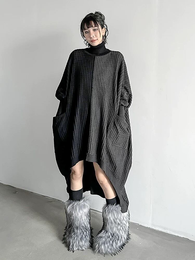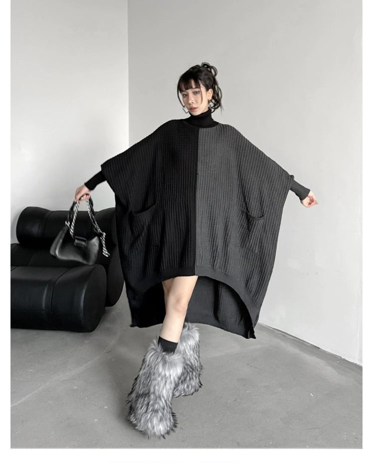 ニット ワンピース オーバーサイズ 赤 グレー 黒